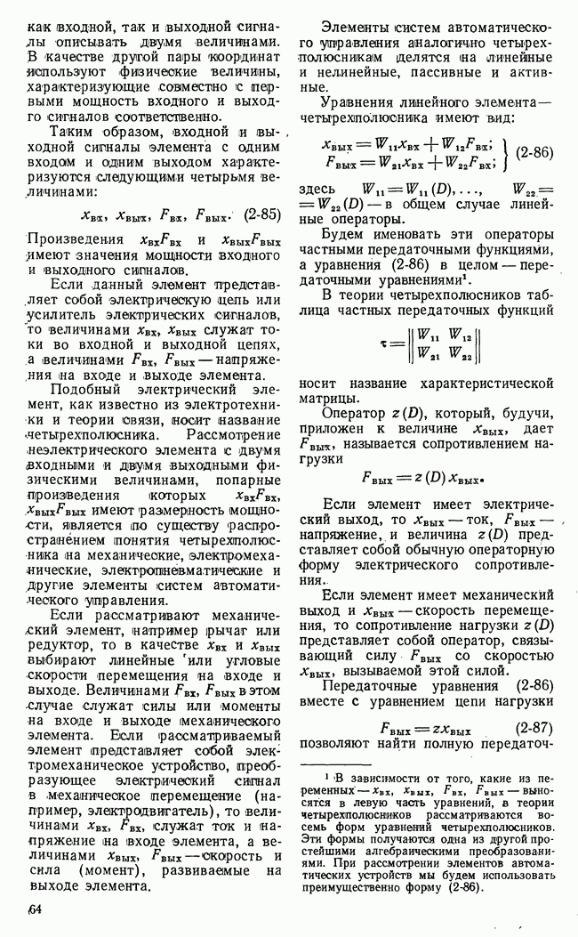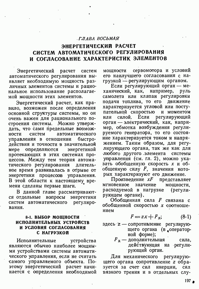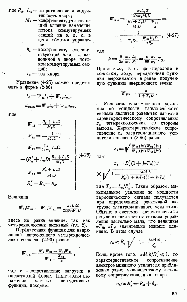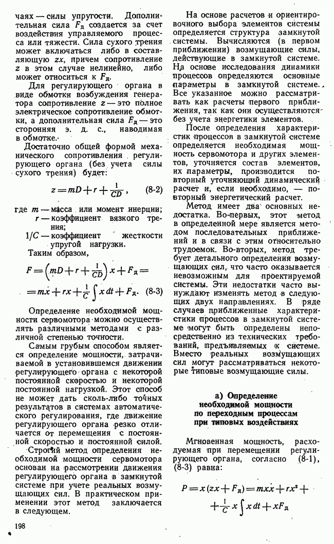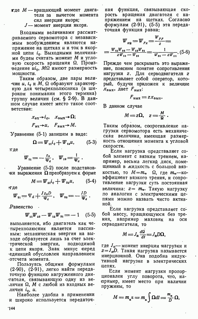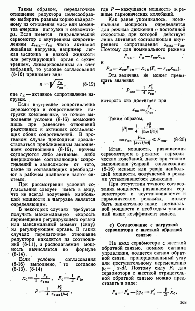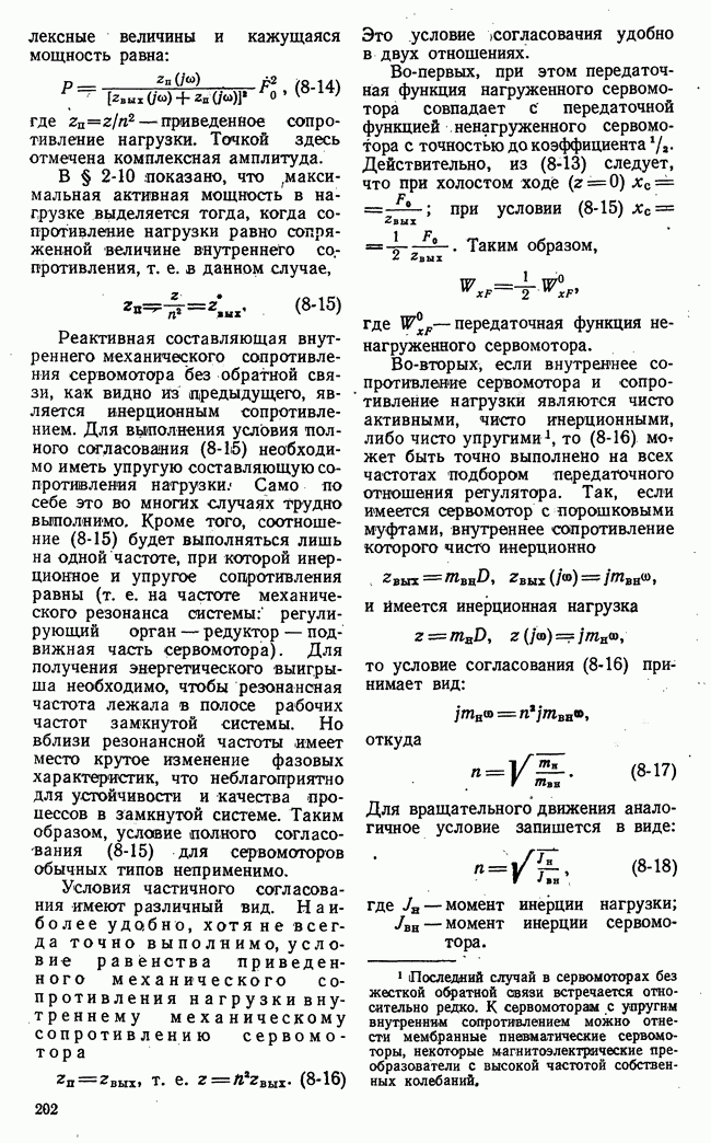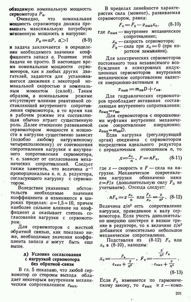 и задача заключается в определении необходимого значения коэффициента запаса а. Решение этой Задачи не просто. В настоящее время номинальные мощности сервомоторов, как и любых других двигателей, задаются для установившегося движения с некоторой номинальной скоростью и номинальным моментом (силой). Таким образом в номинальном режиме отсутствует влияние реактивной составляющей внутреннего сопротивления сервомотора, в то время как в рабочем режиме эта составляющая обычно играет существенную роль. Далее отношение развиваемой сервомотором мощности к мощности в нагрузке существенно зависит (подобно любому нагруженному четырехполюснику) от соотношения сопротивления нагрузки и внутреннего сопротивления сервомотора, т. е. зависит от согласования механических сопротивлений. Следует также заметить, что величина