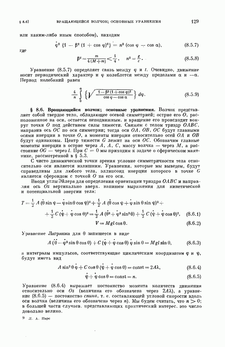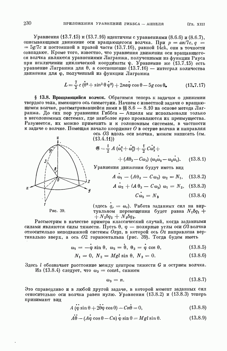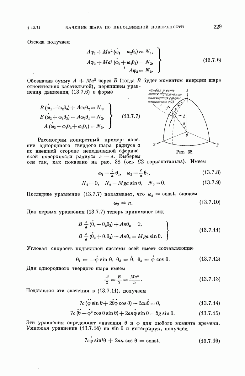 Другим примером, для которого справедливо равенство (3.2.13), может служить частица, скользящая под действием силы тяжести по гладкой поверхности вращения, имеющей вертикальную ось