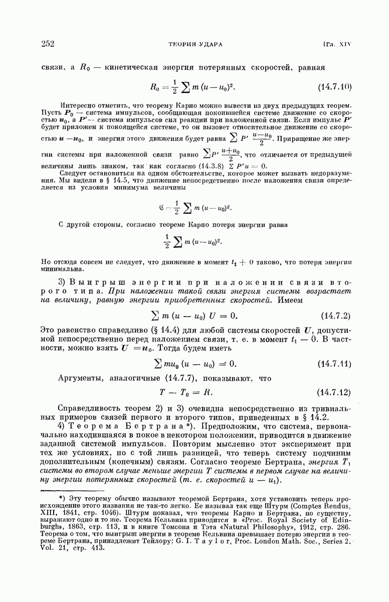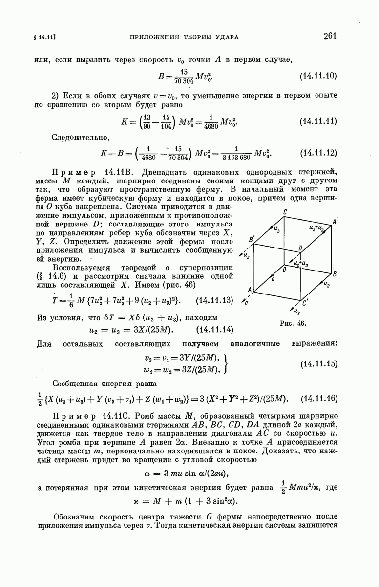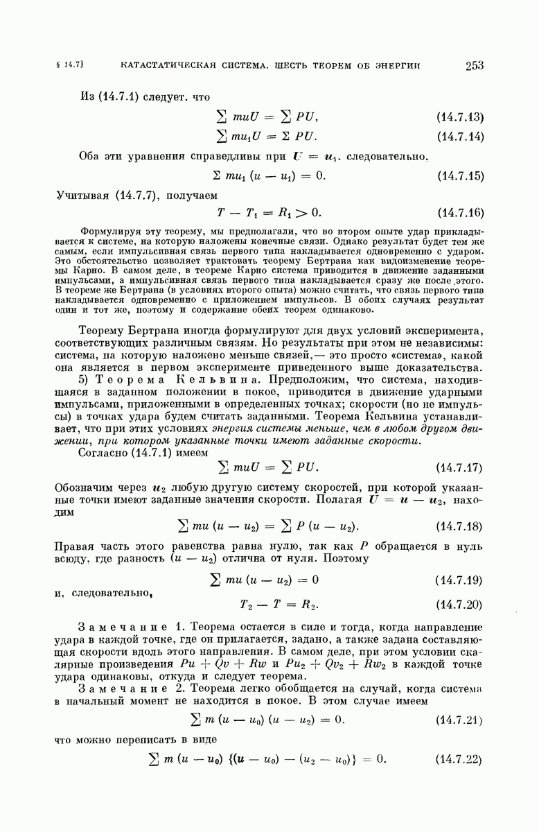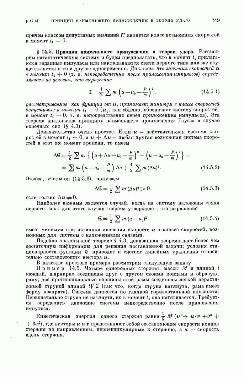тел, где все заданные силы являются внутренними силами, центр тяжести движется равномерно и прямолинейно. Можно пользоваться ньютоновой системой отсчета, в которой центр тяжести находится в покое.