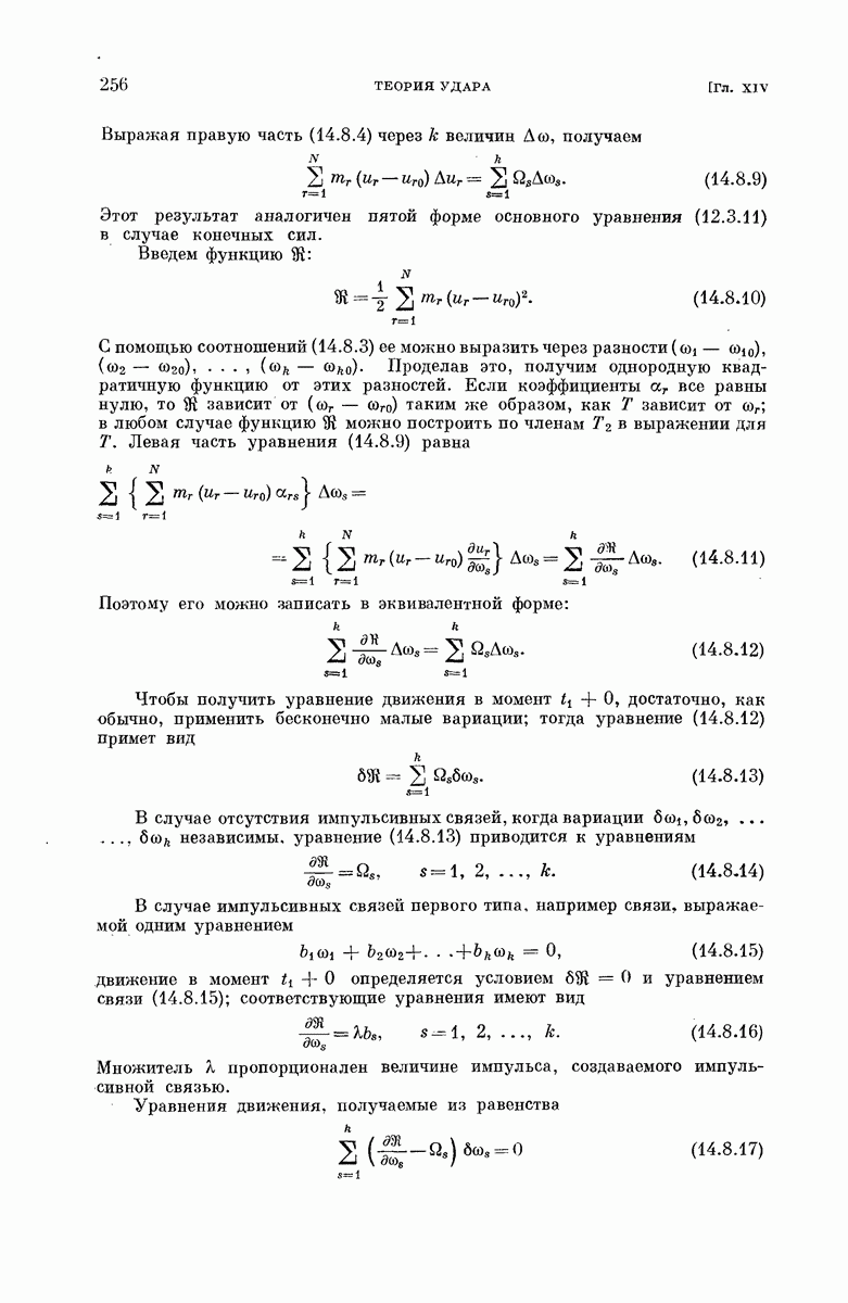 Опуская, как и ранее, все внутренние силы в правой части, получаем