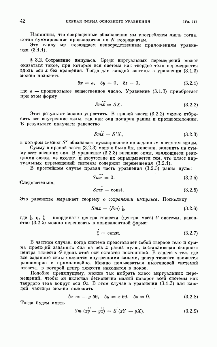 Среди виртуальных перемещений может оказаться такое, при котором вся система как твердое тело перемещается вдоль оси х без вращения. Тогда для каждой частицы в уравнении (3.1.3) можно положить