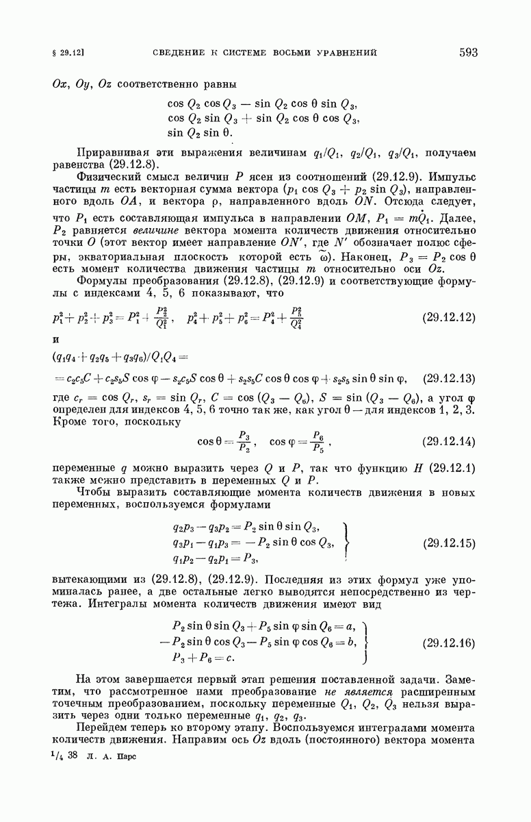 Равенство (3.2.12) выражает теорему о сохранении момента количеств движения.