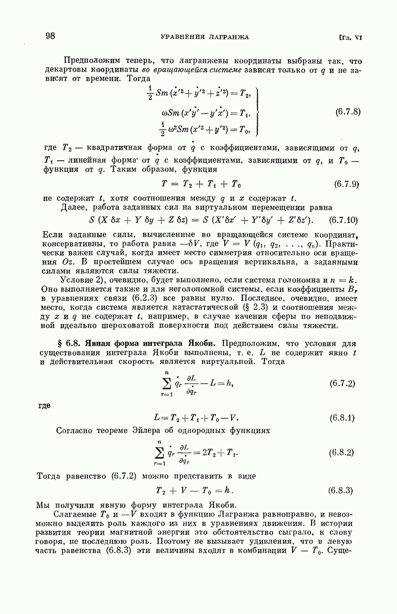 Подобно предыдущему, можно так выбрать класс виртуальных перемещений, чтобы он включал бесконечно малый поворот всей системы как твердого тела вокруг оси