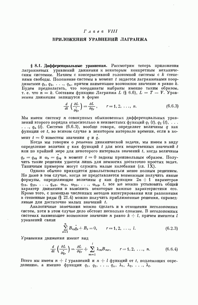 Глава VIII. ПРИЛОЖЕНИЯ УРАВНЕНИЙ ЛАГРАНЖА
