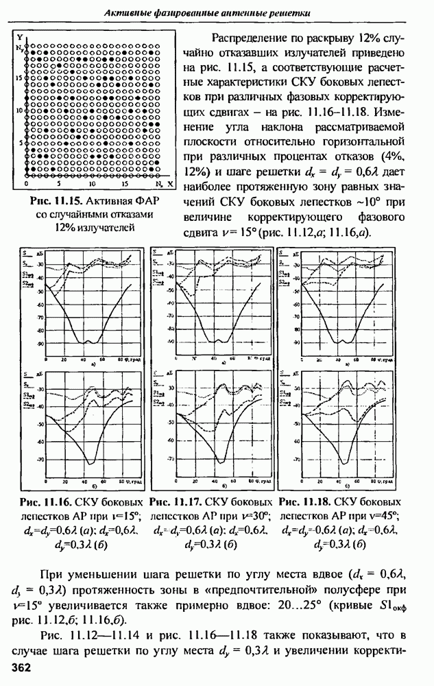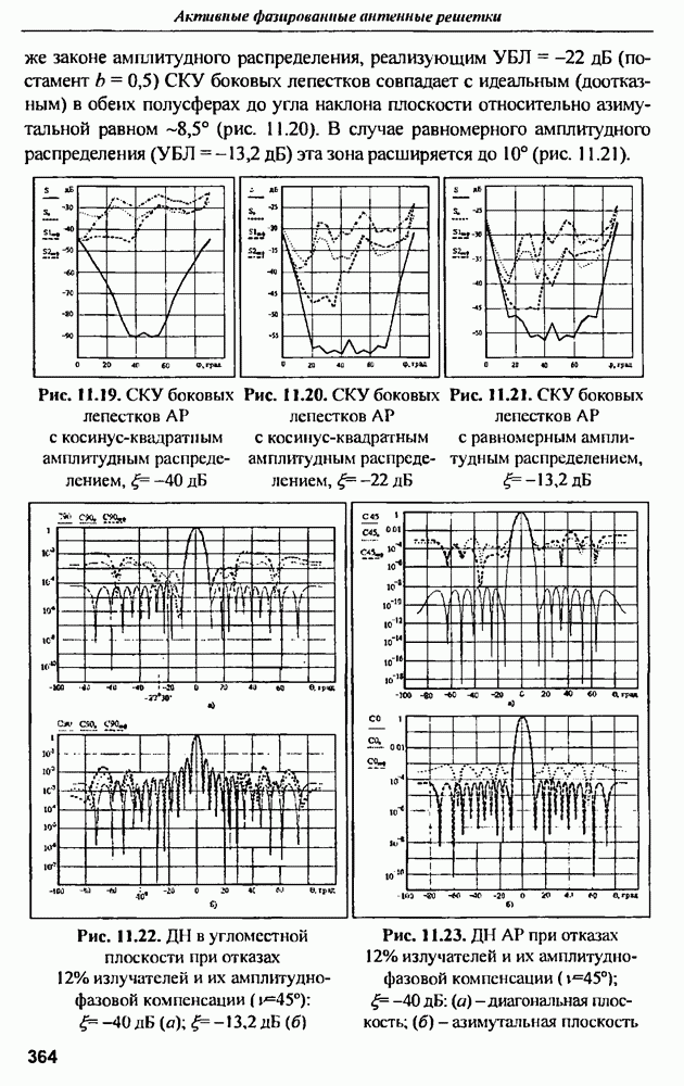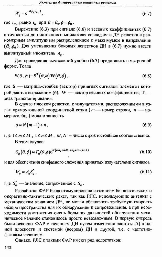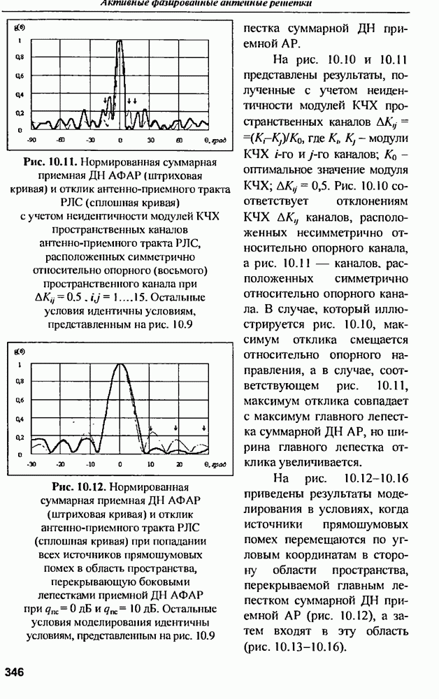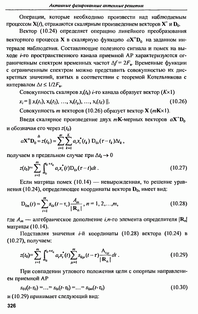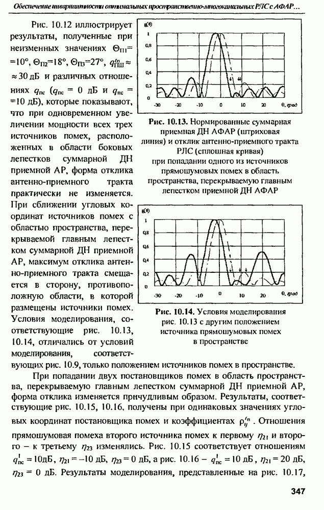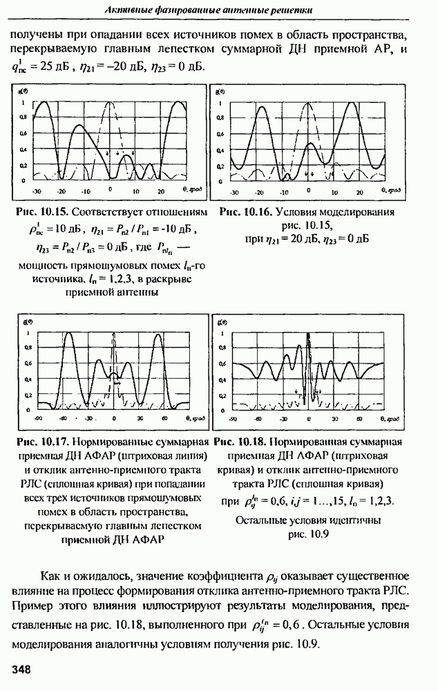 оптимального антенно-приемного тракта РЛС существенно зависит от характеристик помех. Чем меньше определитель матрицы помех (10.62), тем больше отношение полезный сигнал/помеха на выходе РЛС.