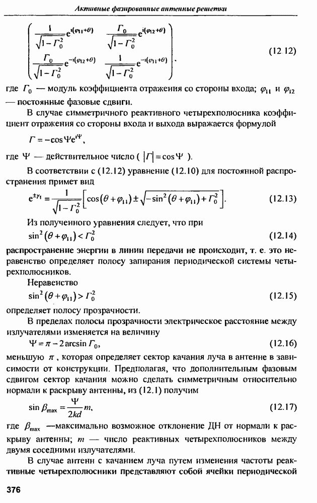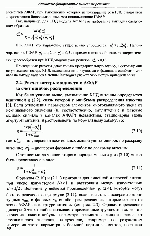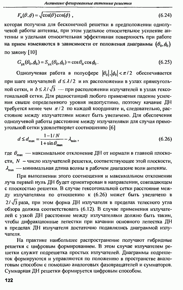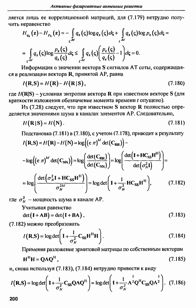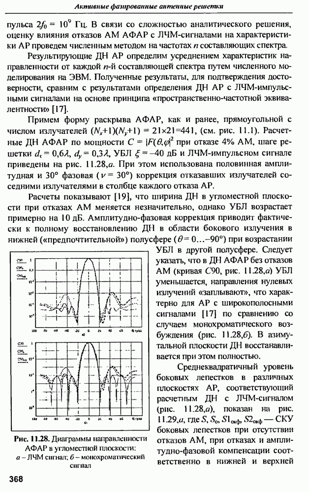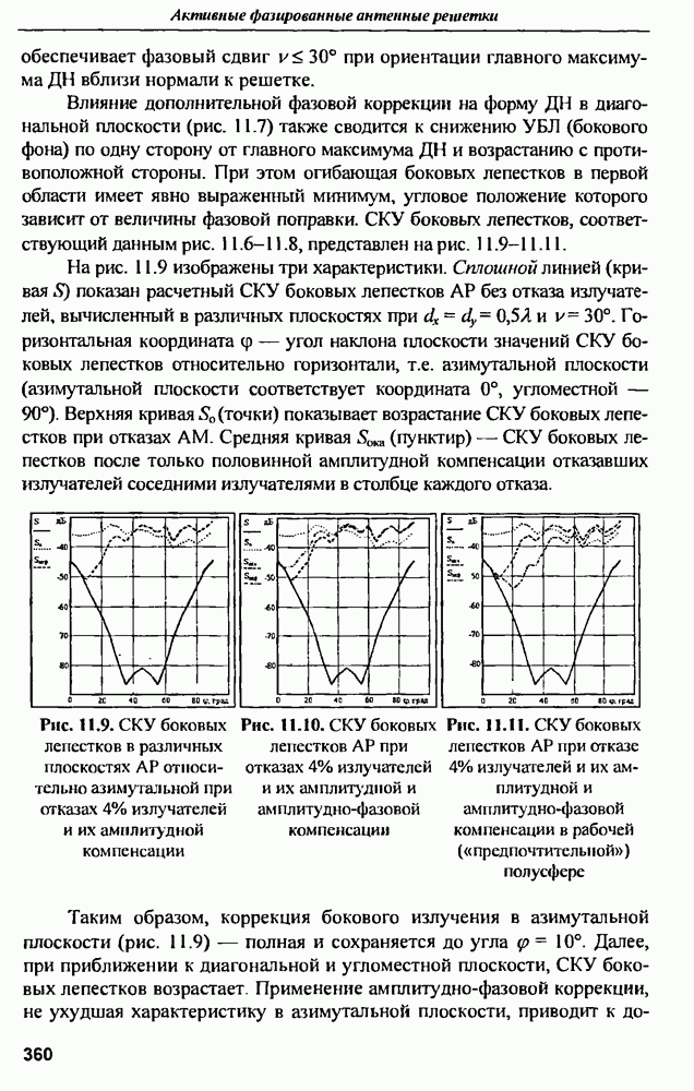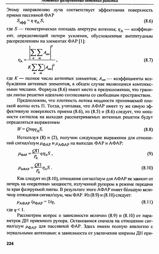 оптимального антенно-приемного тракта РЛС существенно зависит от характеристик помех. Чем меньше определитель матрицы помех (10.62), тем больше отношение полезный сигнал/помеха на выходе РЛС.