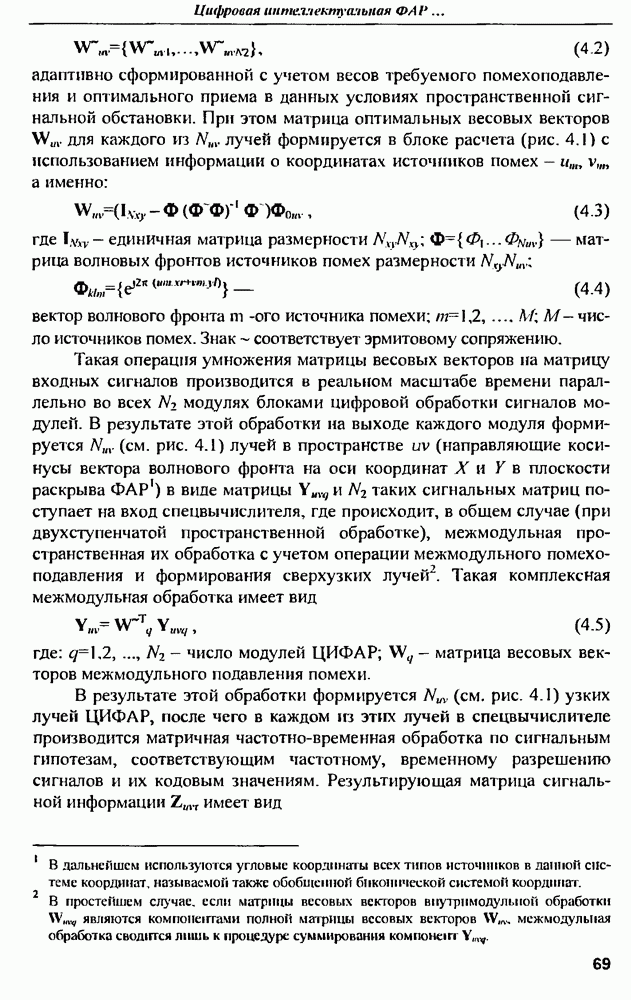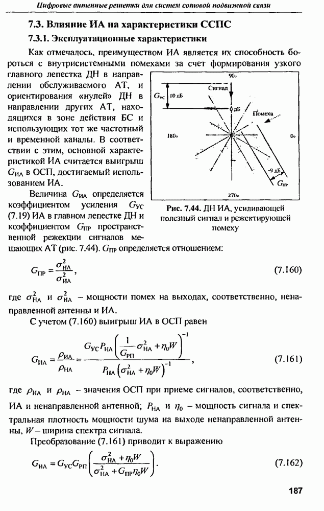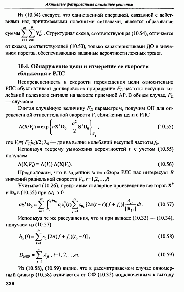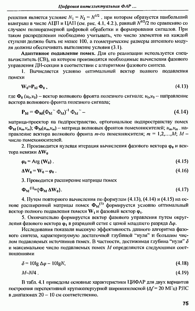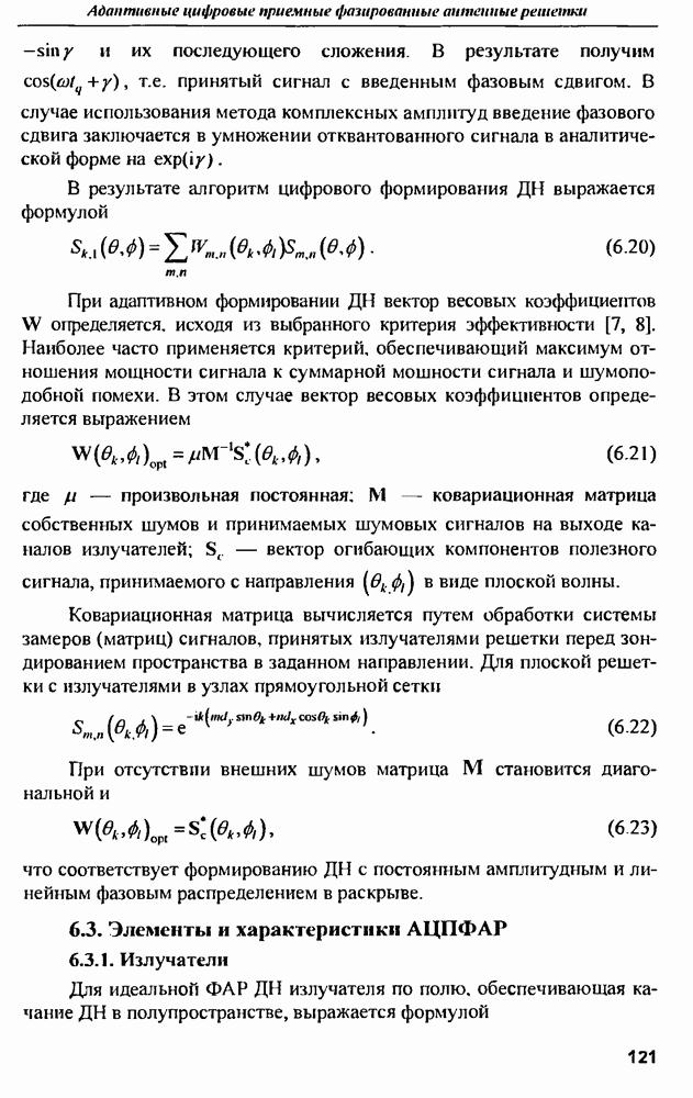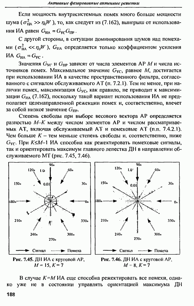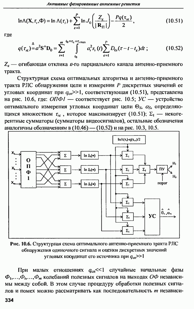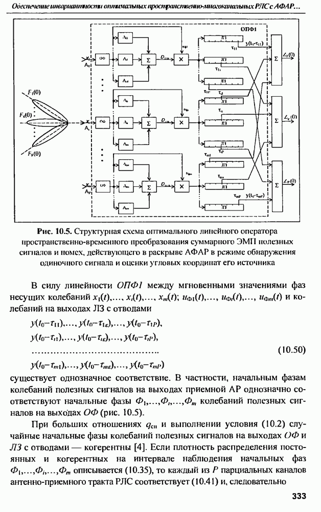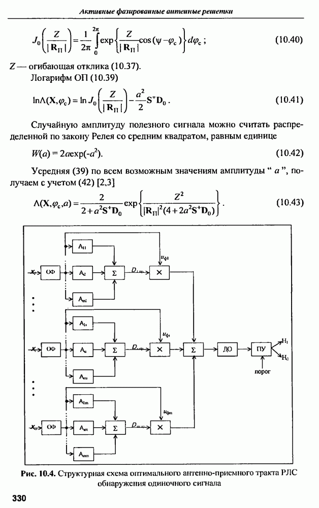 выродиться на любой частоте. Поэтому оптимальные пространственно-m-канальные РЛС обеспечивают при выполнении условия (10.81) и неподавлении полезных сигналов максимально возможное в каждой конкретной фоноцелевой и помеховой ситуации отношение полезный сигнал/помеха на выходе.