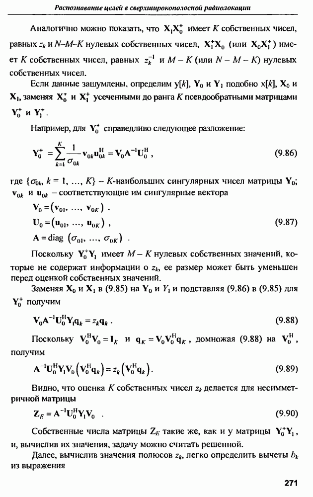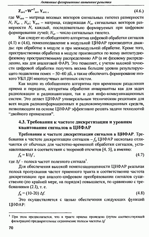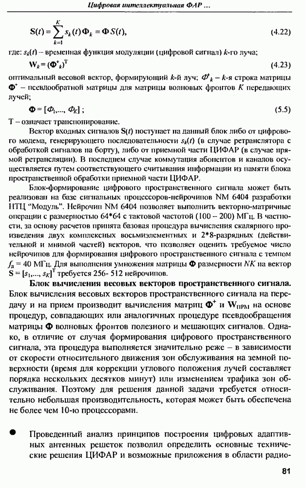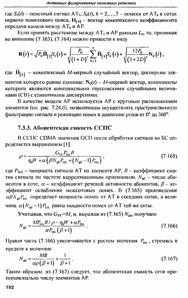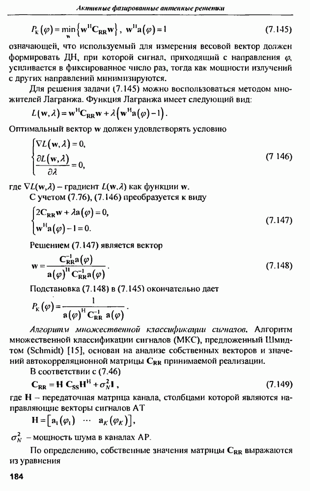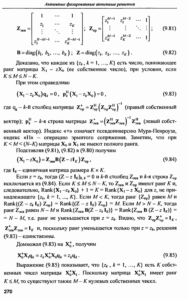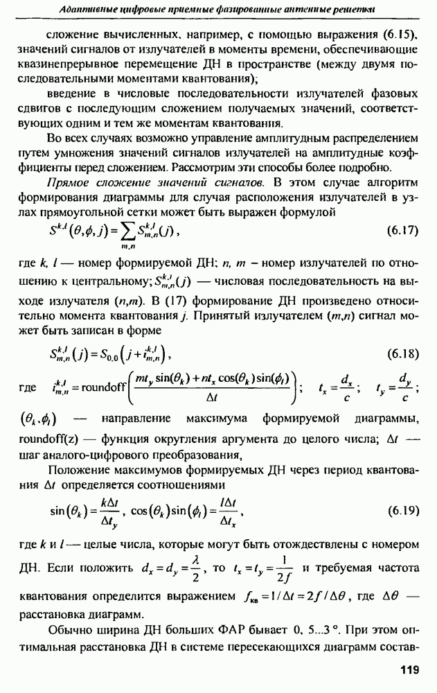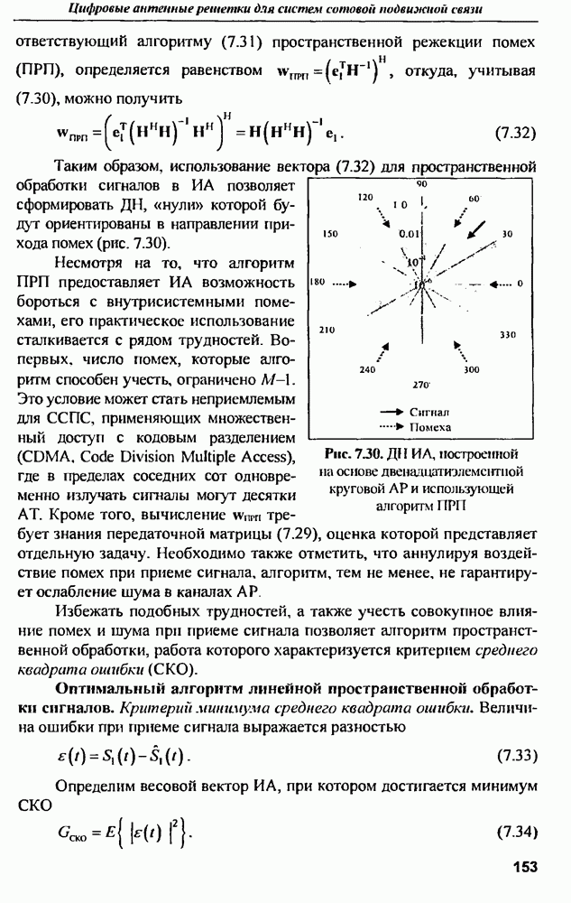 выродиться на любой частоте. Поэтому оптимальные пространственно-m-канальные РЛС обеспечивают при выполнении условия (10.81) и неподавлении полезных сигналов максимально возможное в каждой конкретной фоноцелевой и помеховой ситуации отношение полезный сигнал/помеха на выходе.