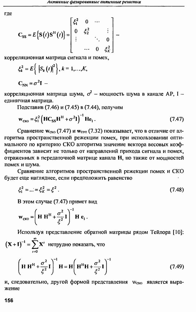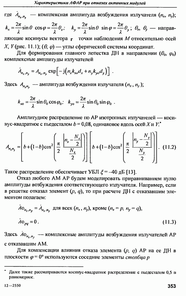 Если помехи в раскрыве приемной ФАР РЛС создаются только внешними источниками, то левую часть (10.78) можно, с учетом (10.63), представить в виде