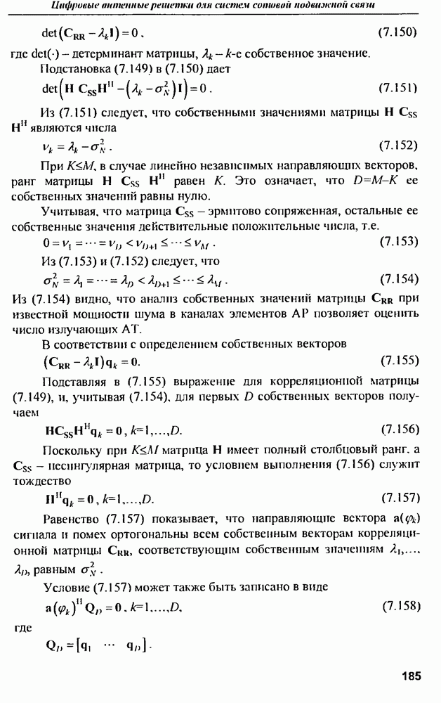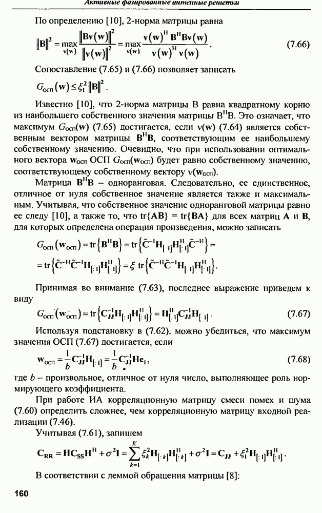 Вектор (10.75), удовлетворяющий условию (10.76), является собственным вектором матрицы помех