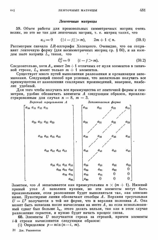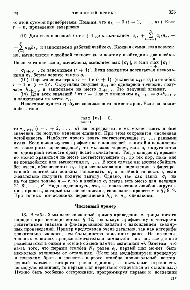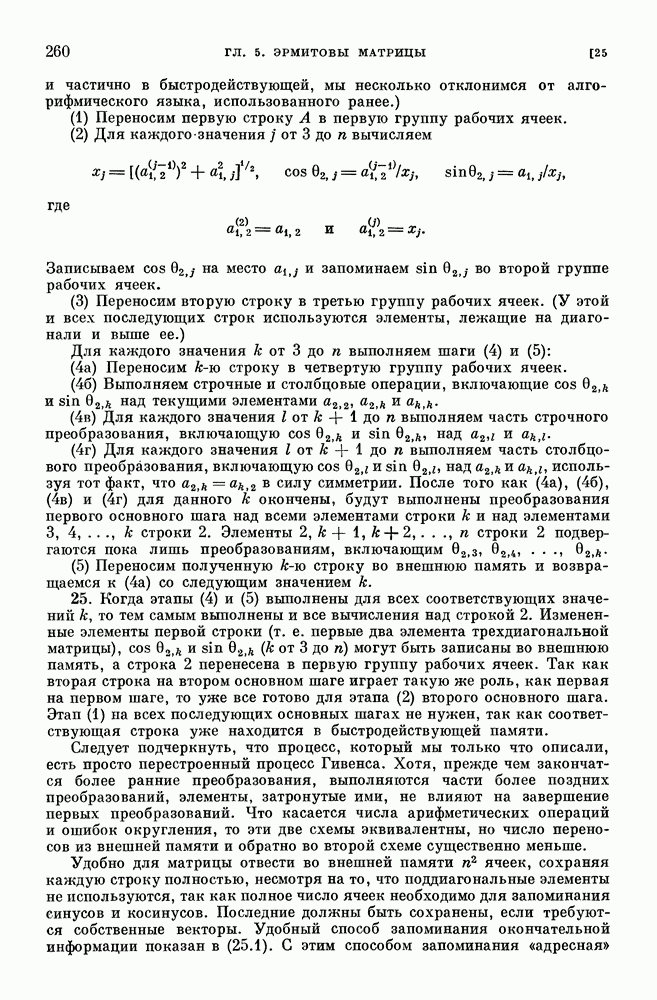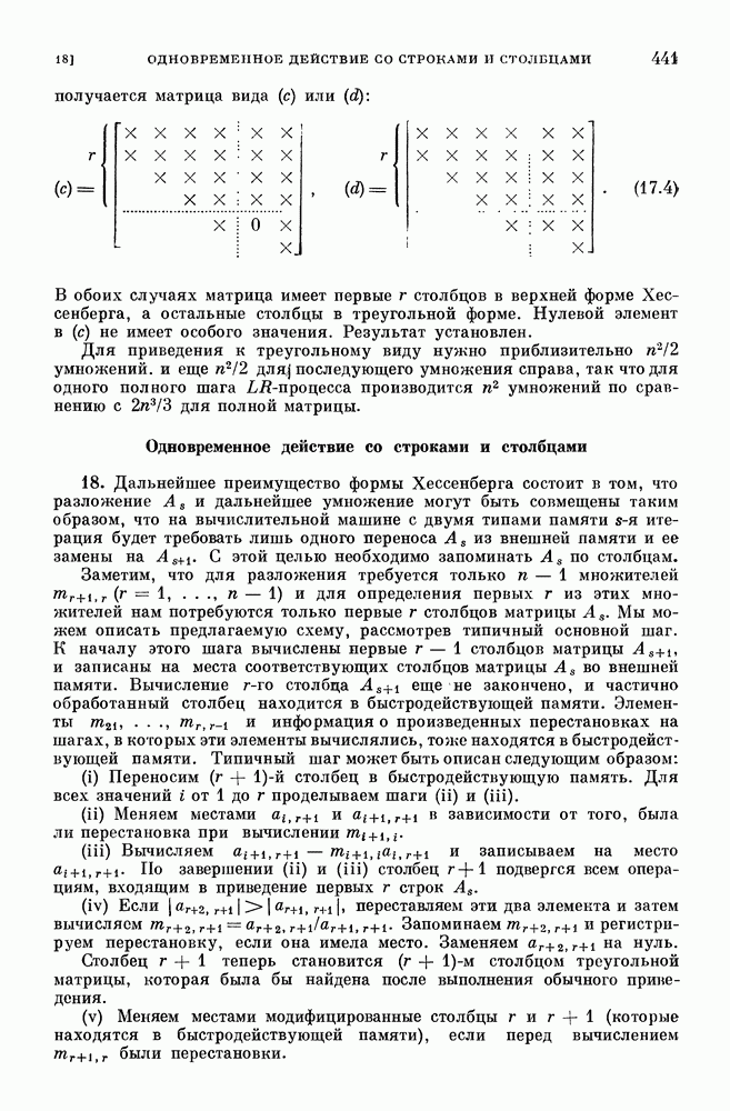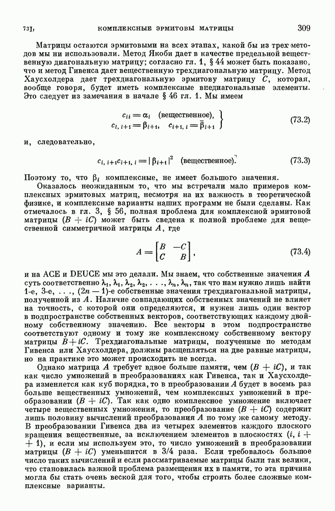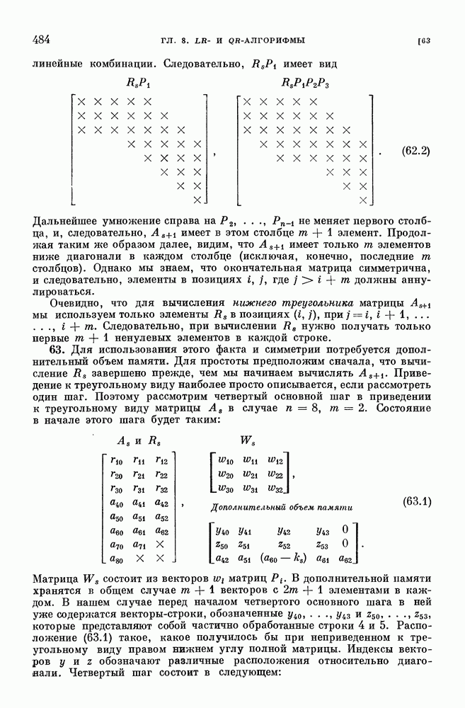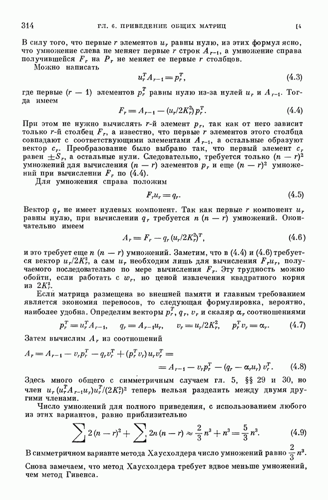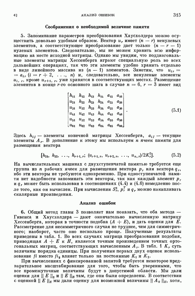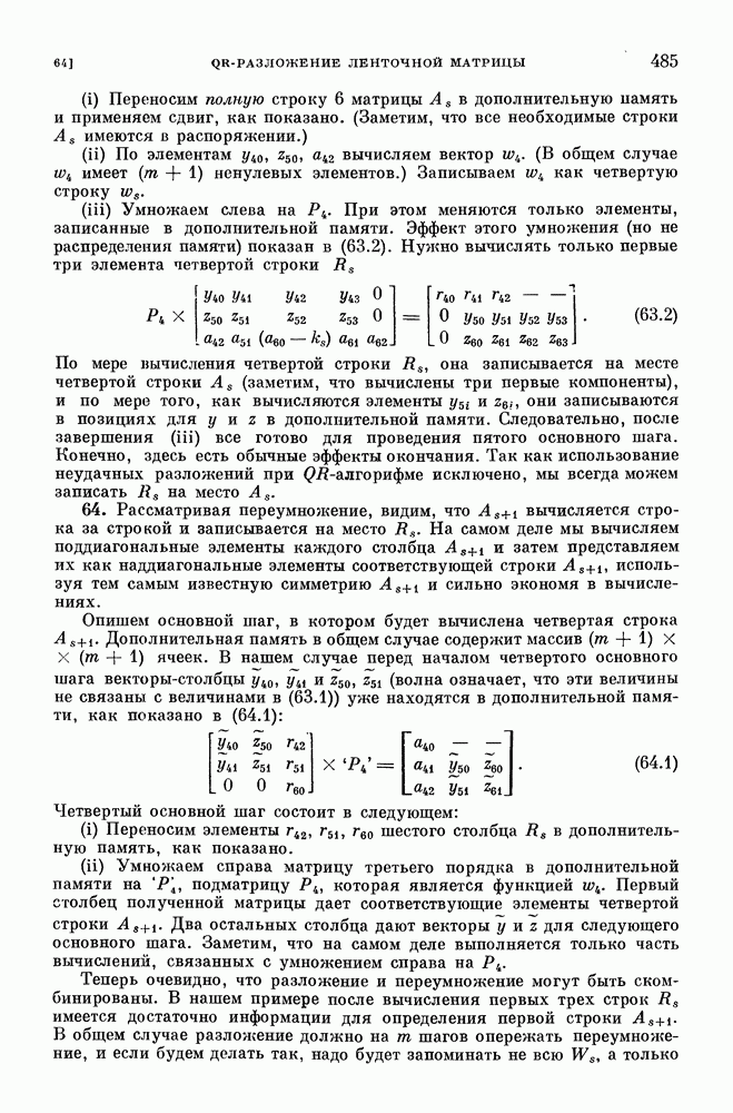 скалярные произведения накапливались точно с округлением после суммирования; это требовало лишь умножения величин с двойной точностью (62 двоичных разряда) на величины с одинарной точностью. Так как исходная А используется все время, мы можем полностью получать все преимущества от нулевых элементов, которые она может содержать. Уравнения