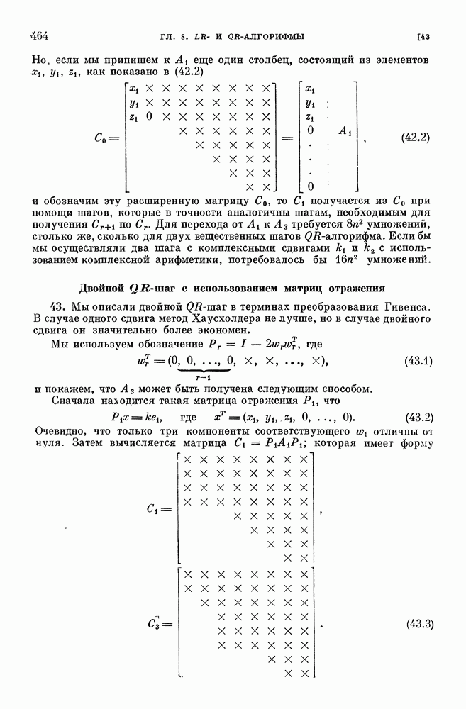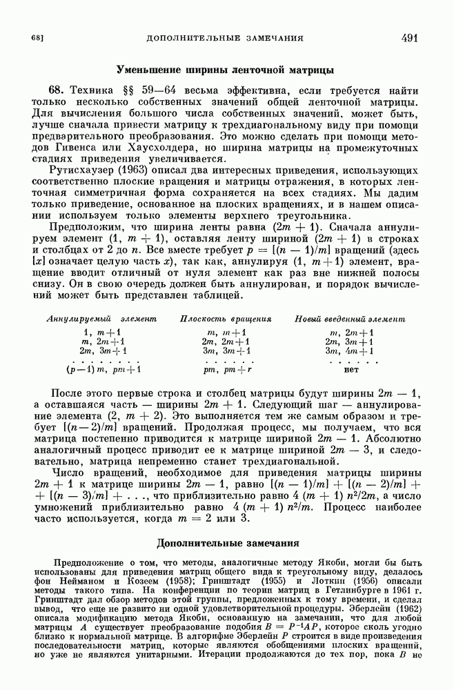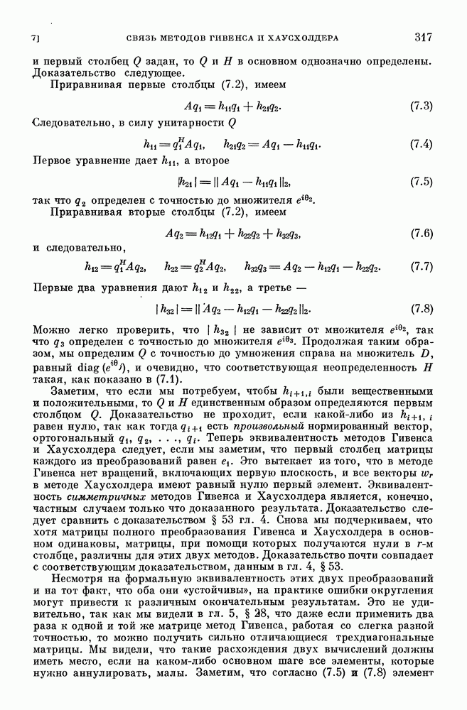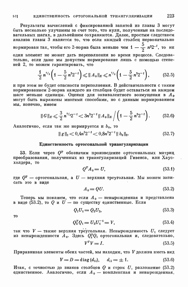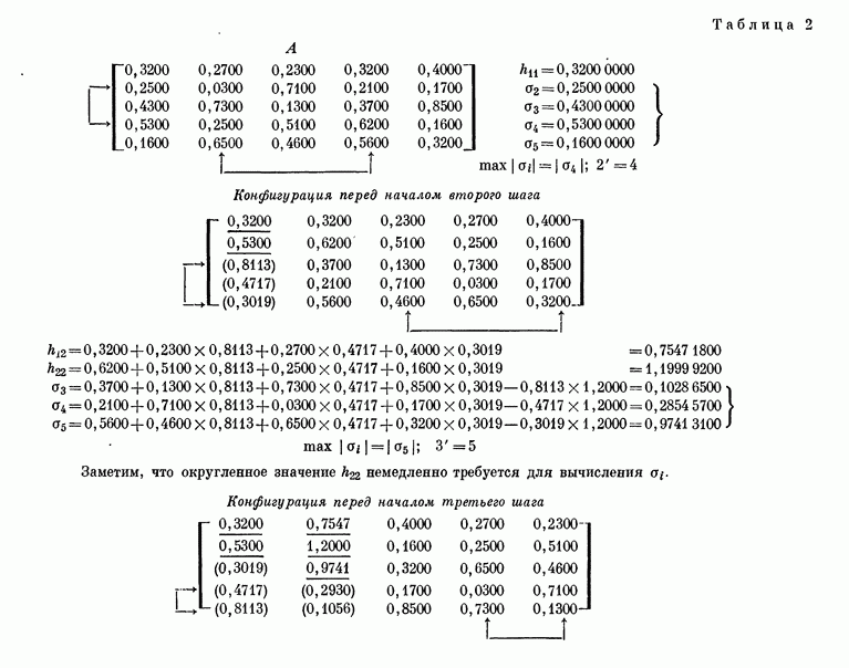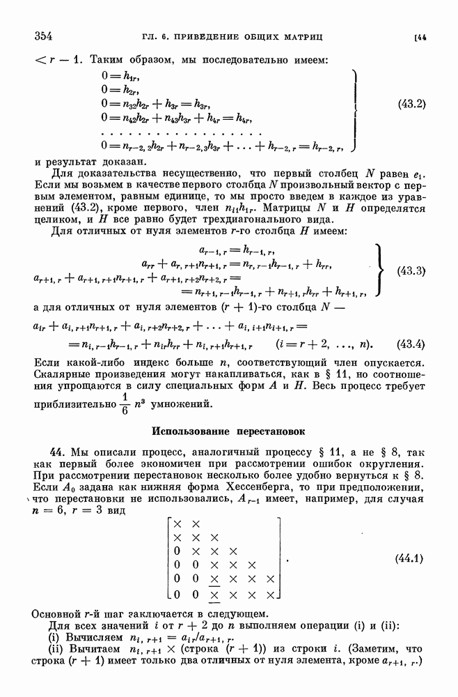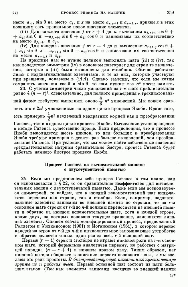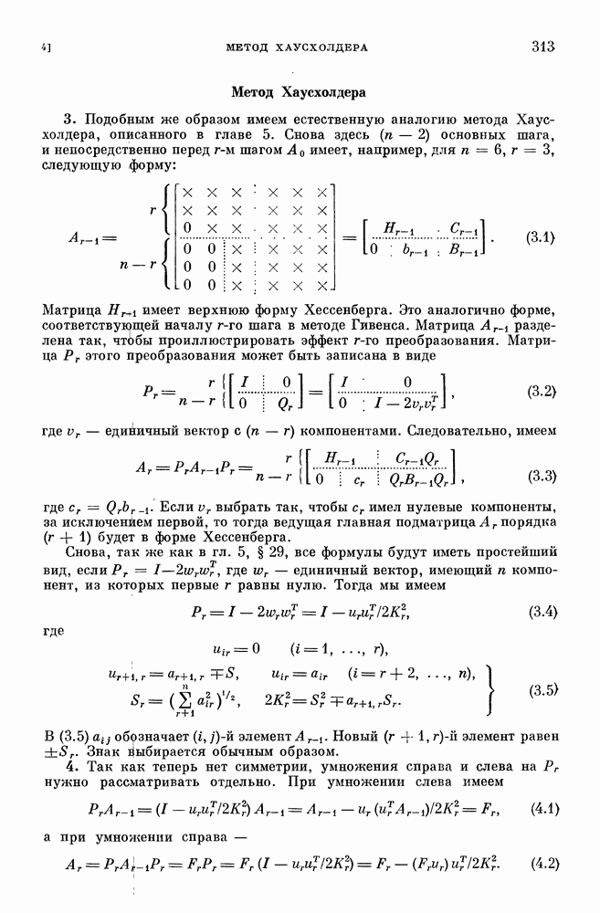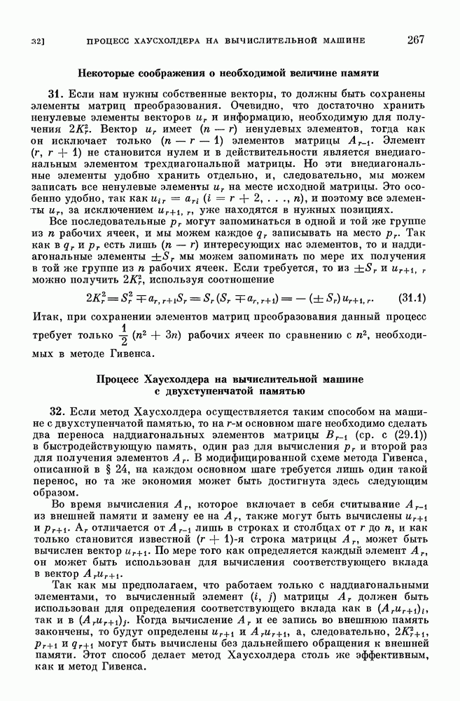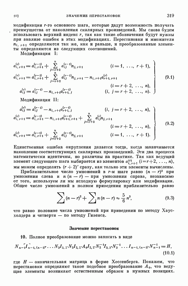 скалярные произведения накапливались точно с округлением после суммирования; это требовало лишь умножения величин с двойной точностью (62 двоичных разряда) на величины с одинарной точностью. Так как исходная А используется все время, мы можем полностью получать все преимущества от нулевых элементов, которые она может содержать. Уравнения