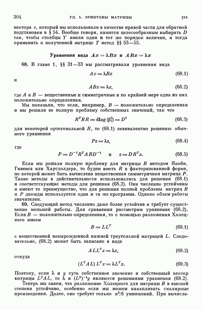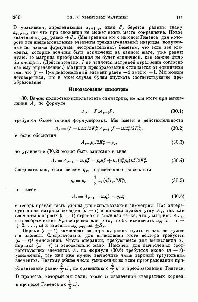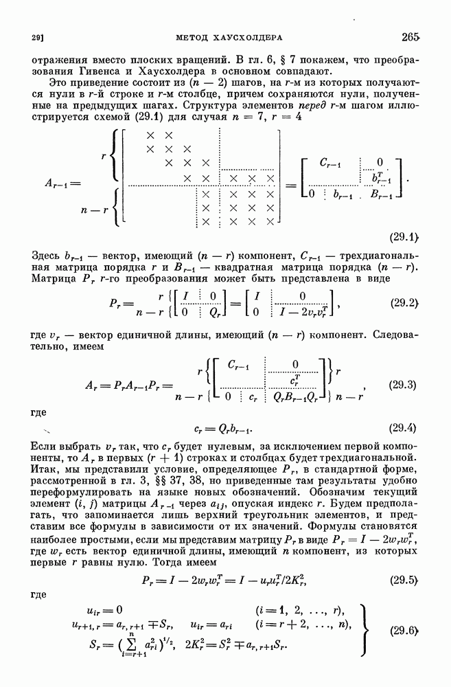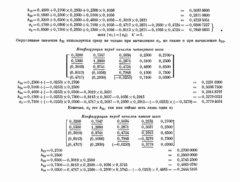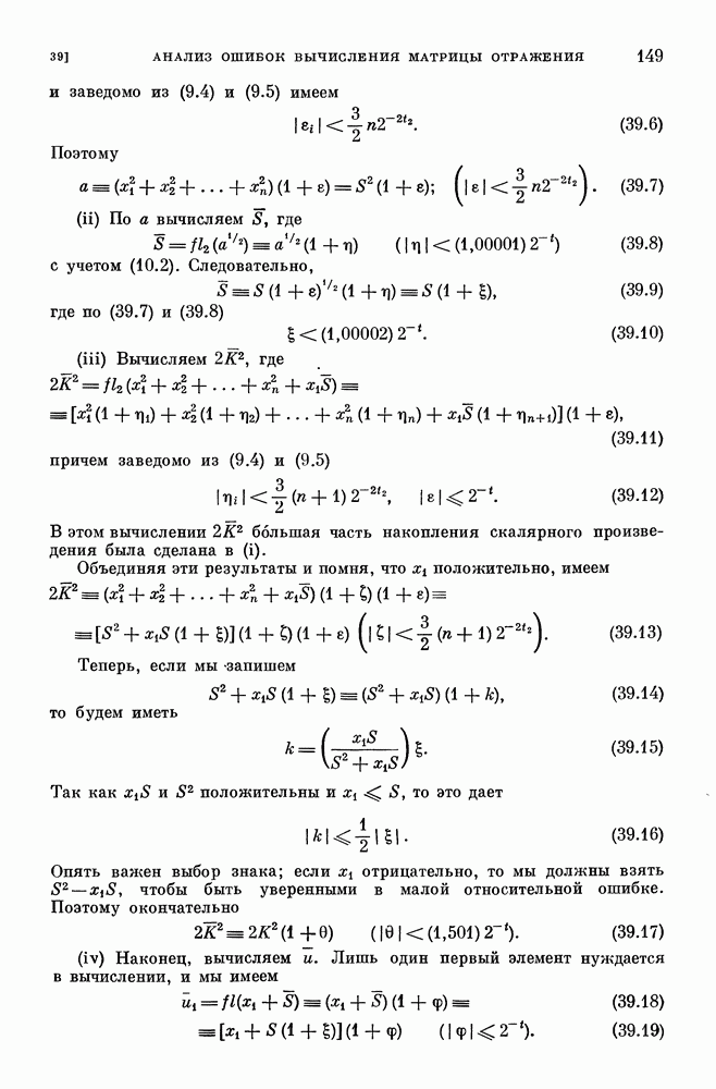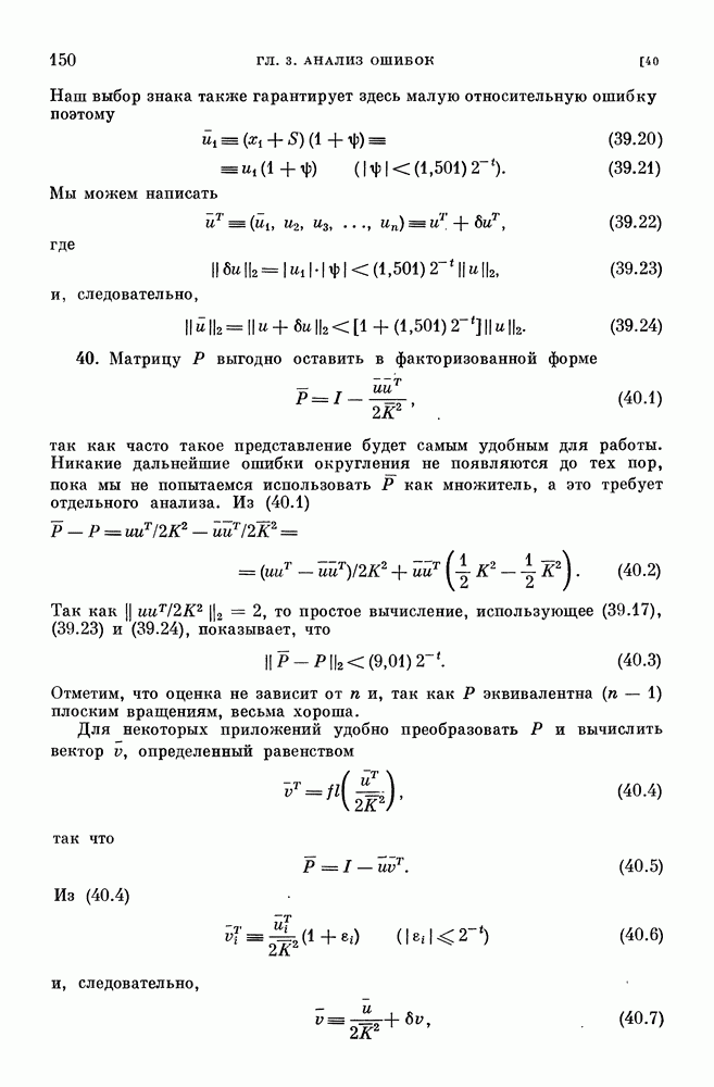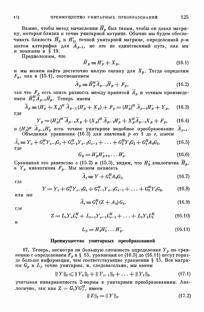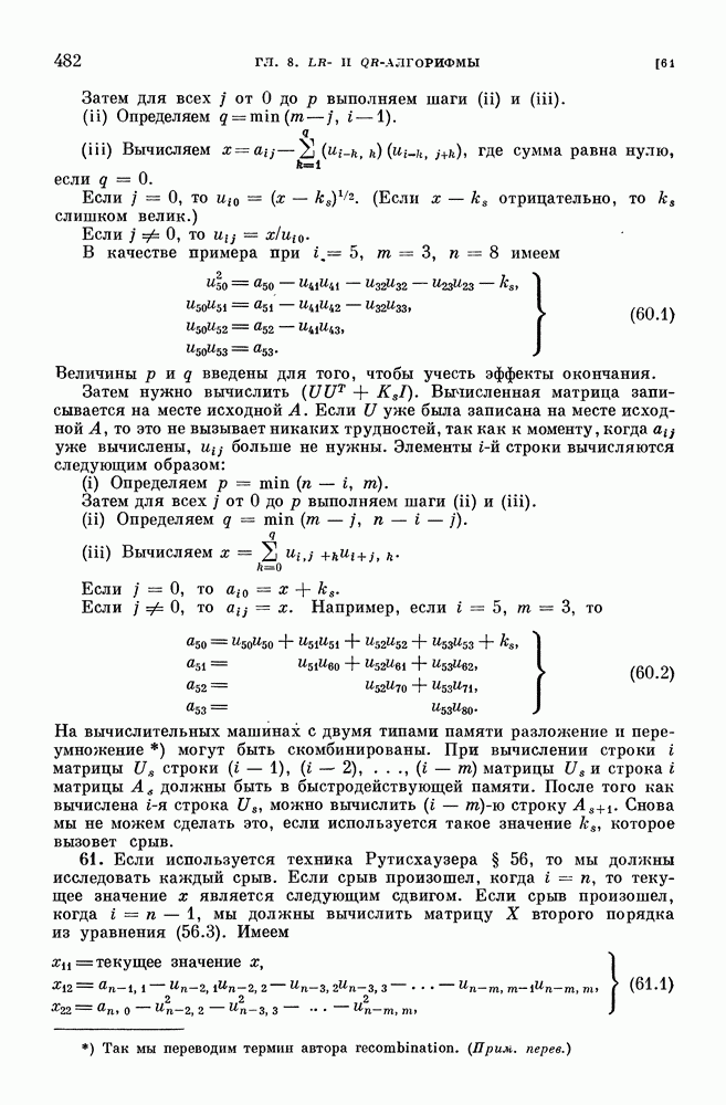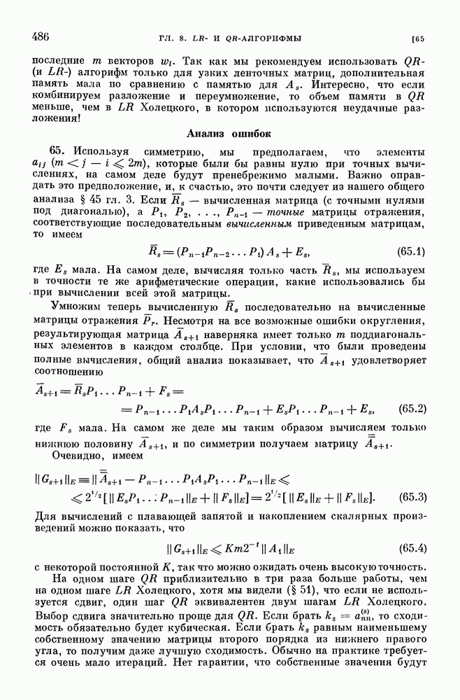 скалярные произведения накапливались точно с округлением после суммирования; это требовало лишь умножения величин с двойной точностью (62 двоичных разряда) на величины с одинарной точностью. Так как исходная А используется все время, мы можем полностью получать все преимущества от нулевых элементов, которые она может содержать. Уравнения