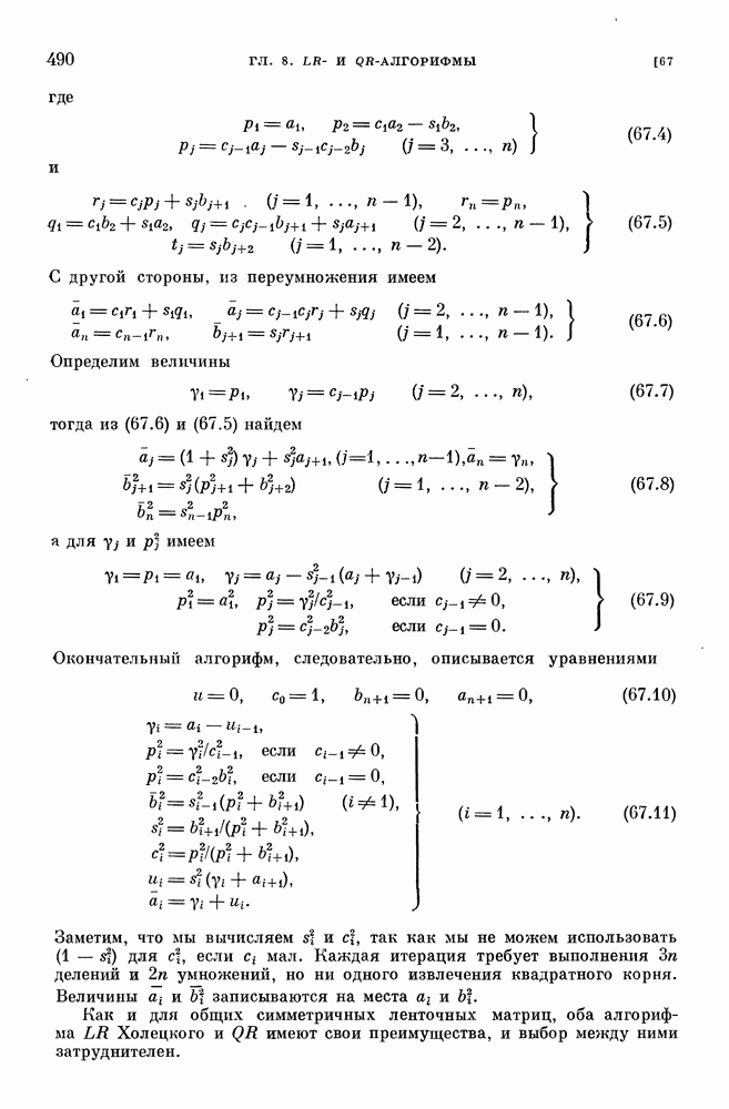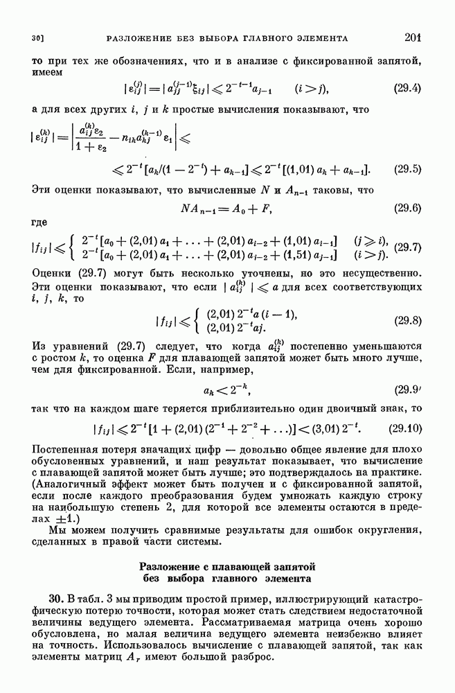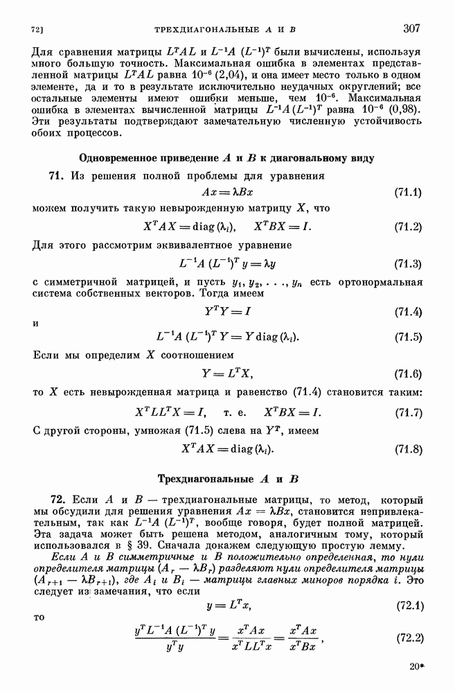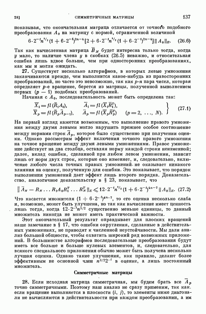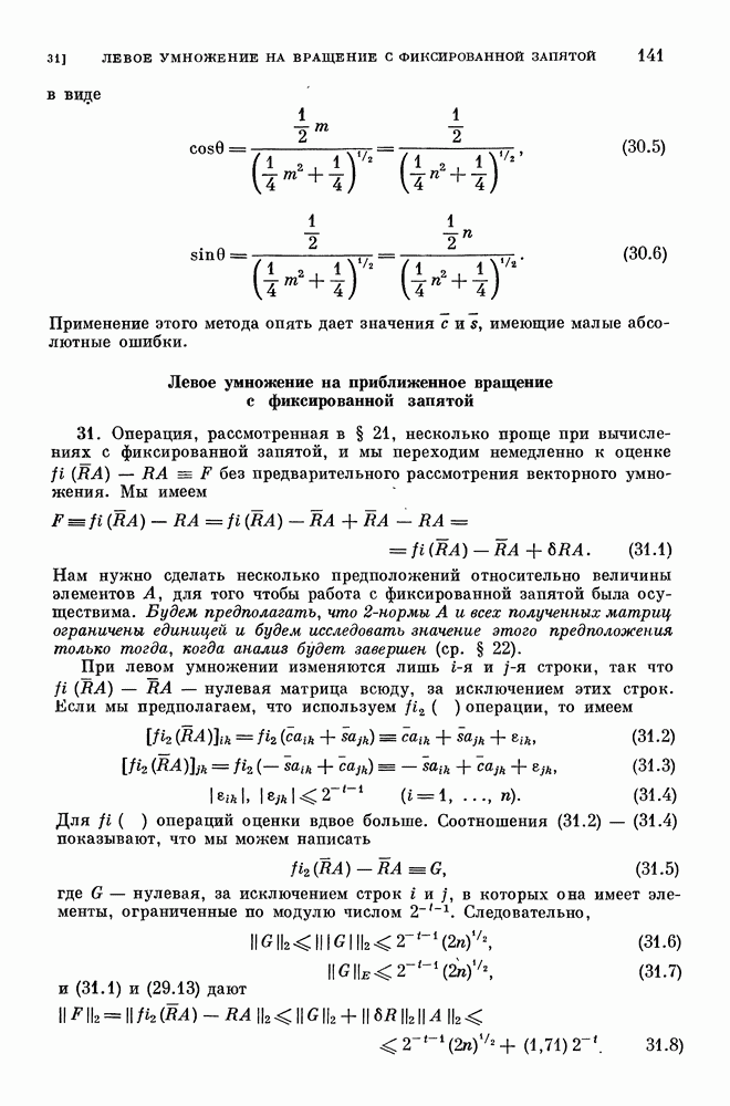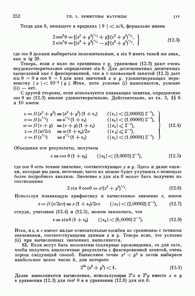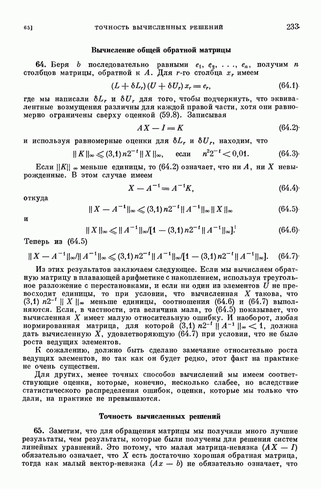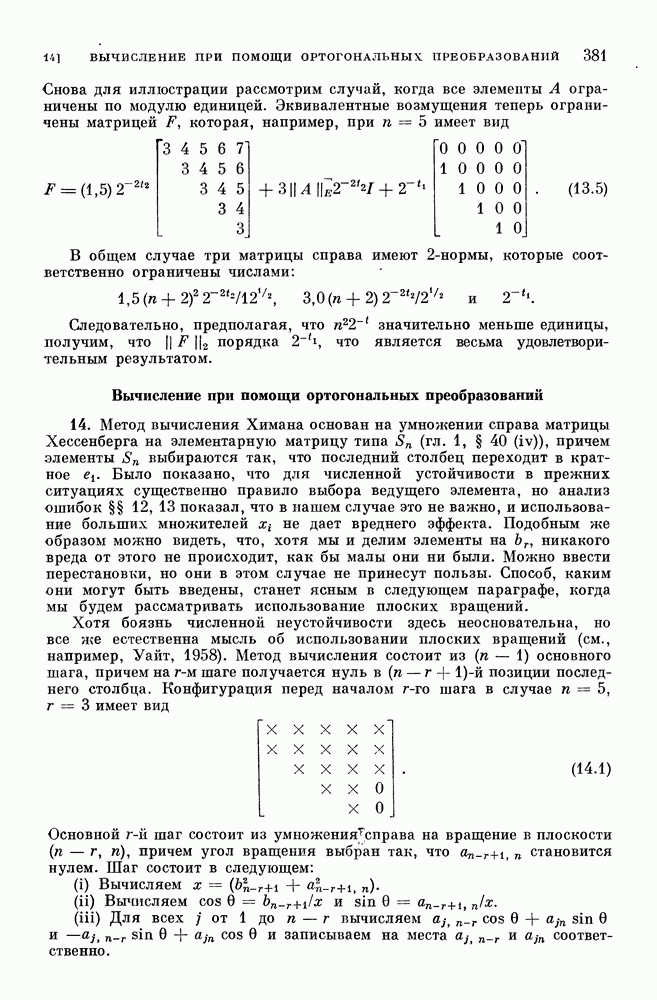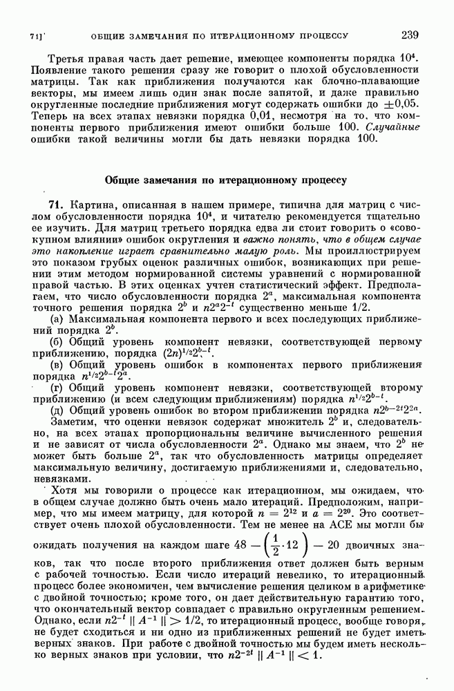 скалярные произведения накапливались точно с округлением после суммирования; это требовало лишь умножения величин с двойной точностью (62 двоичных разряда) на величины с одинарной точностью. Так как исходная А используется все время, мы можем полностью получать все преимущества от нулевых элементов, которые она может содержать. Уравнения