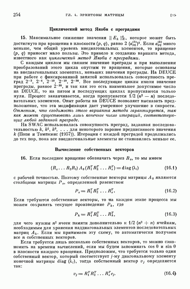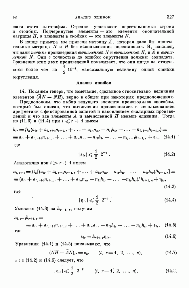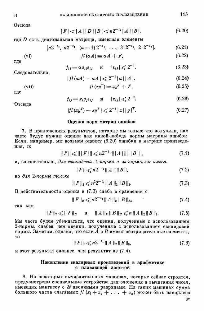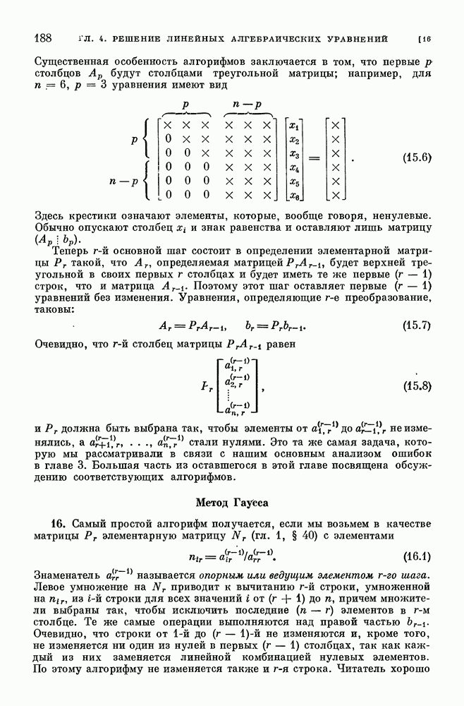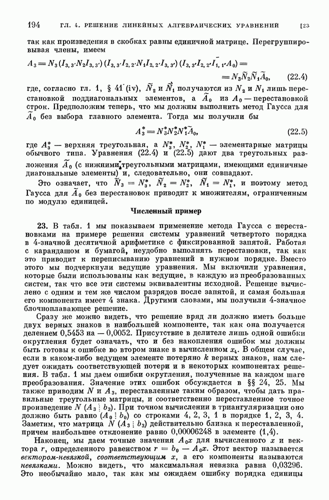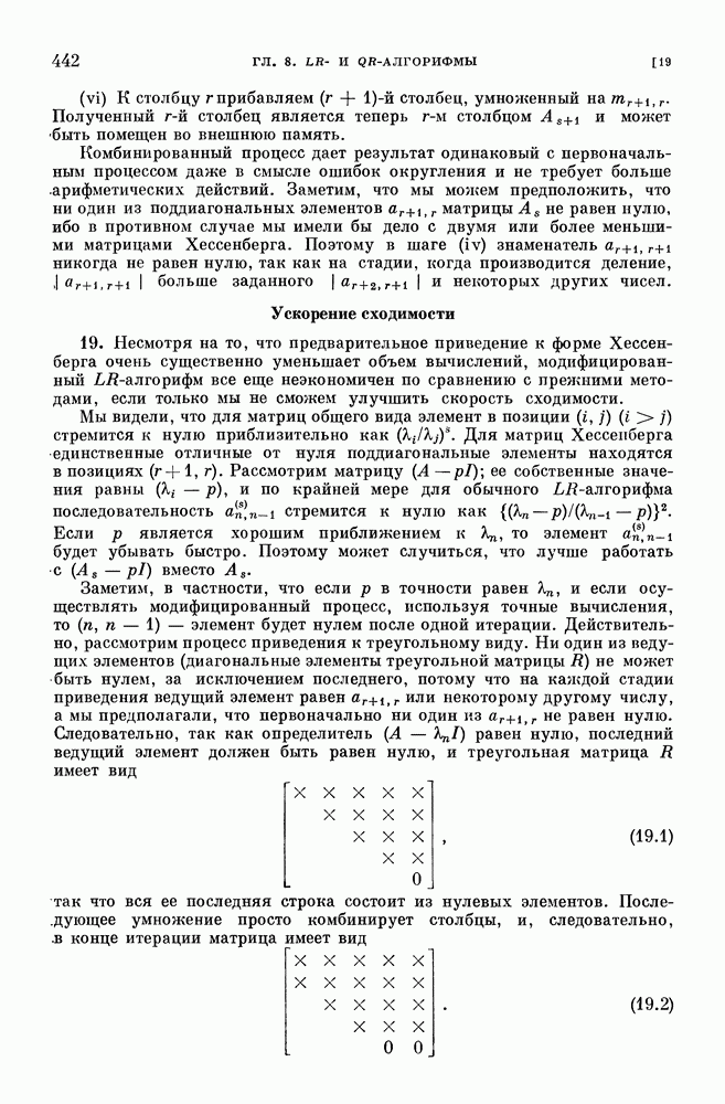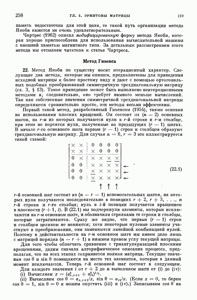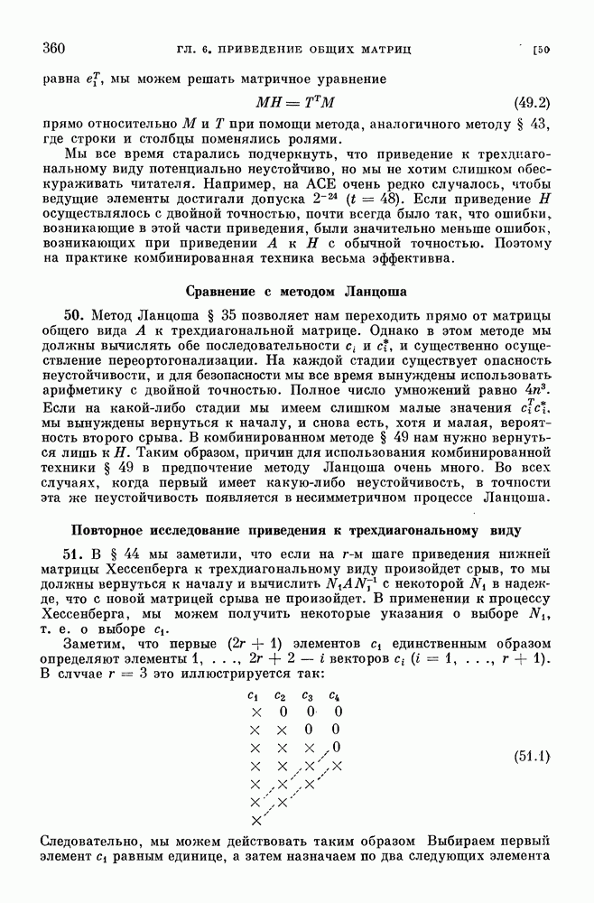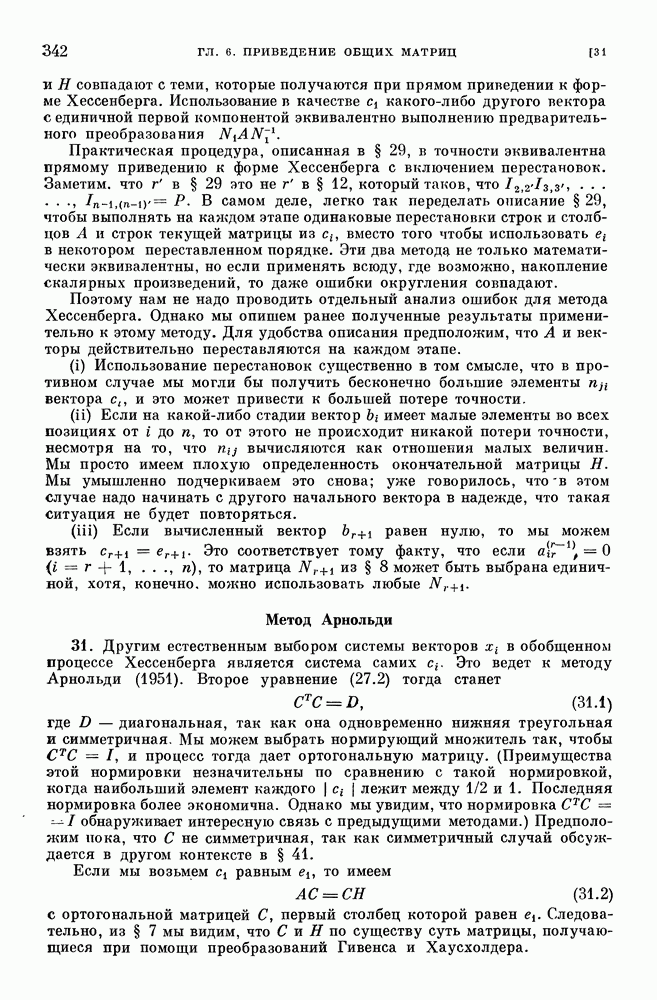 скалярные произведения накапливались точно с округлением после суммирования; это требовало лишь умножения величин с двойной точностью (62 двоичных разряда) на величины с одинарной точностью. Так как исходная А используется все время, мы можем полностью получать все преимущества от нулевых элементов, которые она может содержать. Уравнения