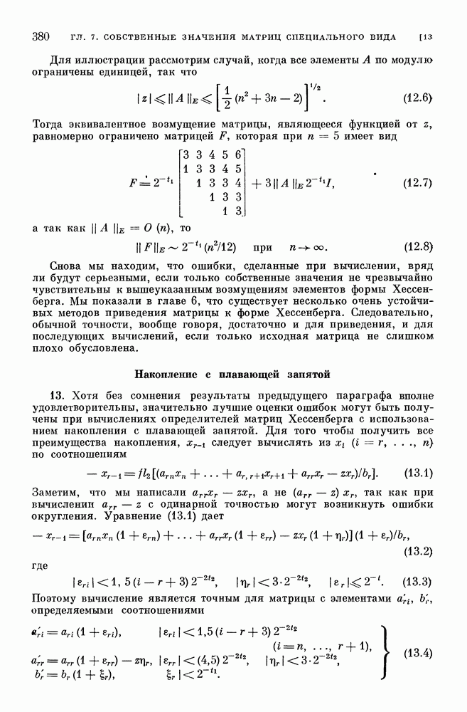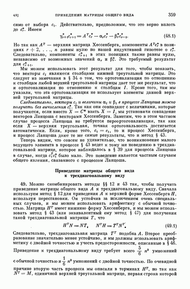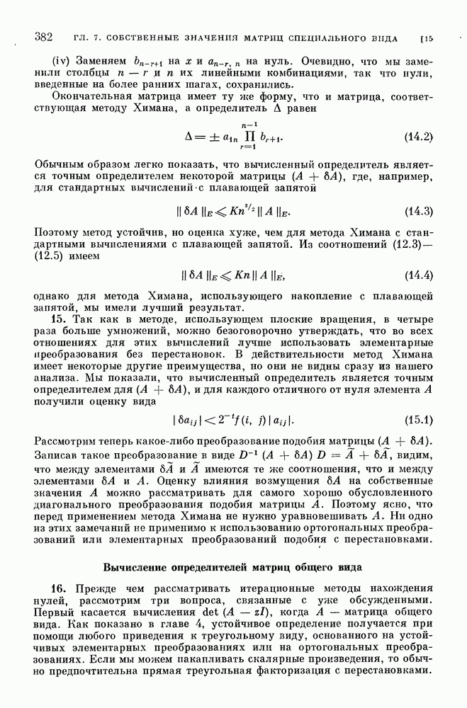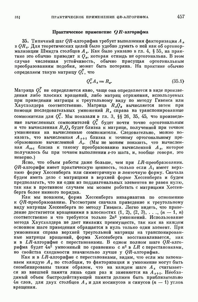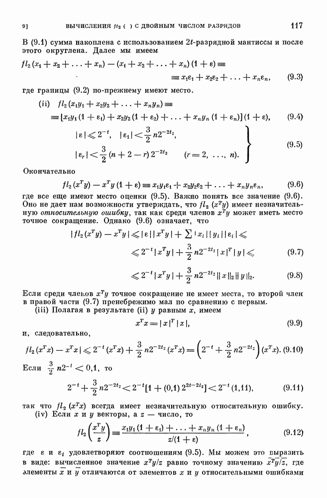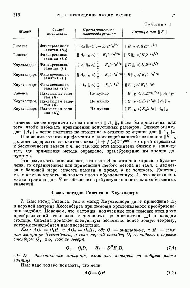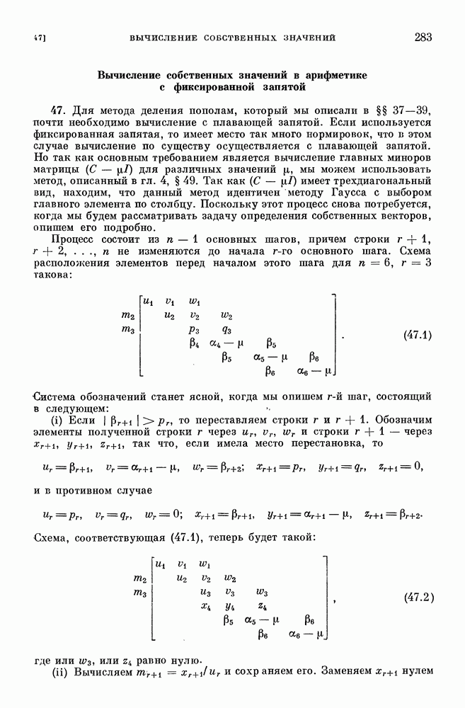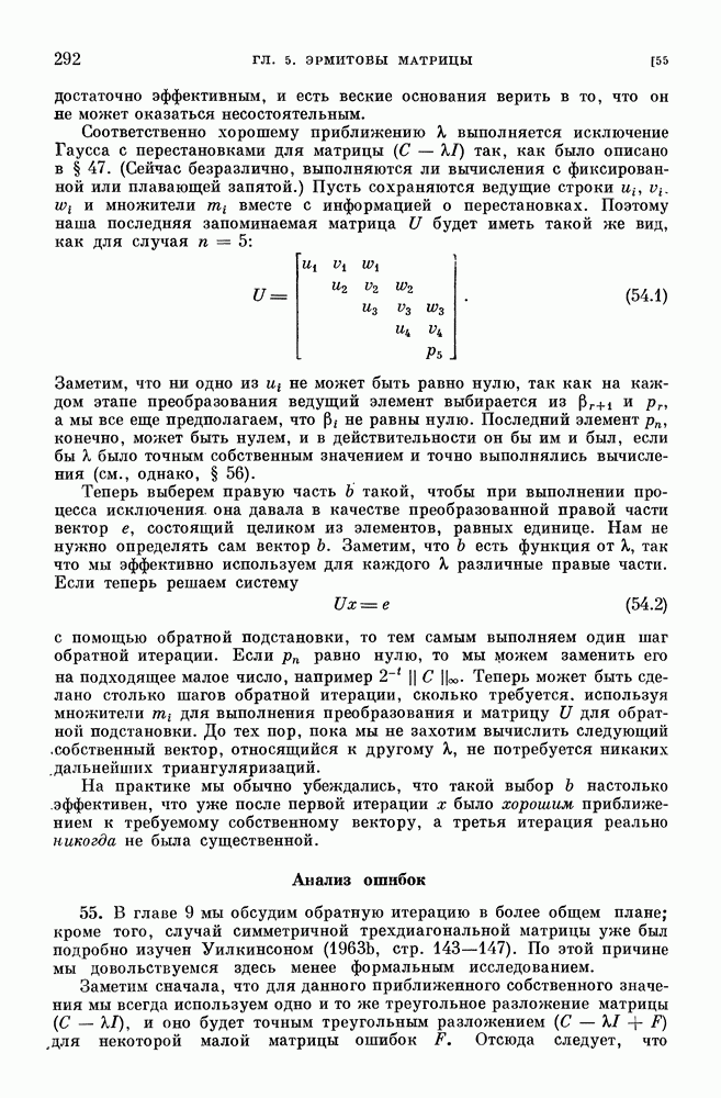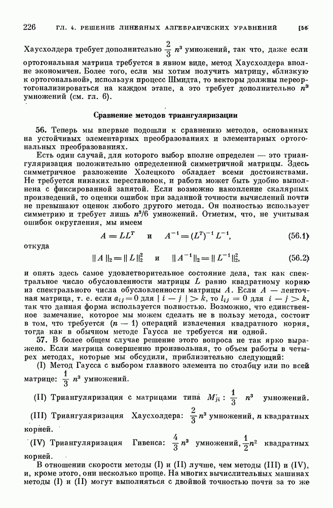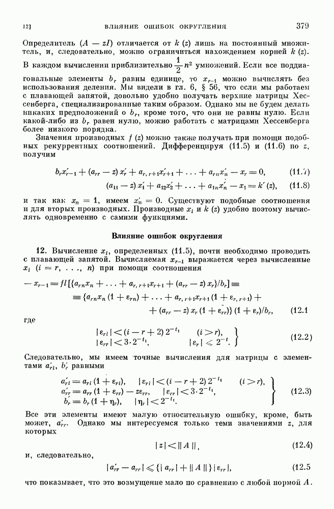 скалярные произведения накапливались точно с округлением после суммирования; это требовало лишь умножения величин с двойной точностью (62 двоичных разряда) на величины с одинарной точностью. Так как исходная А используется все время, мы можем полностью получать все преимущества от нулевых элементов, которые она может содержать. Уравнения