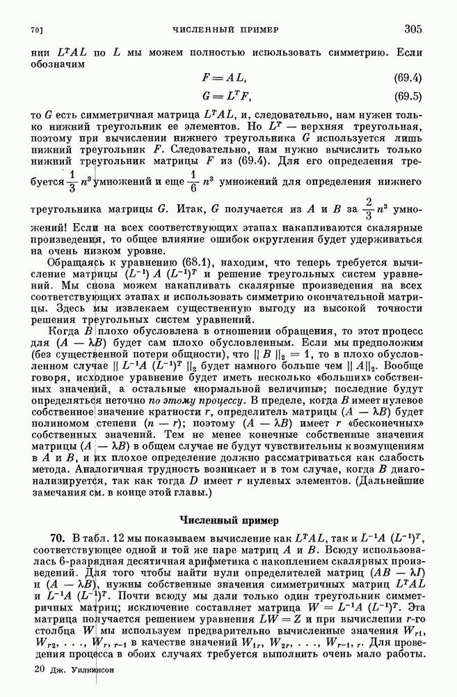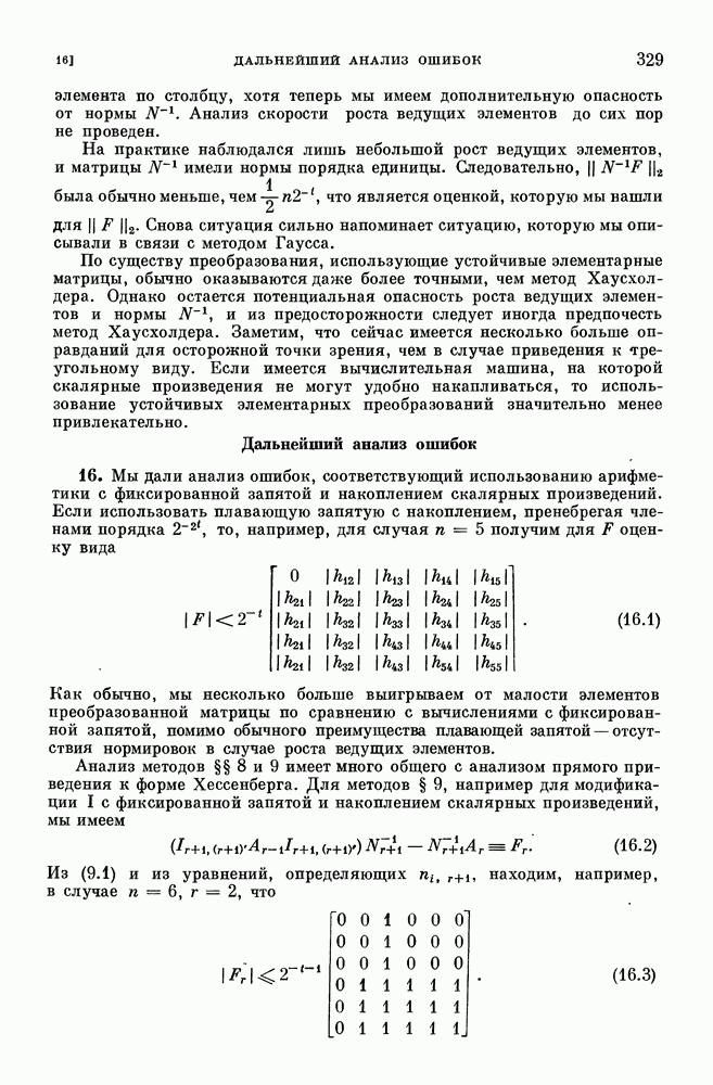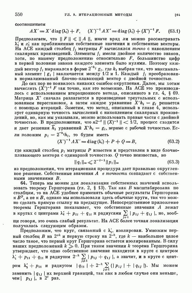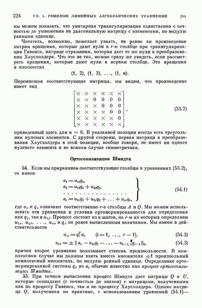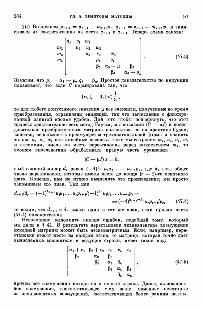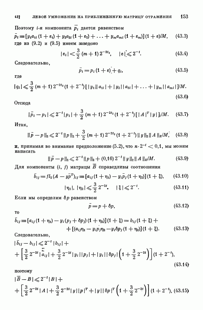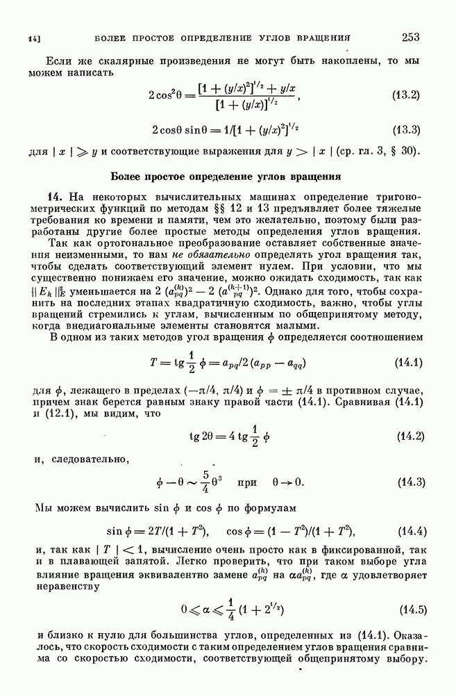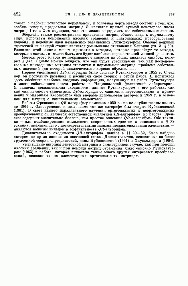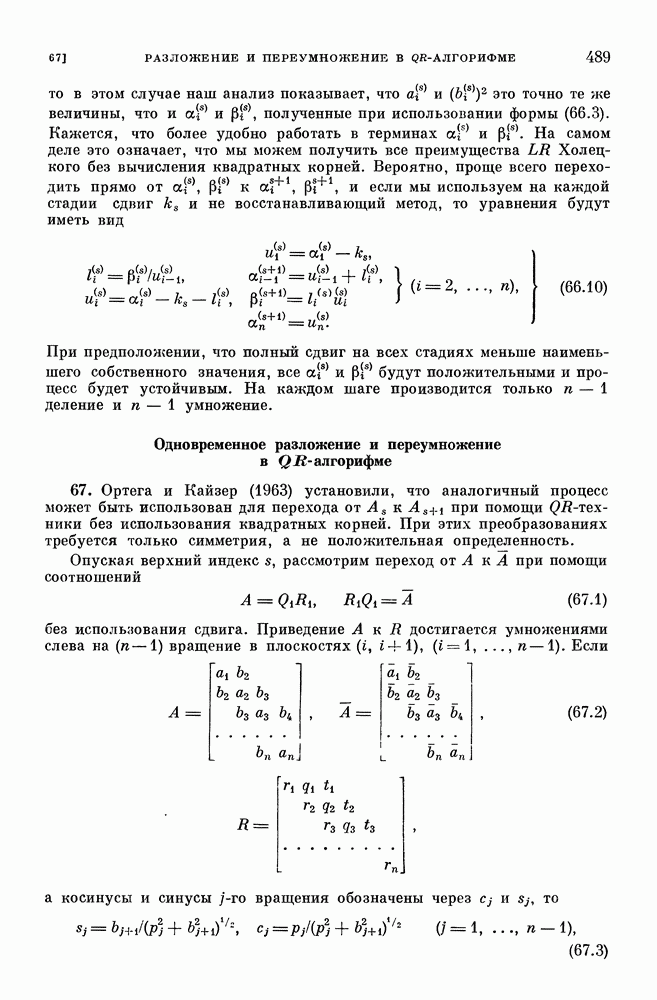 скалярные произведения накапливались точно с округлением после суммирования; это требовало лишь умножения величин с двойной точностью (62 двоичных разряда) на величины с одинарной точностью. Так как исходная А используется все время, мы можем полностью получать все преимущества от нулевых элементов, которые она может содержать. Уравнения