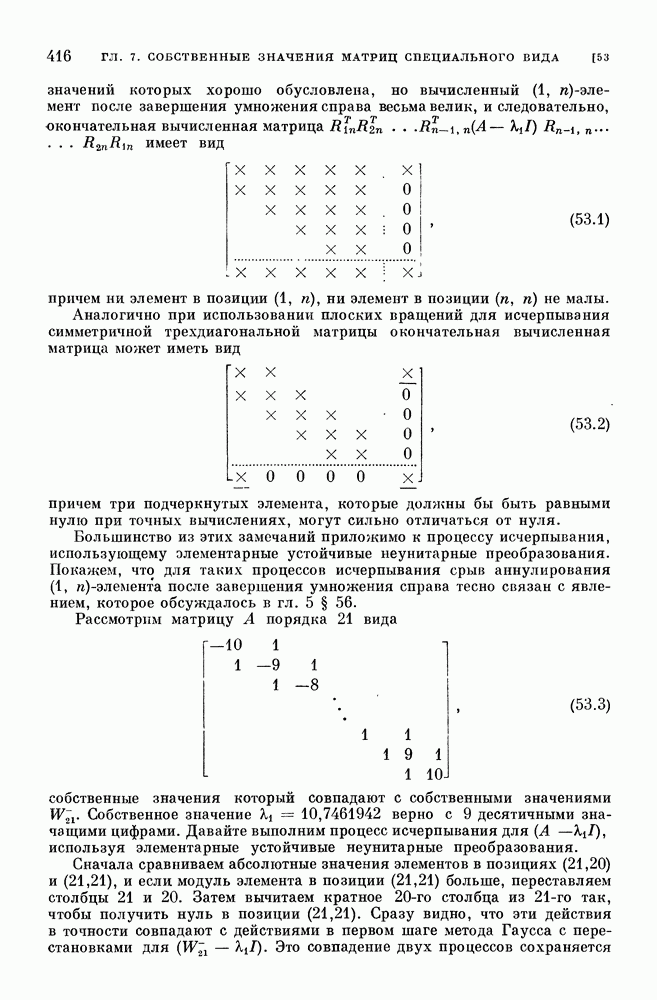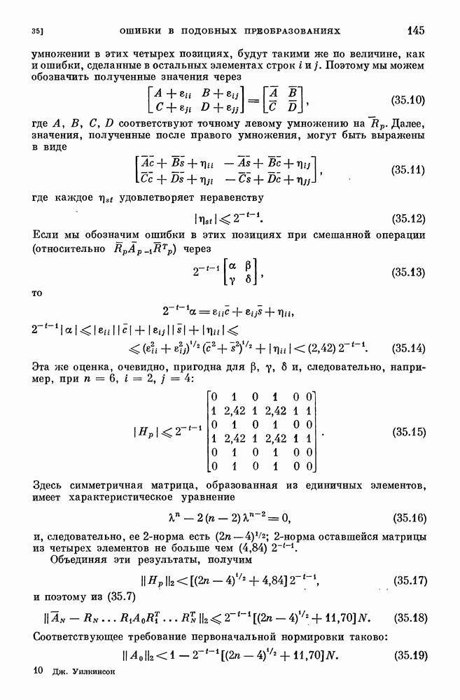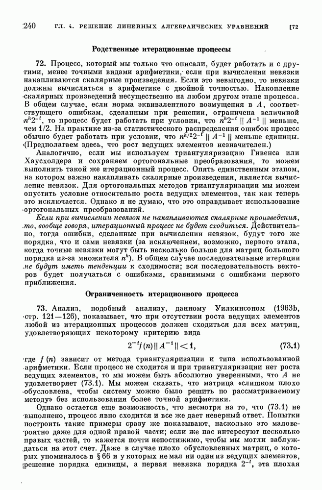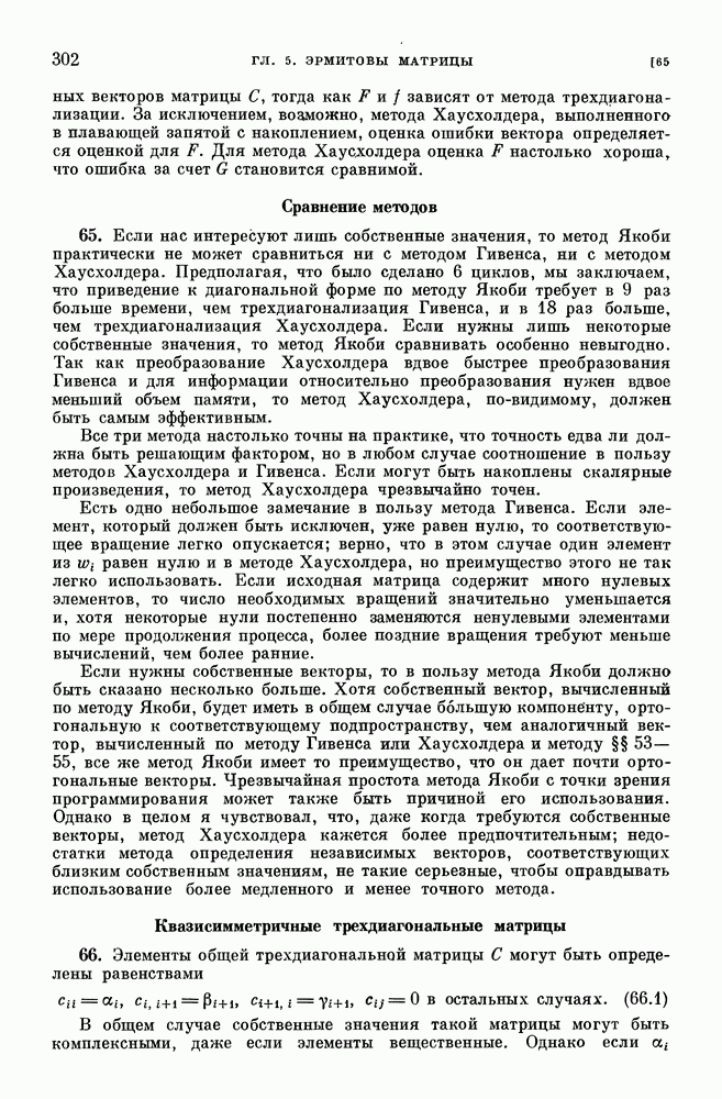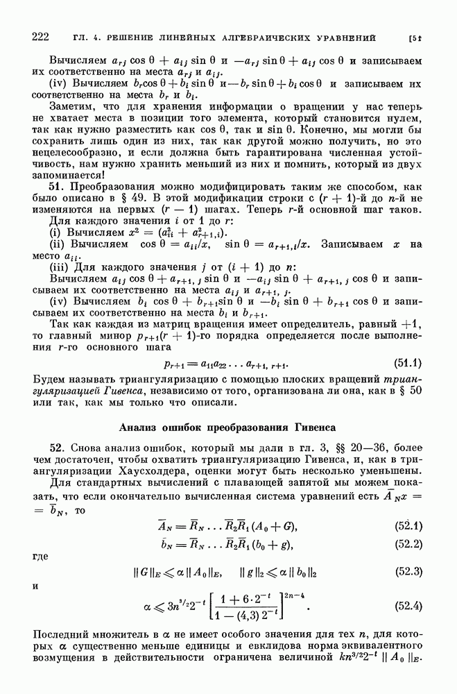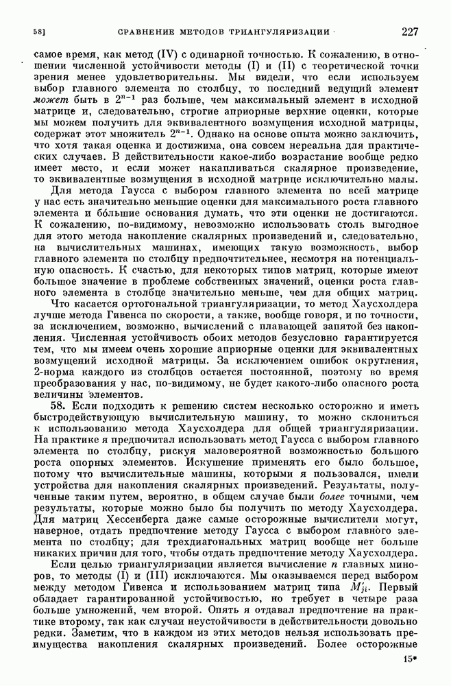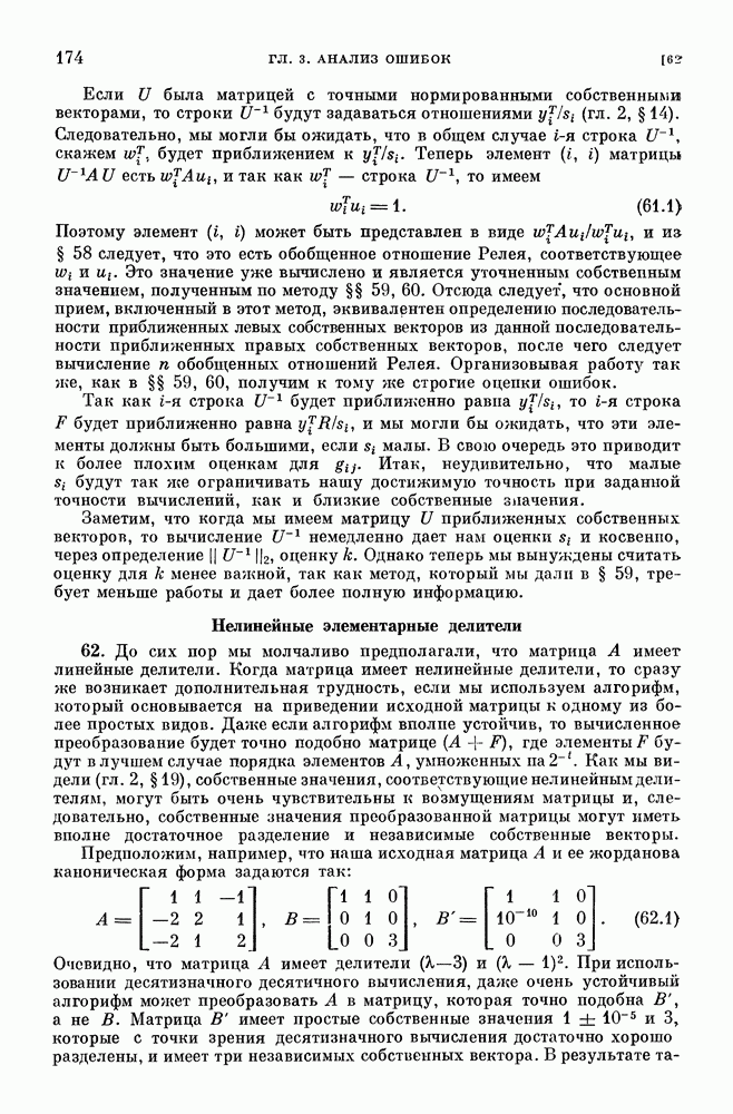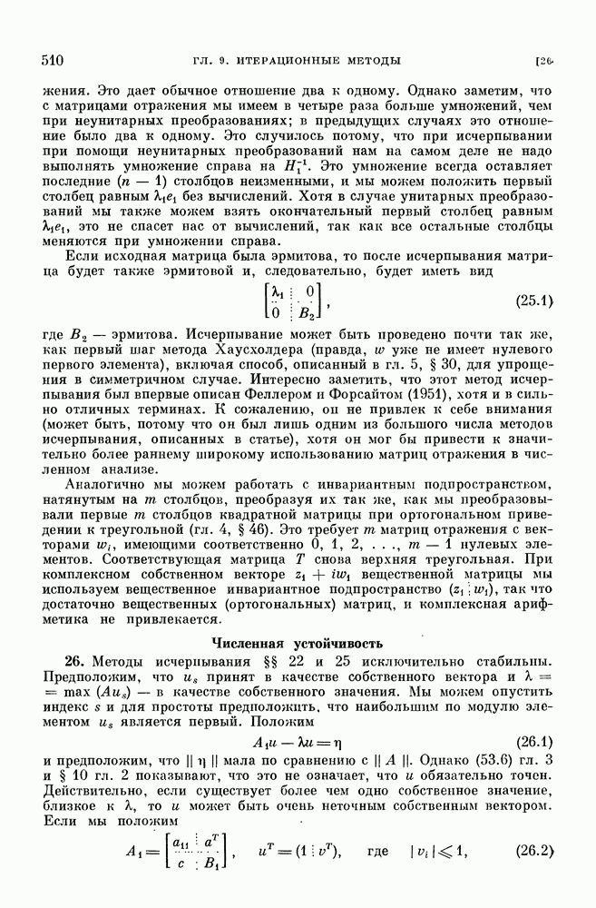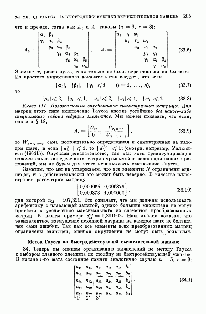 скалярные произведения накапливались точно с округлением после суммирования; это требовало лишь умножения величин с двойной точностью (62 двоичных разряда) на величины с одинарной точностью. Так как исходная А используется все время, мы можем полностью получать все преимущества от нулевых элементов, которые она может содержать. Уравнения