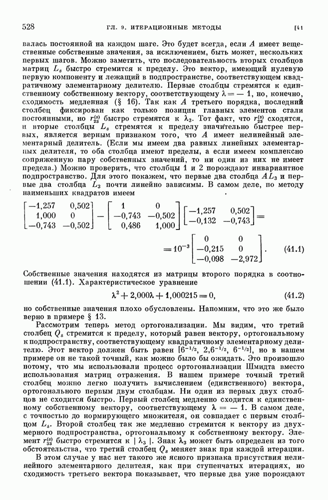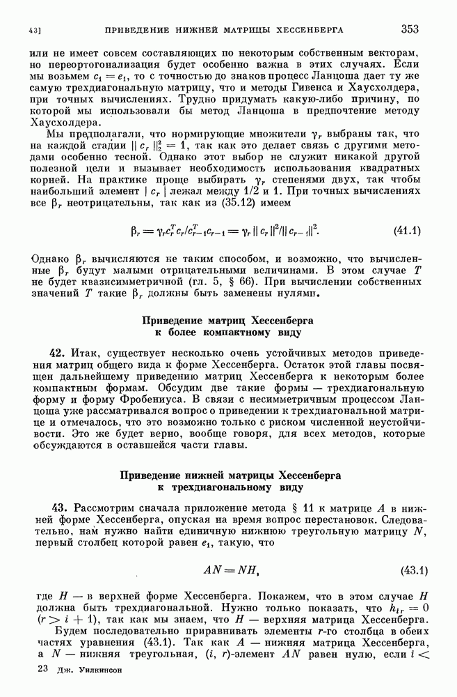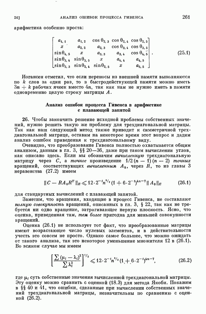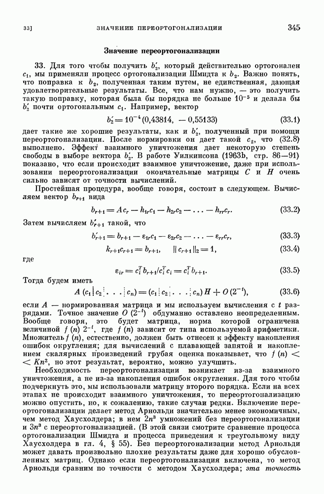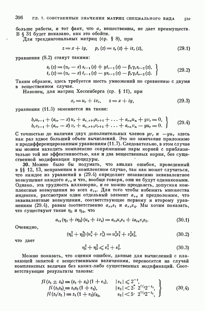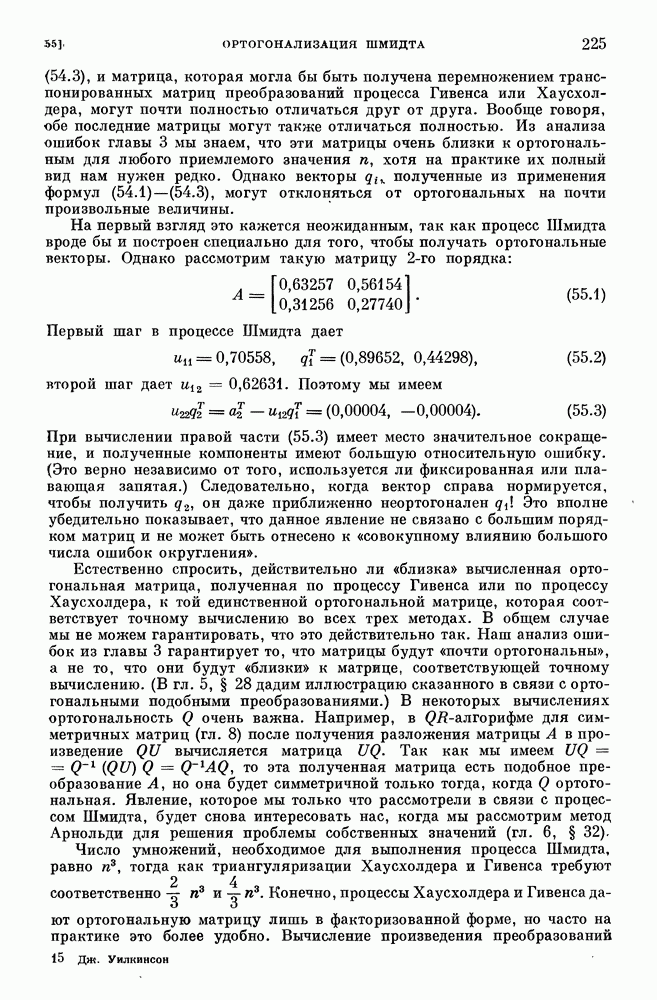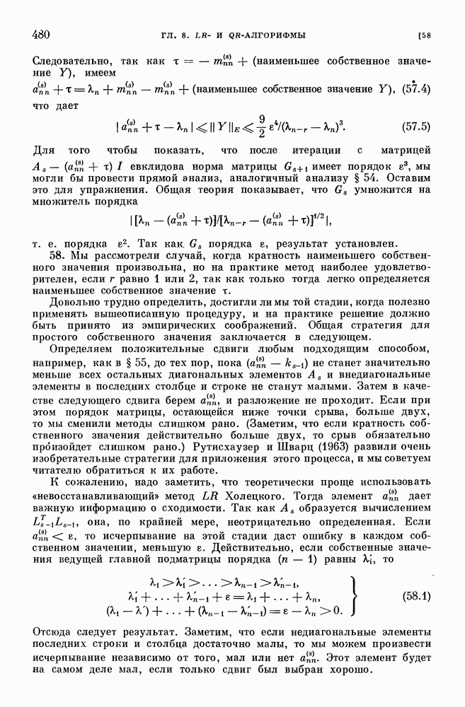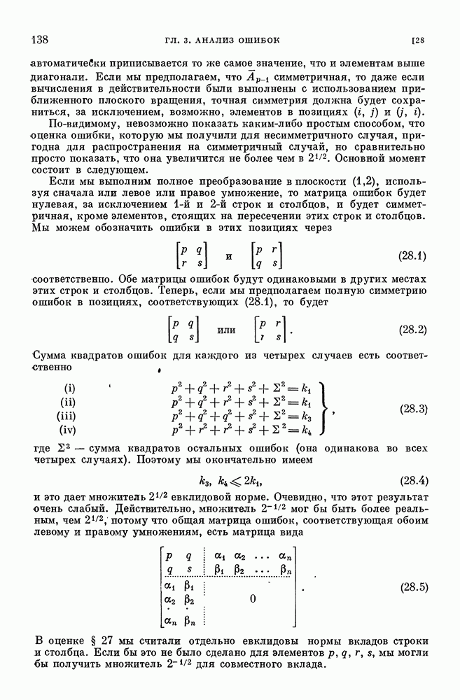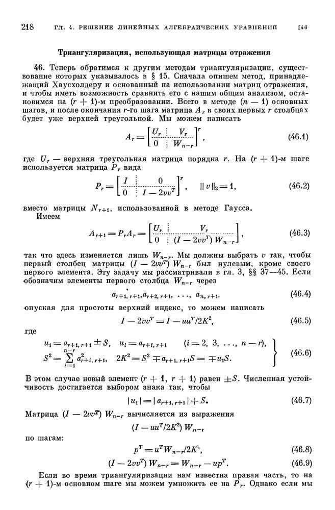 скалярные произведения накапливались точно с округлением после суммирования; это требовало лишь умножения величин с двойной точностью (62 двоичных разряда) на величины с одинарной точностью. Так как исходная А используется все время, мы можем полностью получать все преимущества от нулевых элементов, которые она может содержать. Уравнения