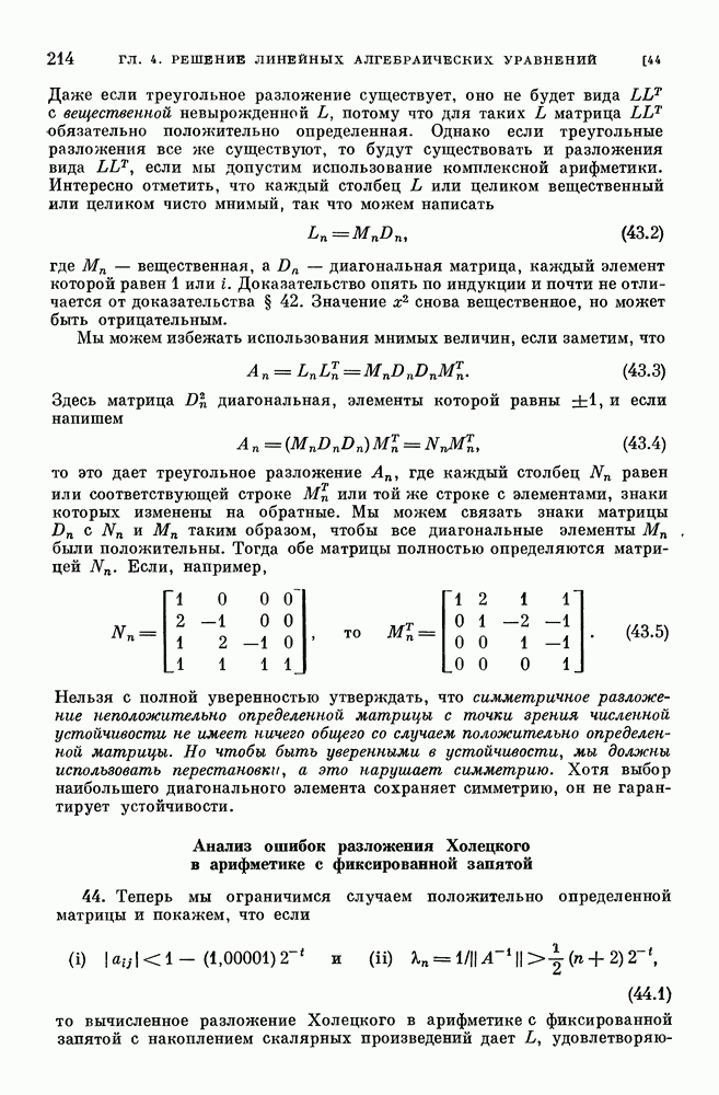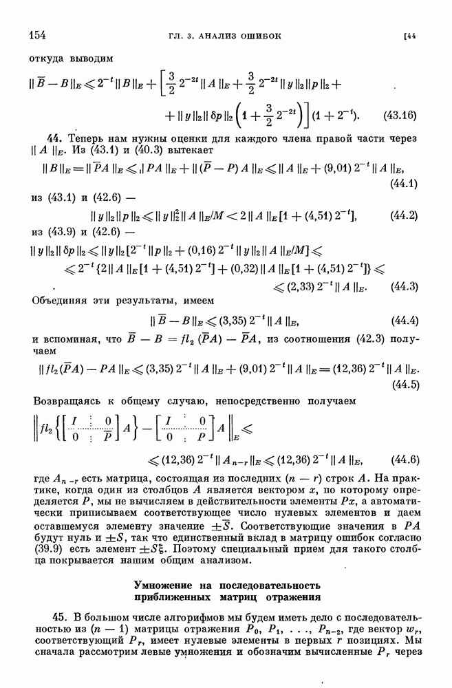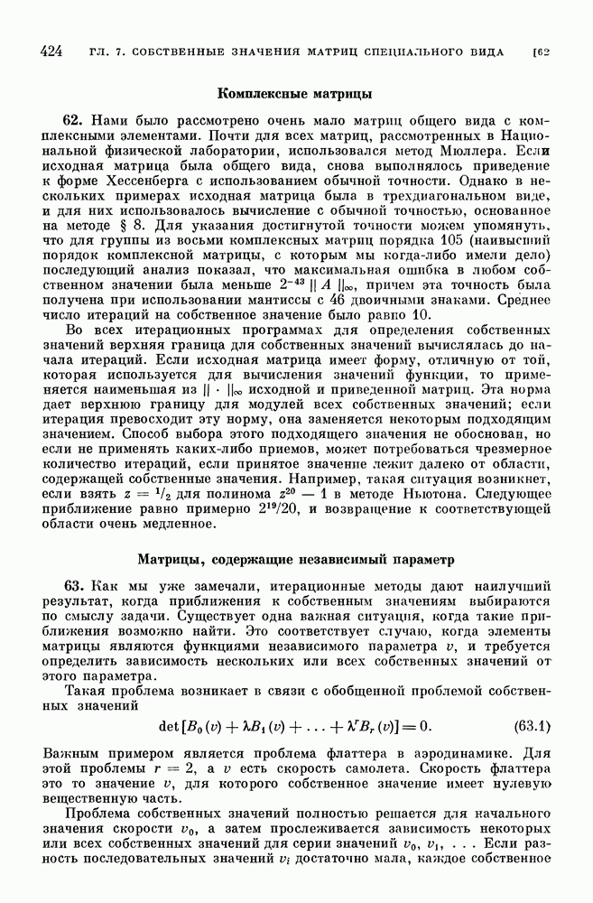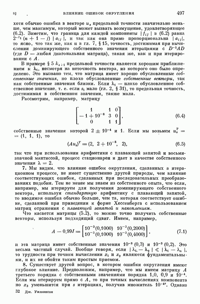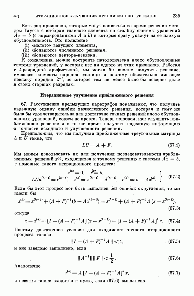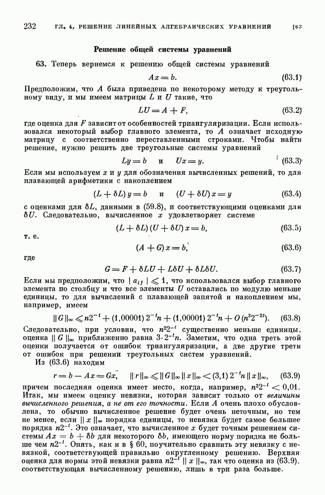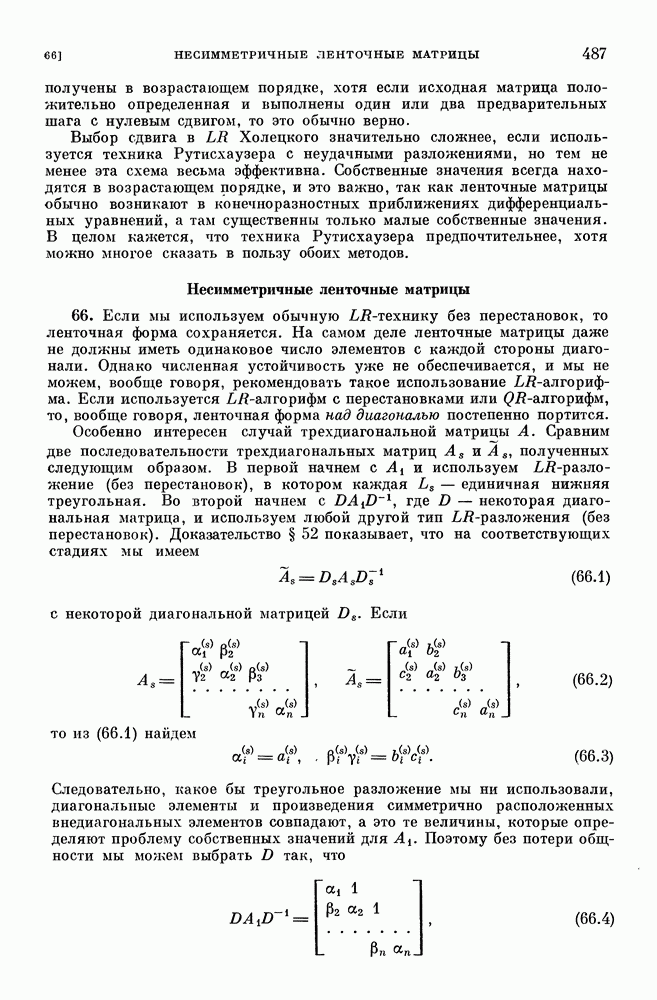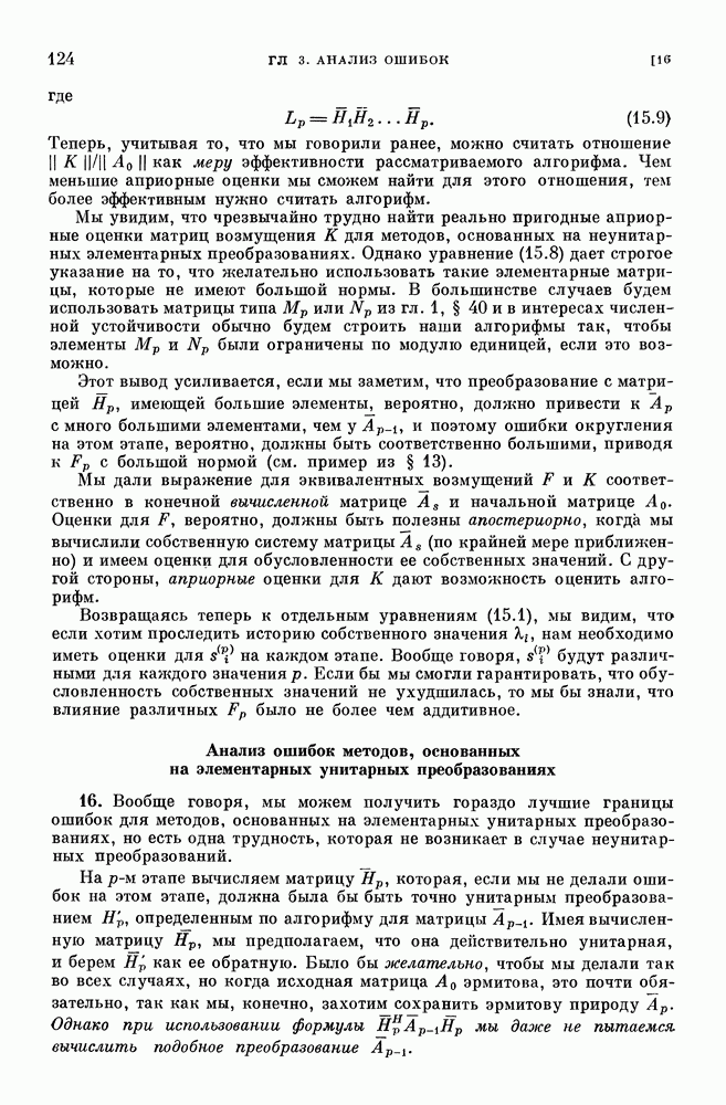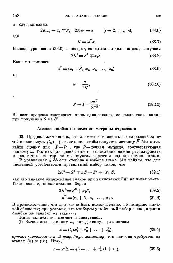 скалярные произведения накапливались точно с округлением после суммирования; это требовало лишь умножения величин с двойной точностью (62 двоичных разряда) на величины с одинарной точностью. Так как исходная А используется все время, мы можем полностью получать все преимущества от нулевых элементов, которые она может содержать. Уравнения