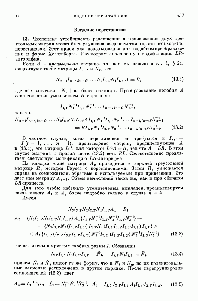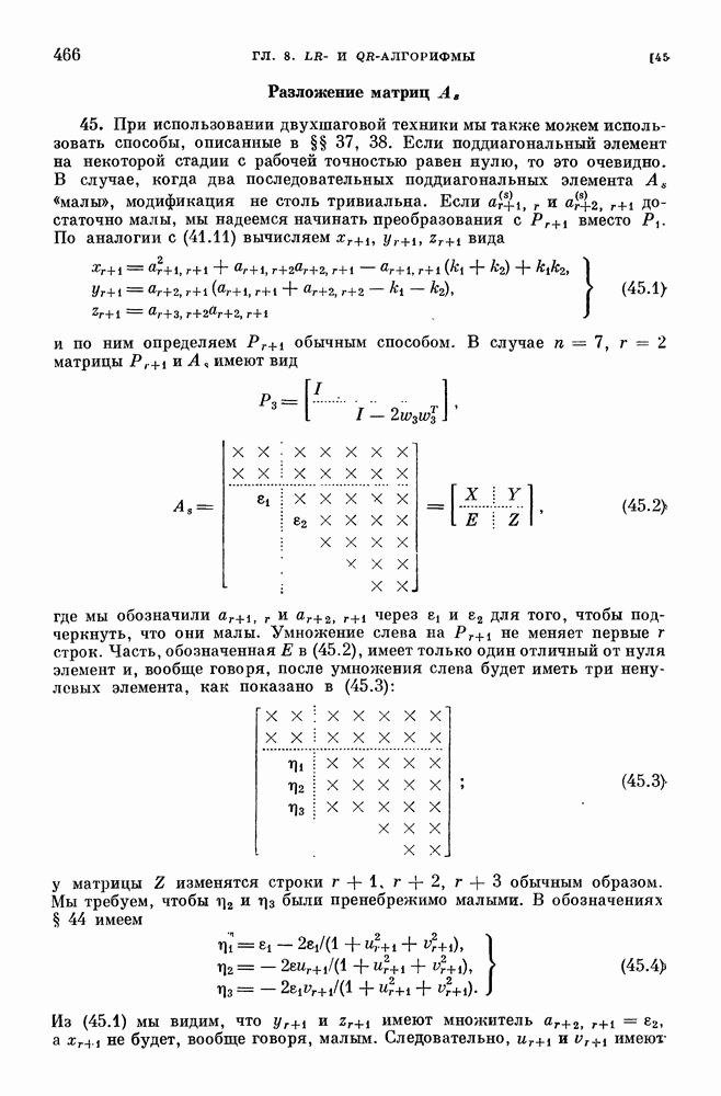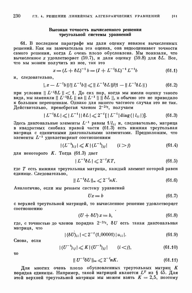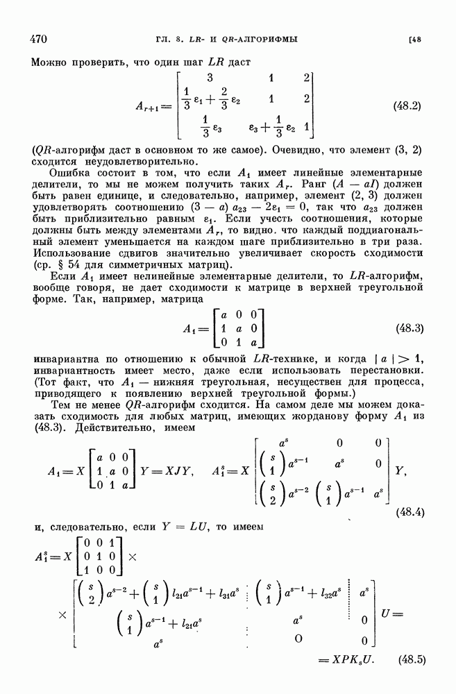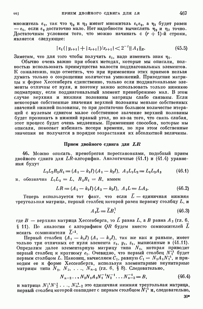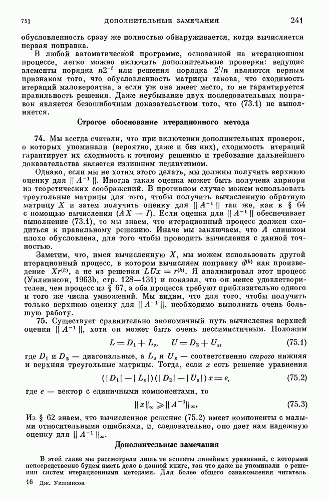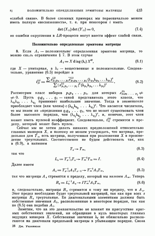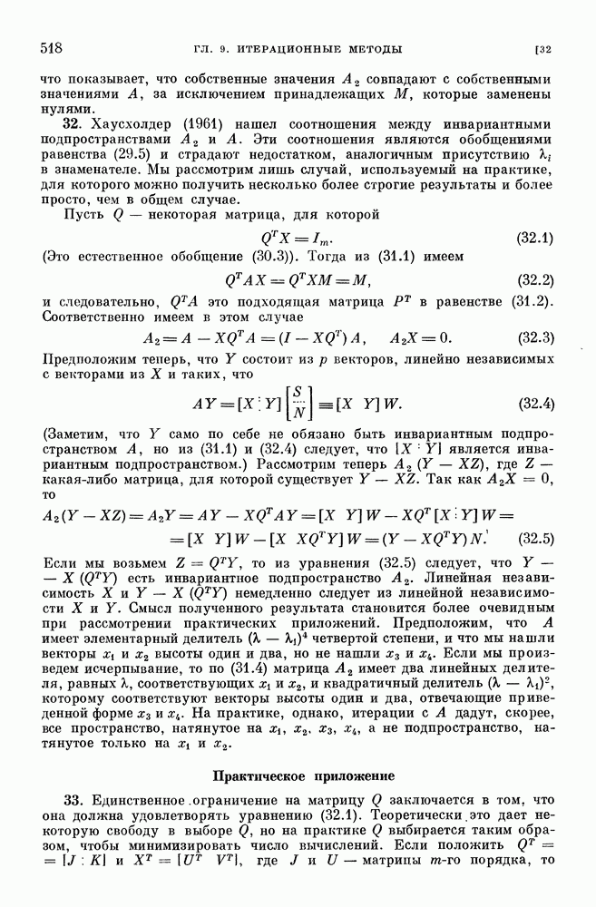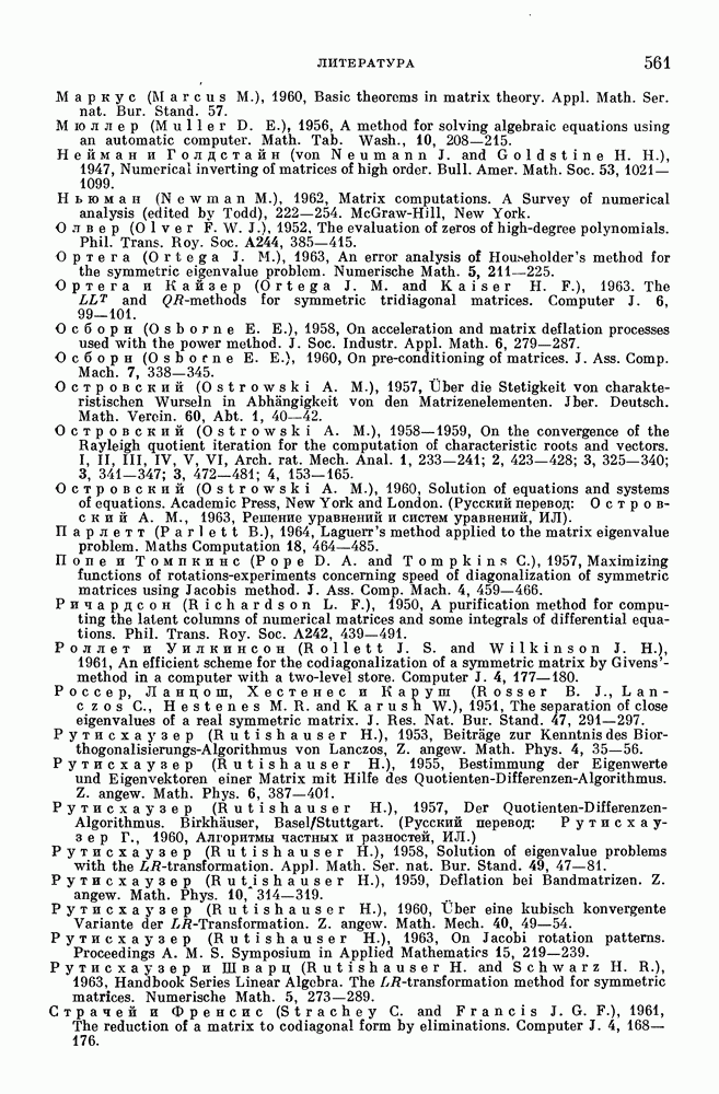 скалярные произведения накапливались точно с округлением после суммирования; это требовало лишь умножения величин с двойной точностью (62 двоичных разряда) на величины с одинарной точностью. Так как исходная А используется все время, мы можем полностью получать все преимущества от нулевых элементов, которые она может содержать. Уравнения