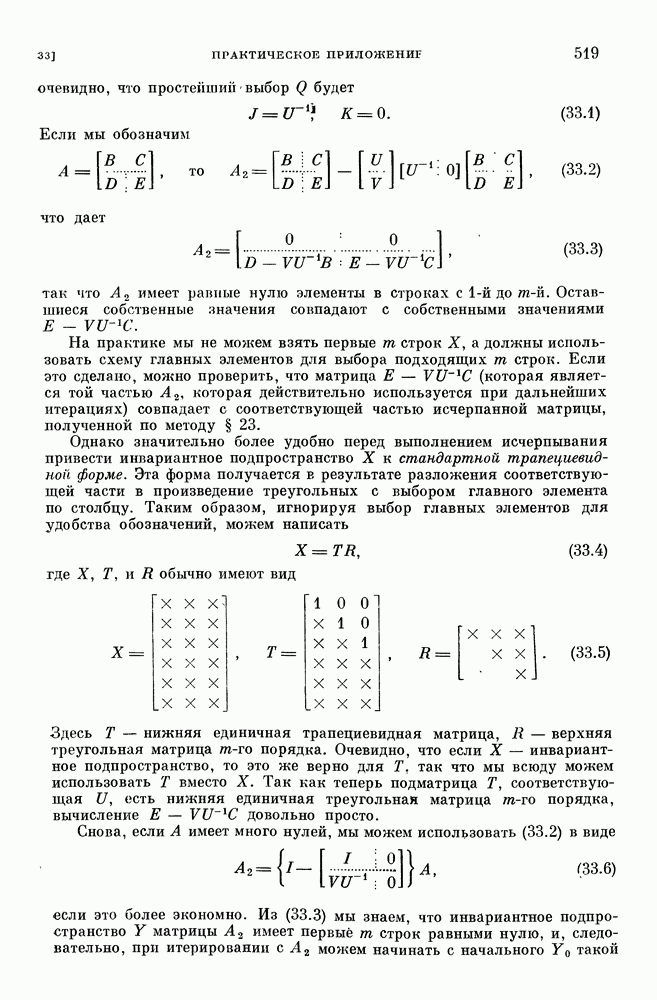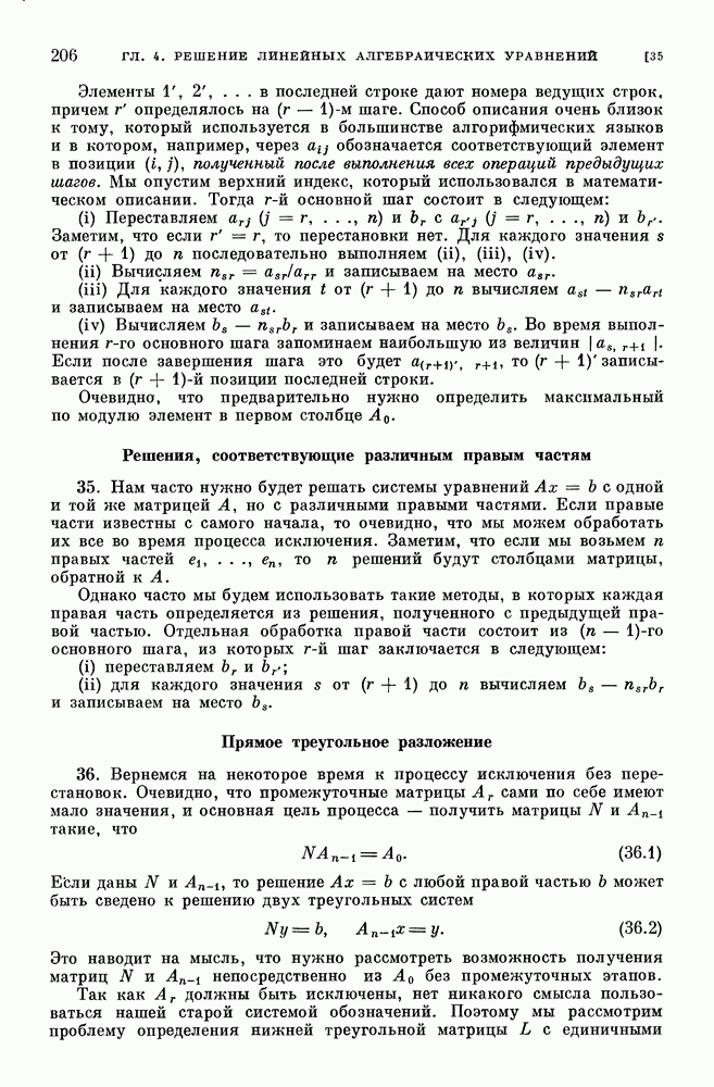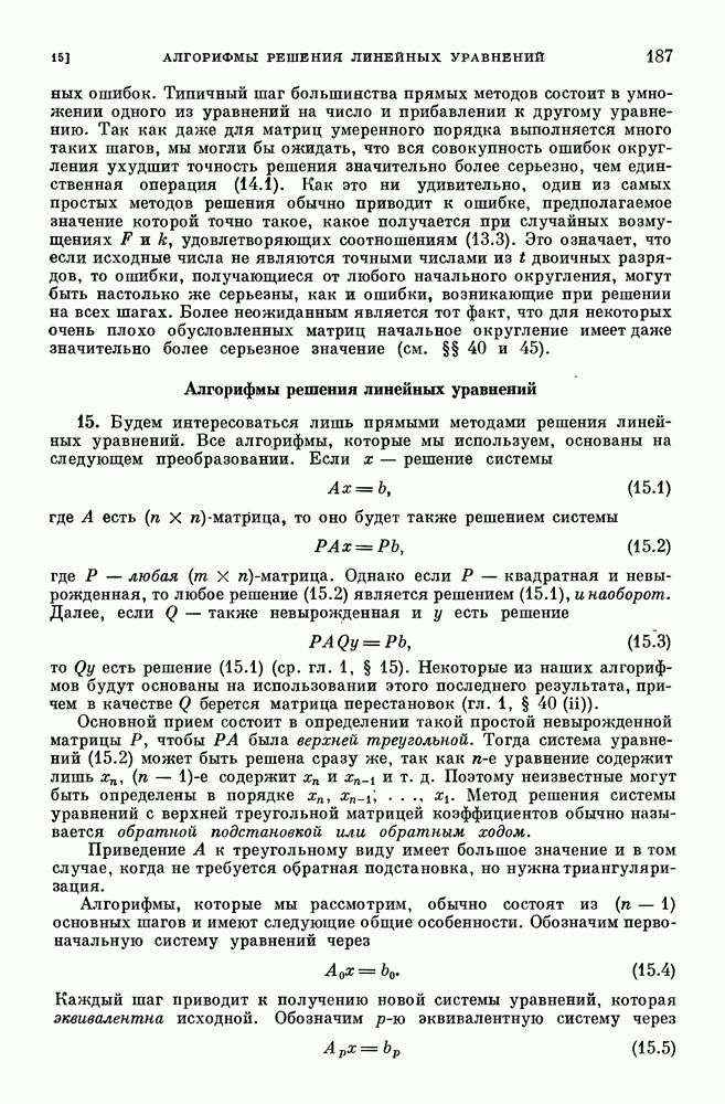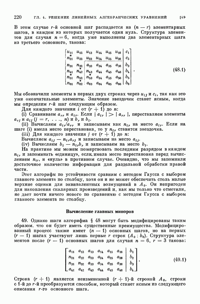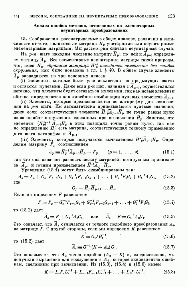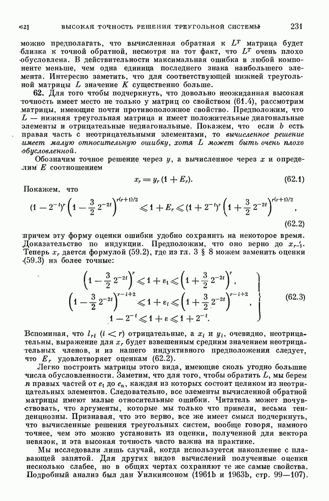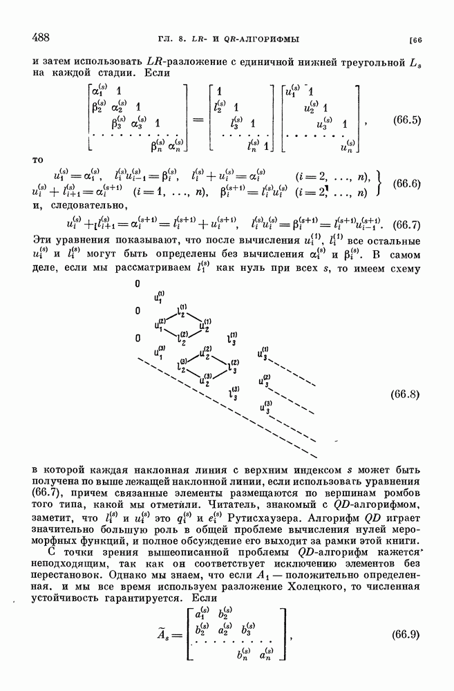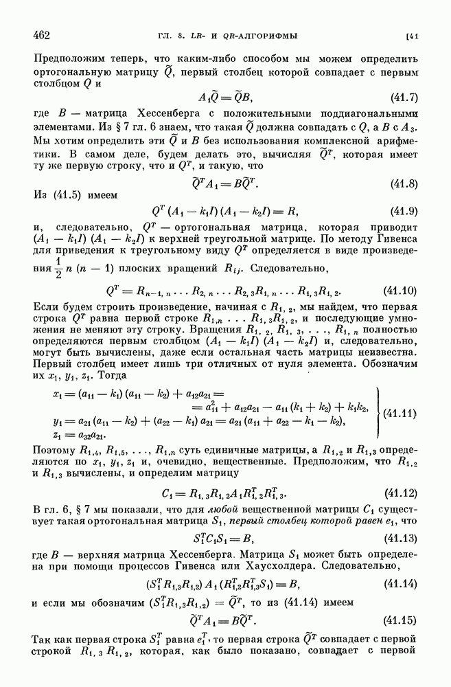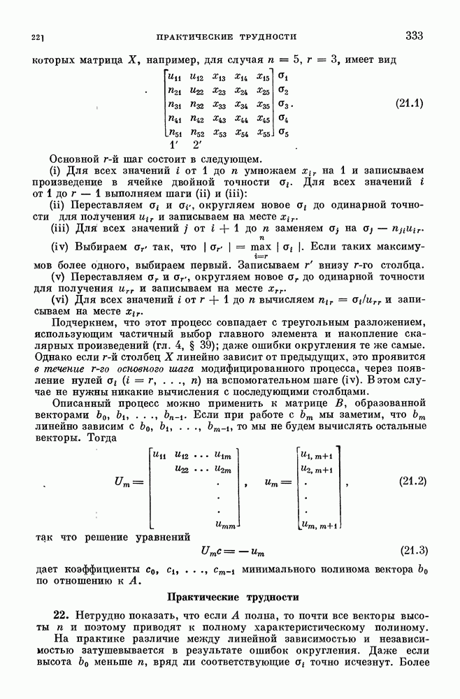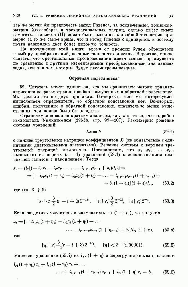 скалярные произведения накапливались точно с округлением после суммирования; это требовало лишь умножения величин с двойной точностью (62 двоичных разряда) на величины с одинарной точностью. Так как исходная А используется все время, мы можем полностью получать все преимущества от нулевых элементов, которые она может содержать. Уравнения