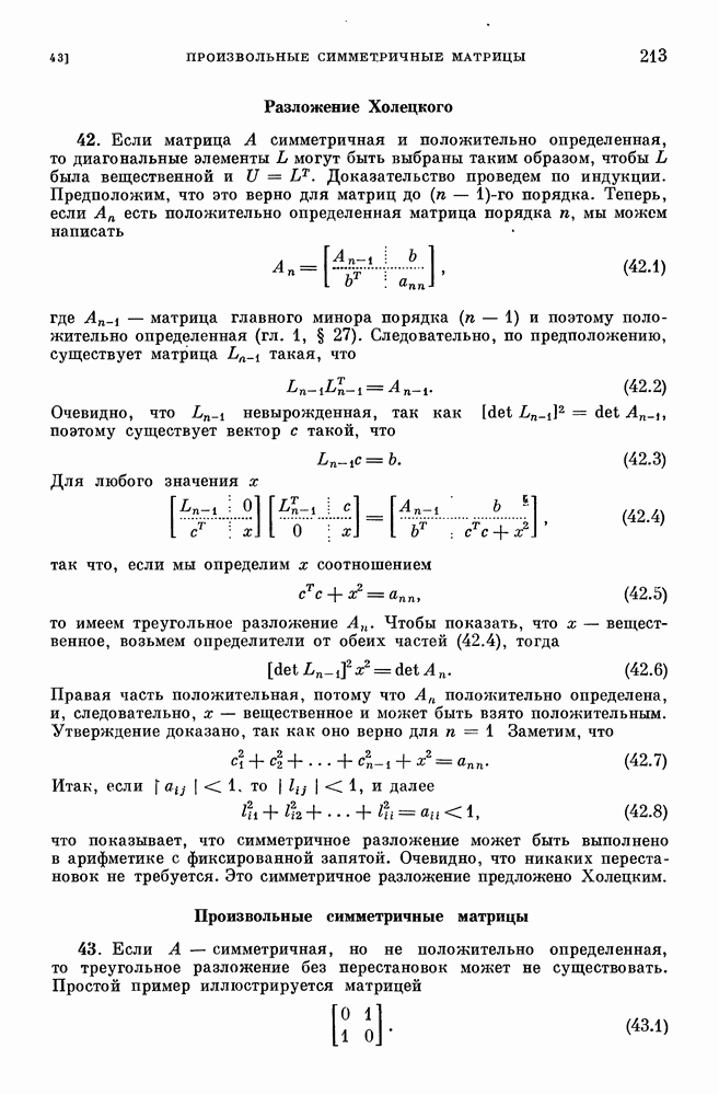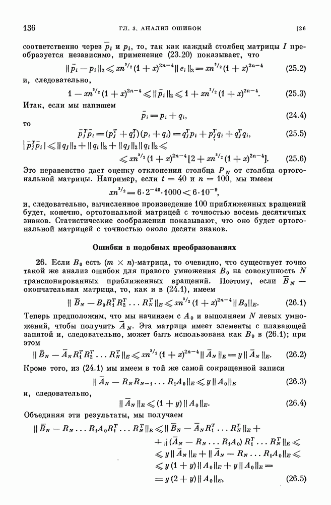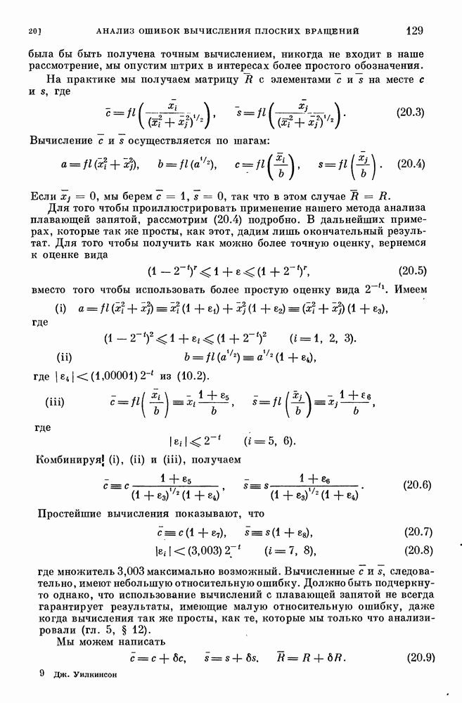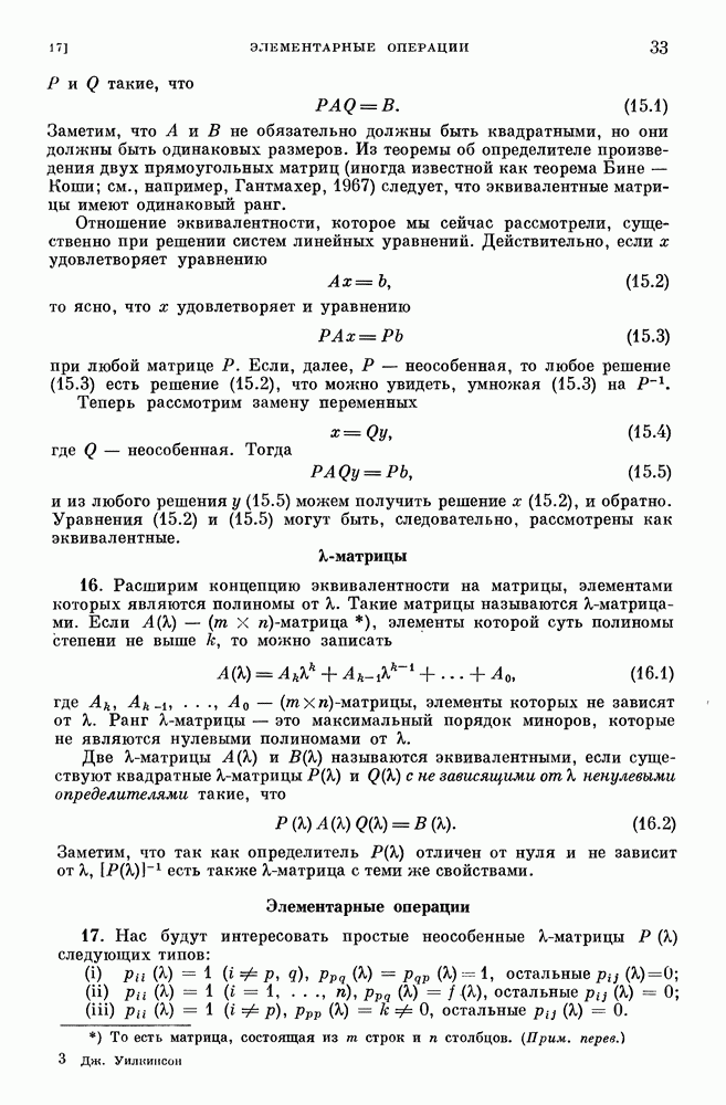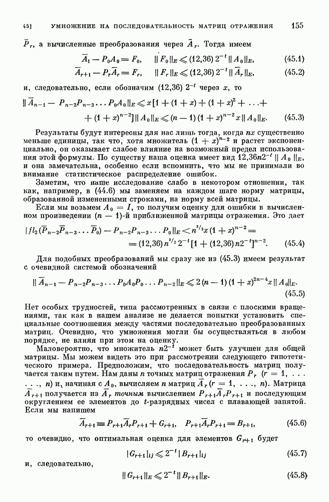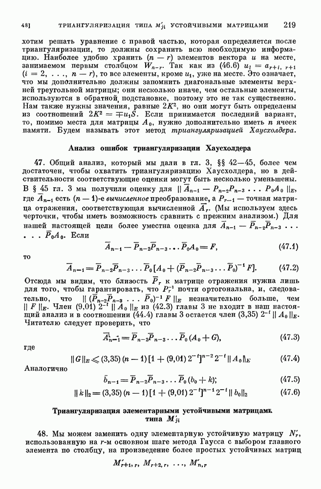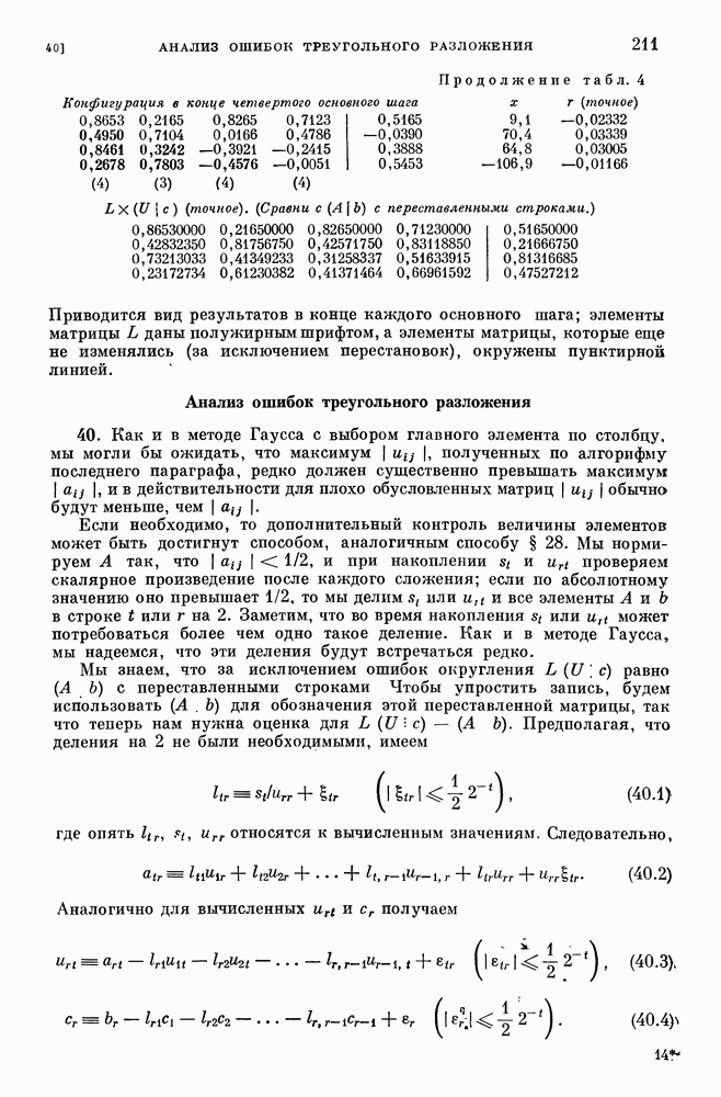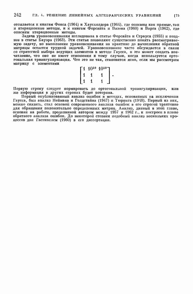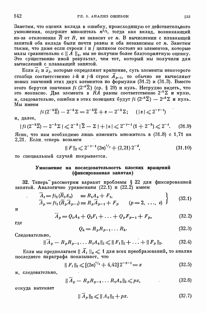 скалярные произведения накапливались точно с округлением после суммирования; это требовало лишь умножения величин с двойной точностью (62 двоичных разряда) на величины с одинарной точностью. Так как исходная А используется все время, мы можем полностью получать все преимущества от нулевых элементов, которые она может содержать. Уравнения