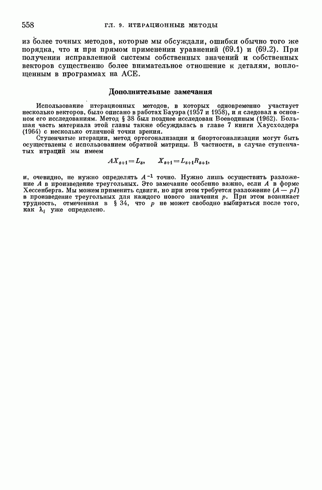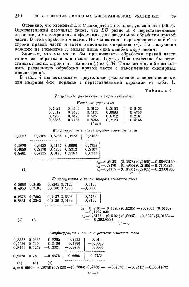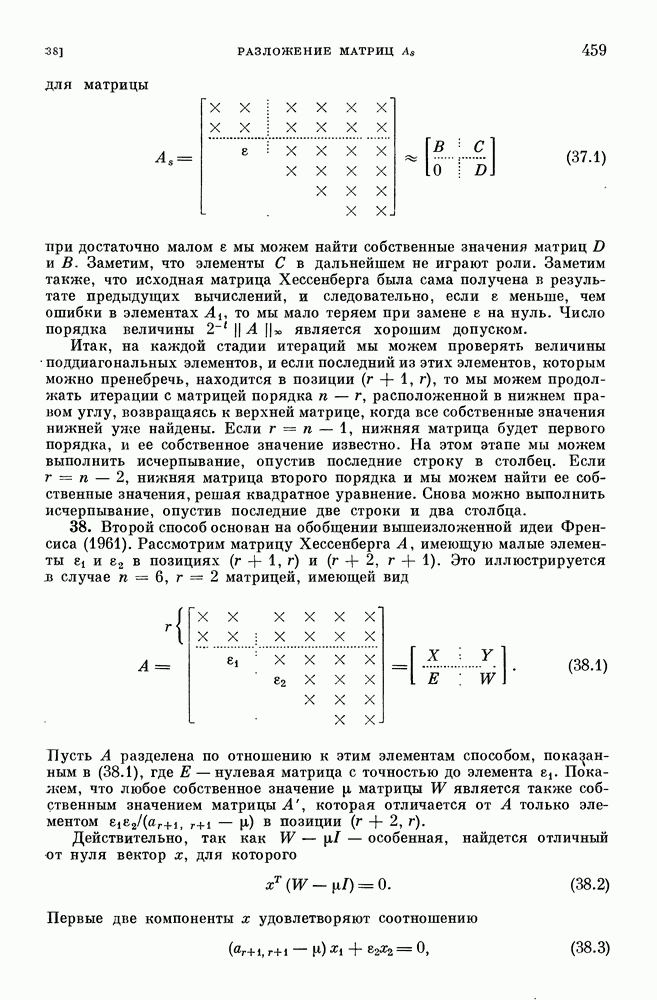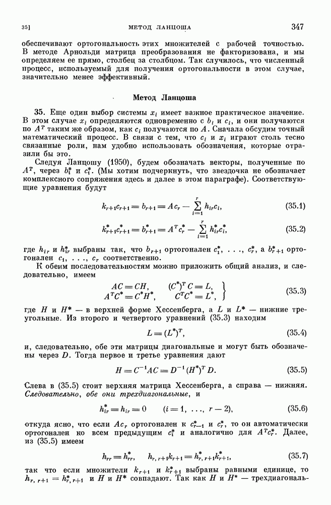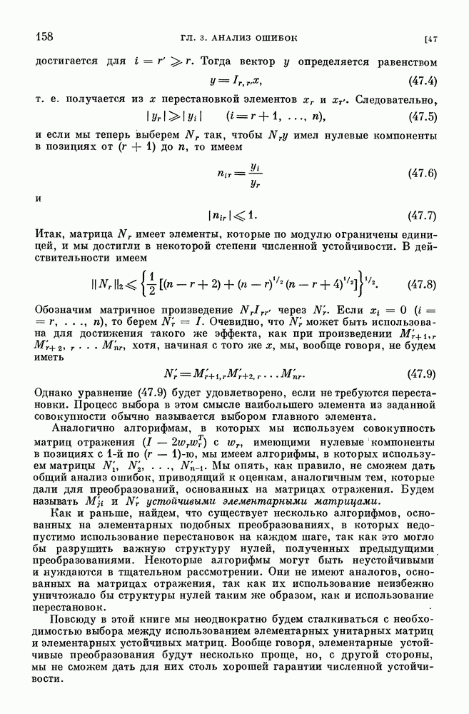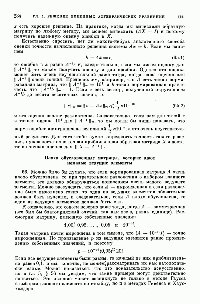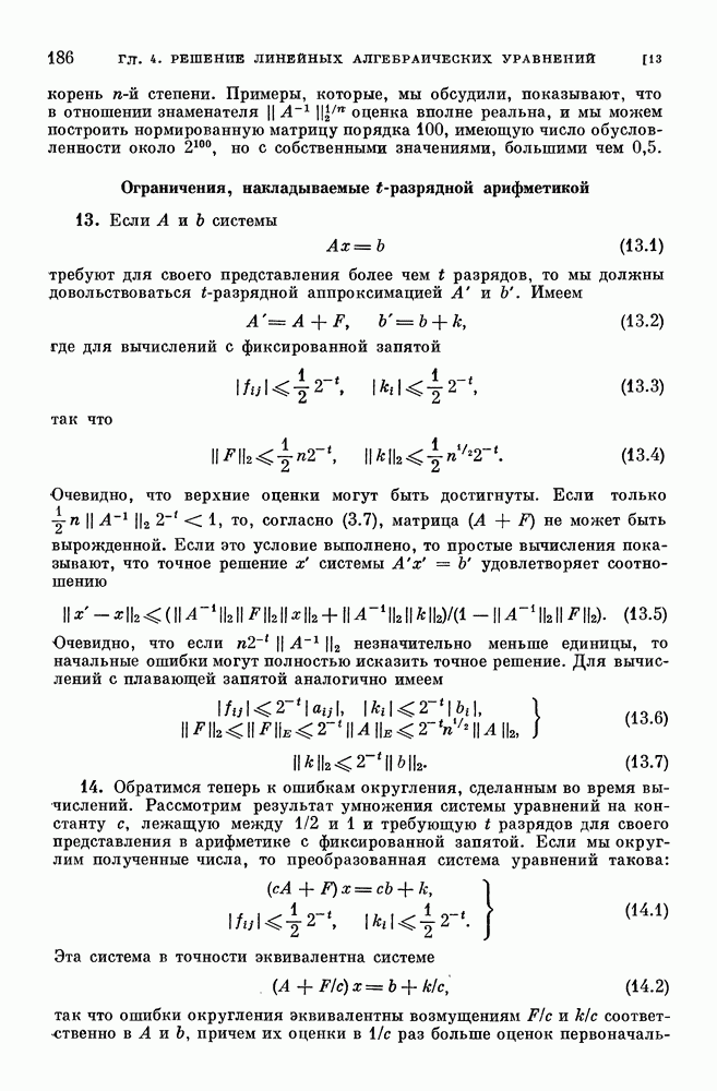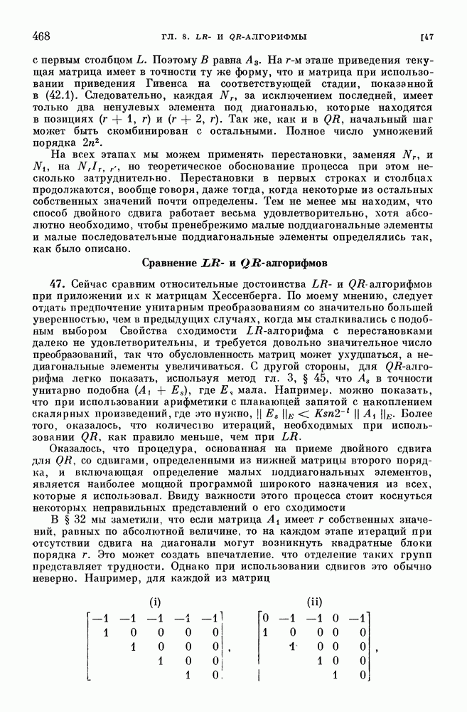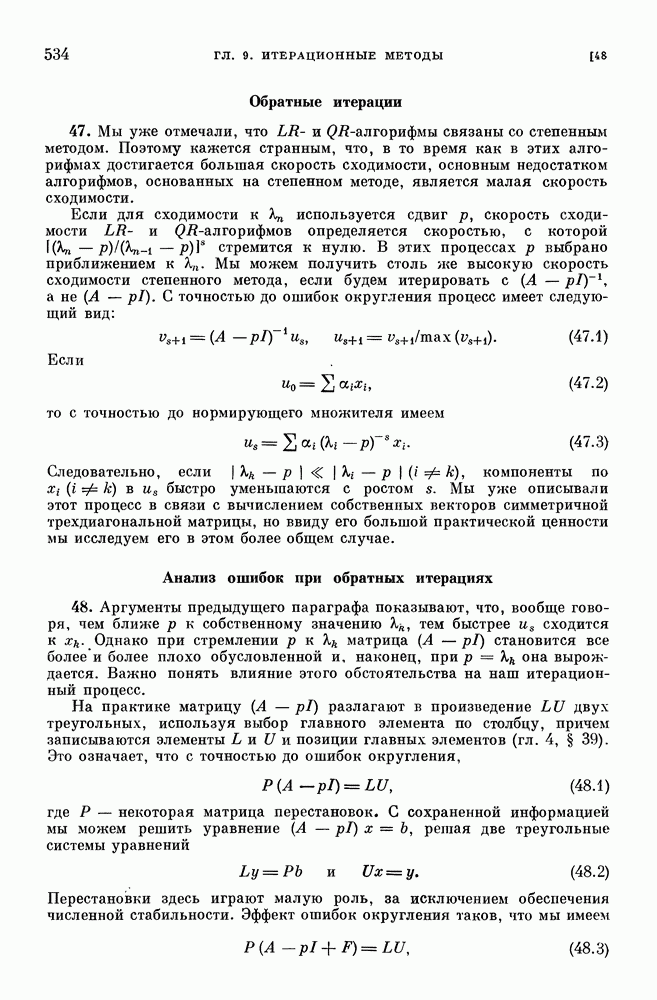 скалярные произведения накапливались точно с округлением после суммирования; это требовало лишь умножения величин с двойной точностью (62 двоичных разряда) на величины с одинарной точностью. Так как исходная А используется все время, мы можем полностью получать все преимущества от нулевых элементов, которые она может содержать. Уравнения
