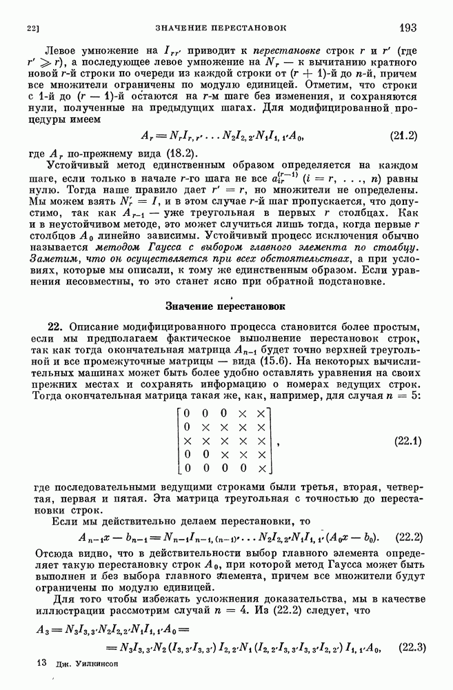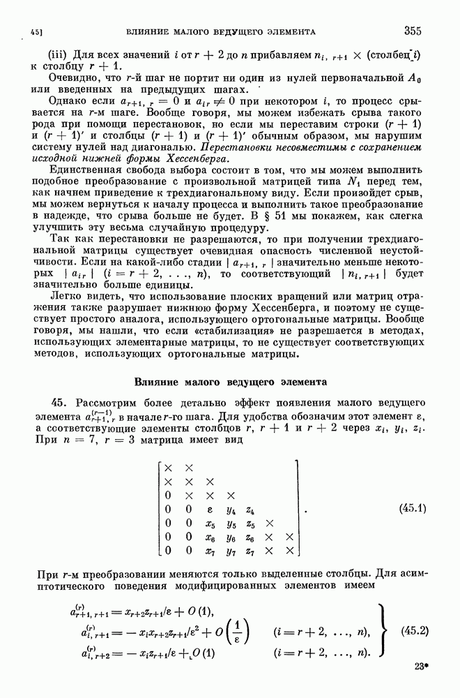 Предпринимались попытки выявления, как в § 21, линейной зависимости на самой ранней стадии; при этом заменялись нулями все элементы, меньшие по модулю некоторого предписанного числа. (В этом случае удобно нормировать