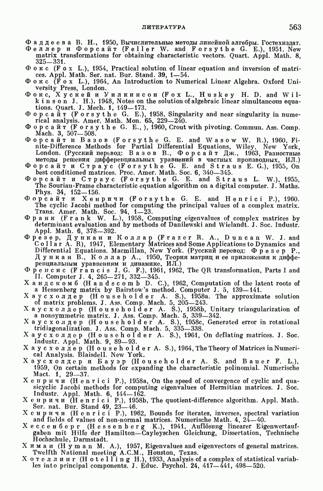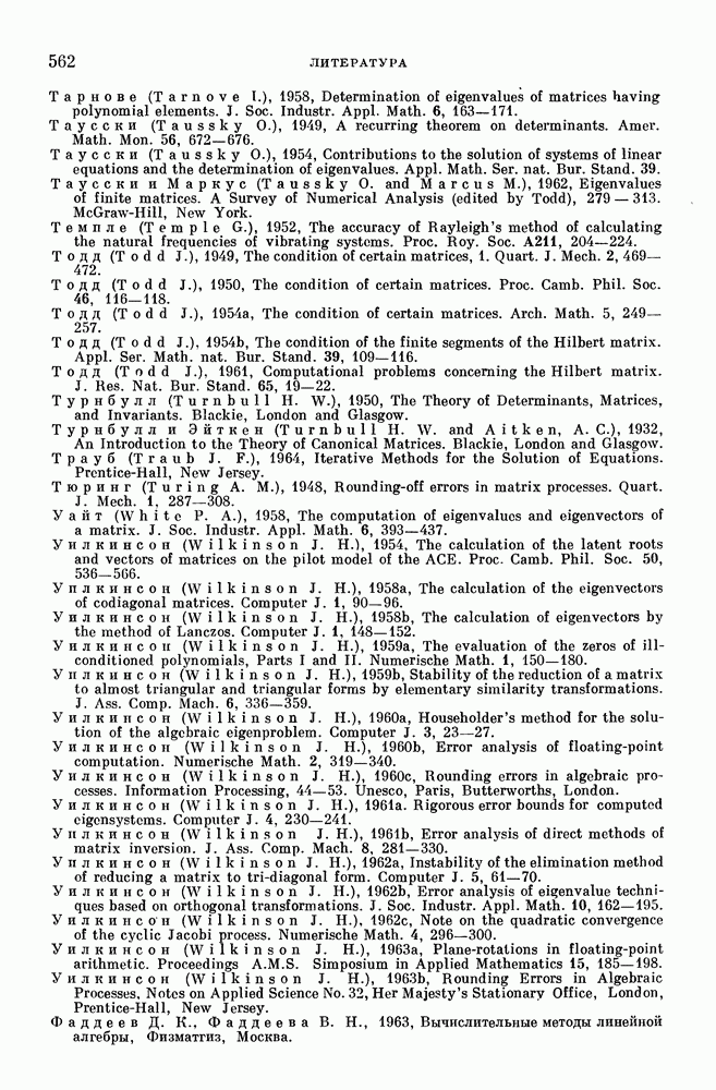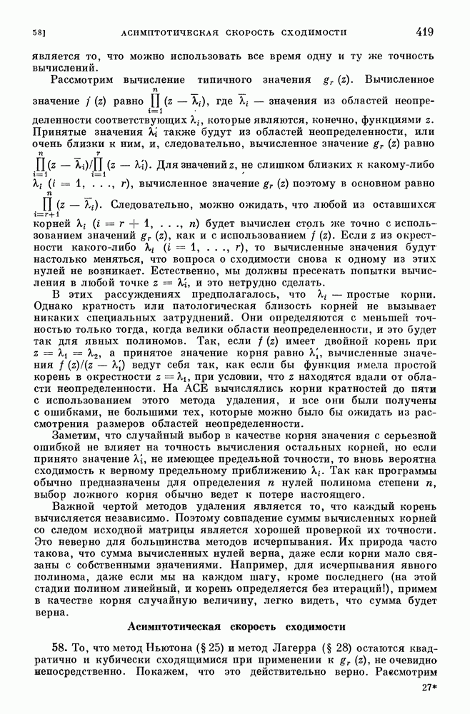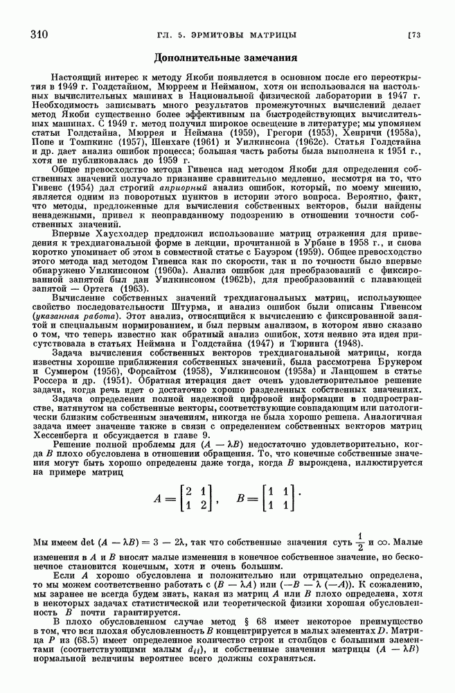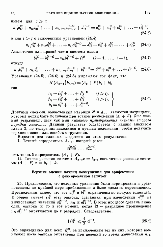 25. Результаты, описанные в нескольких предыдущих параграфах, были подтверждены на практике, причем использовалась программа, написанная для DEUCE. С целью компенсации ожидавшейся плохой обусловленности матрицы В в процессе вычислений использовалась арифметика с двойной точностью и фиксированной запятой.