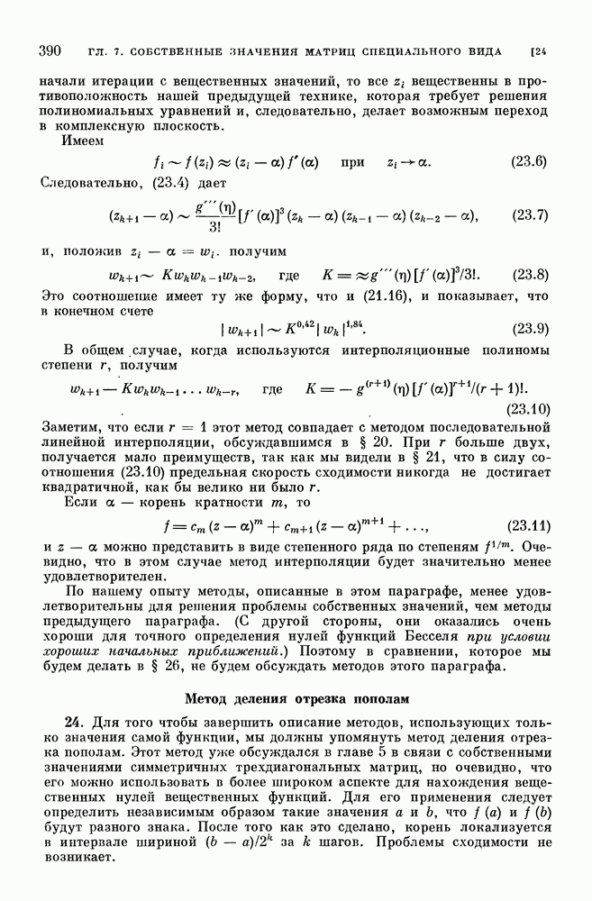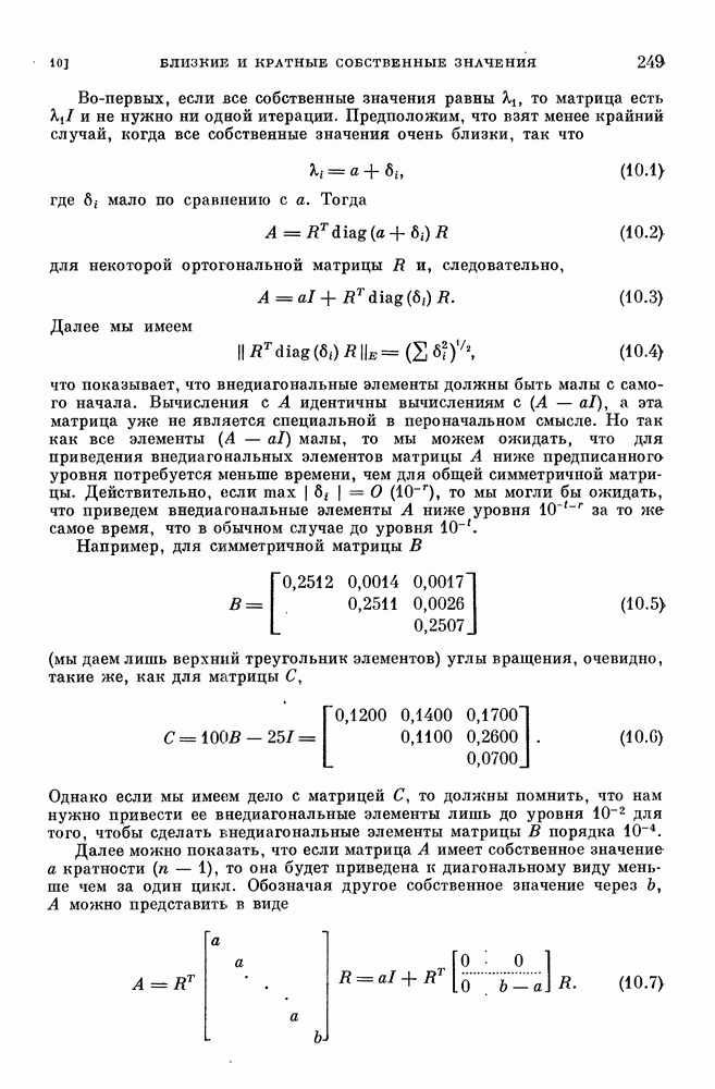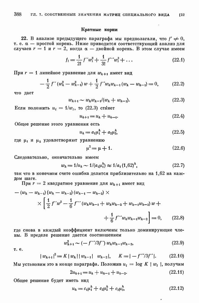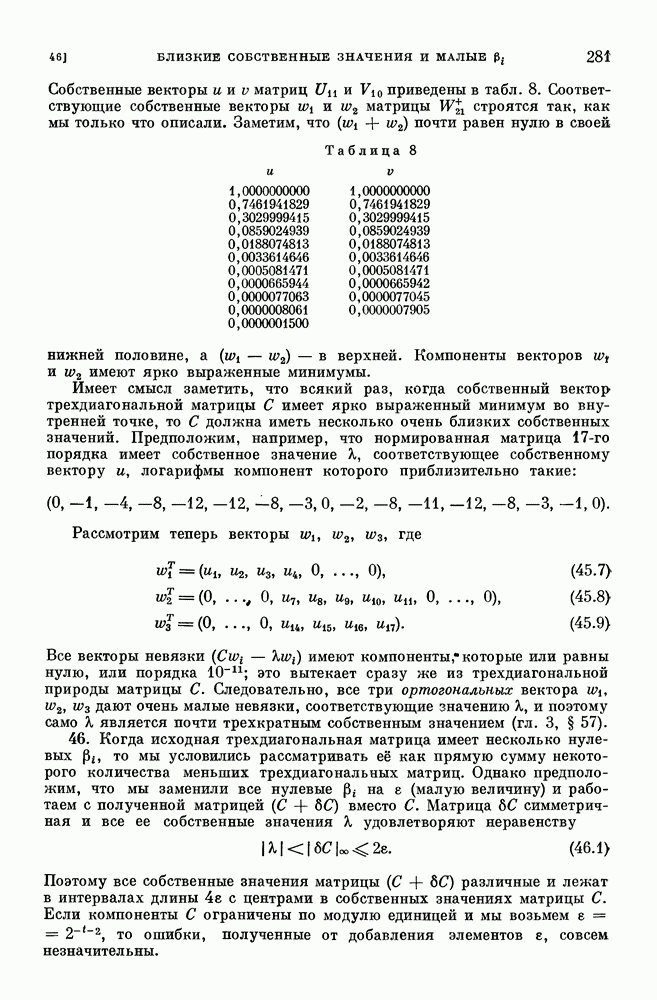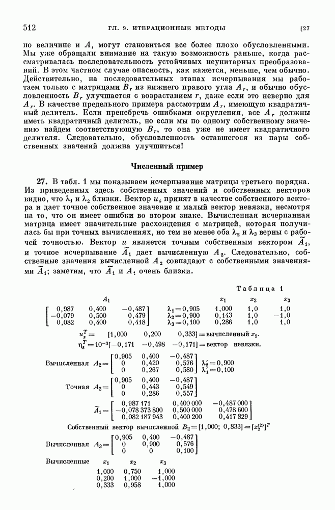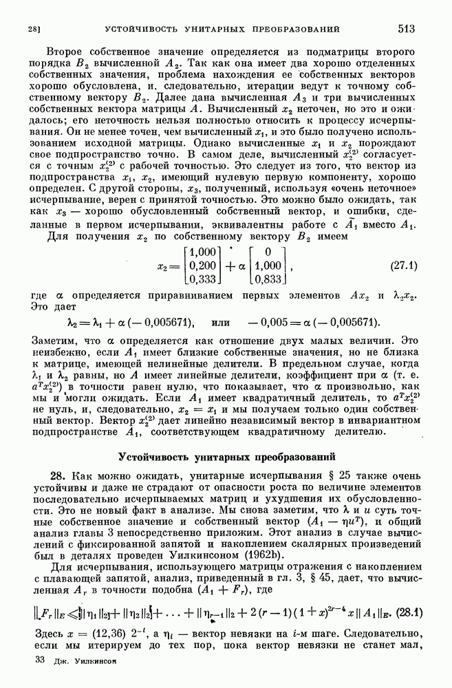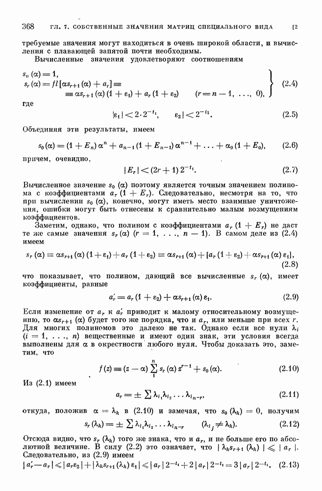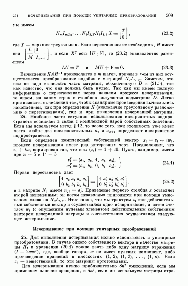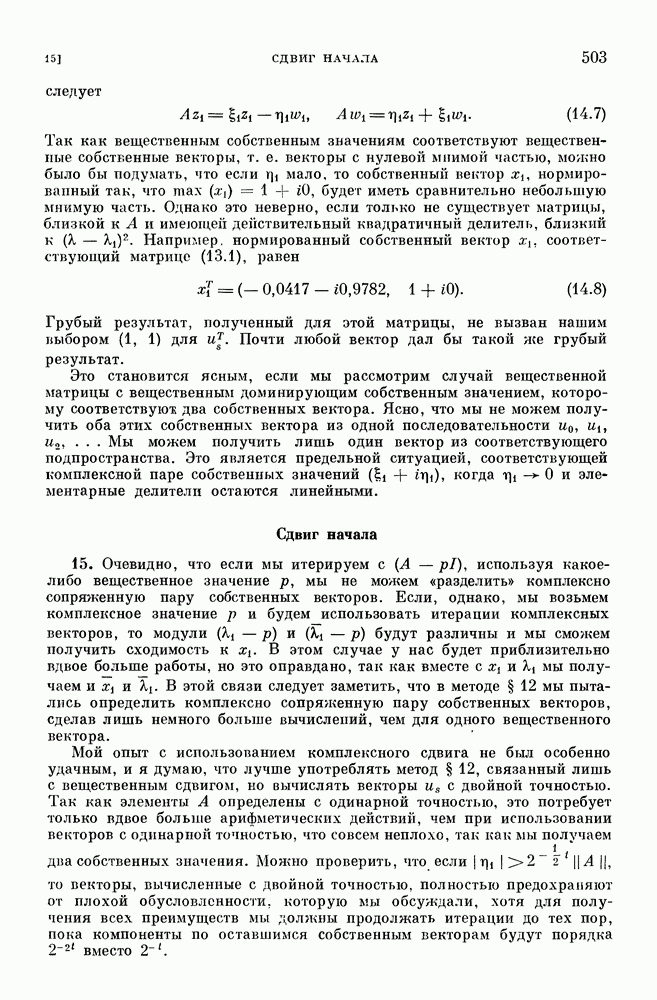 . Используя начальный вектор (23.7), мы получили наиболее точные коэффициенты с 15 правильными двоичными знаками, а остальные с 11. Все выведенные уравнения совершенно бесполезны для определения собственных значений (см. гл. 7, § 6.)