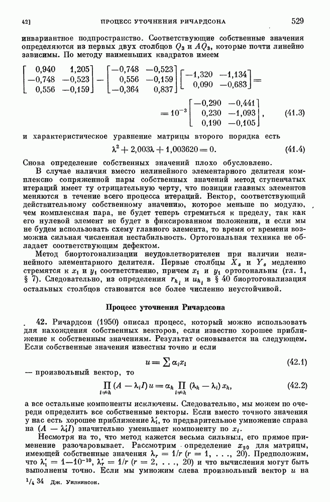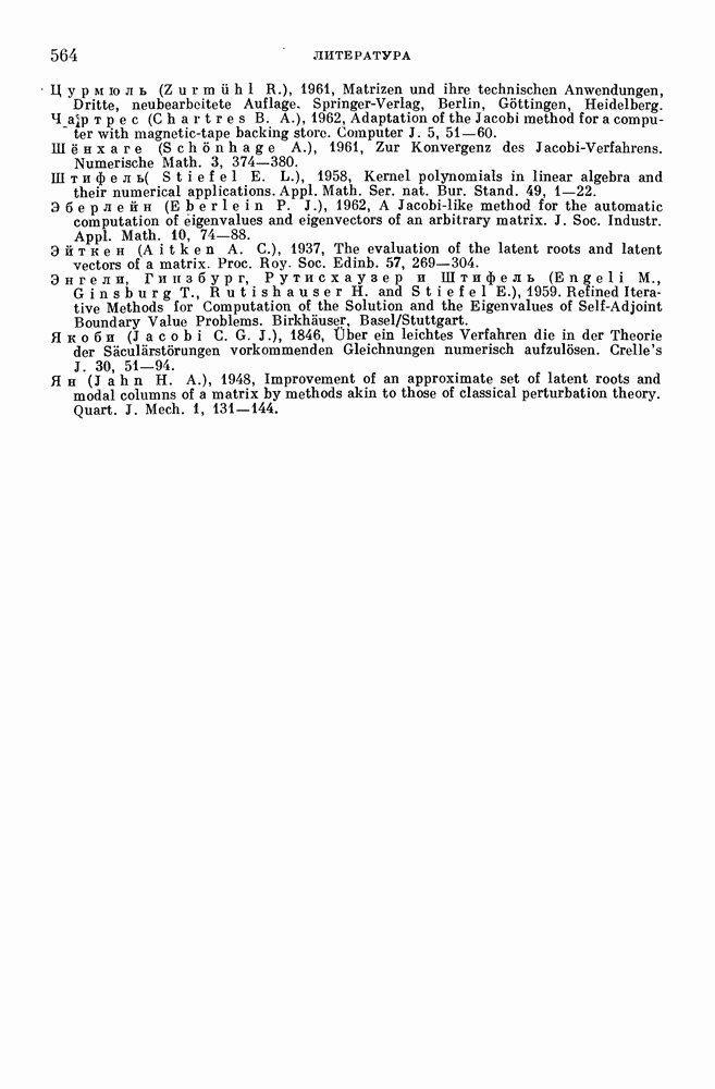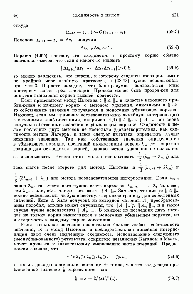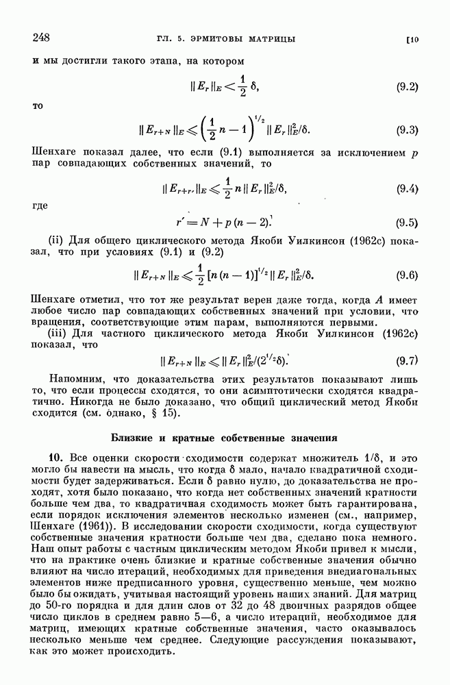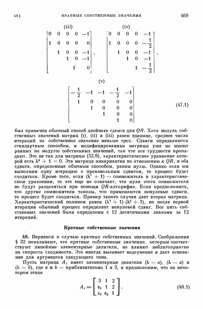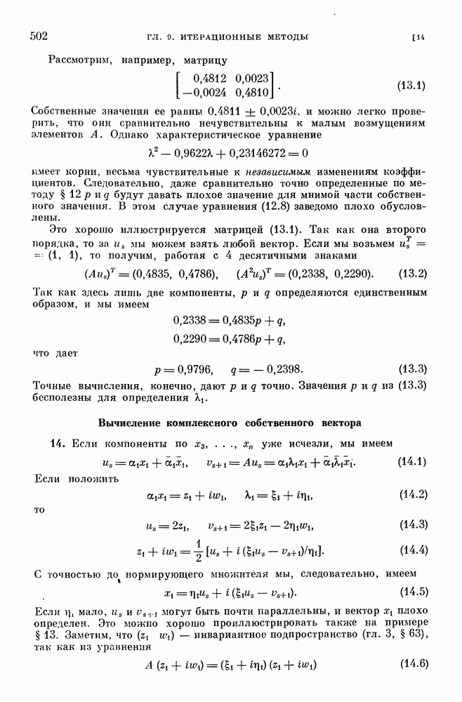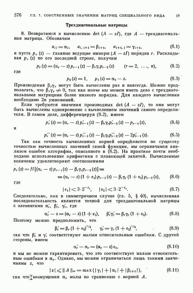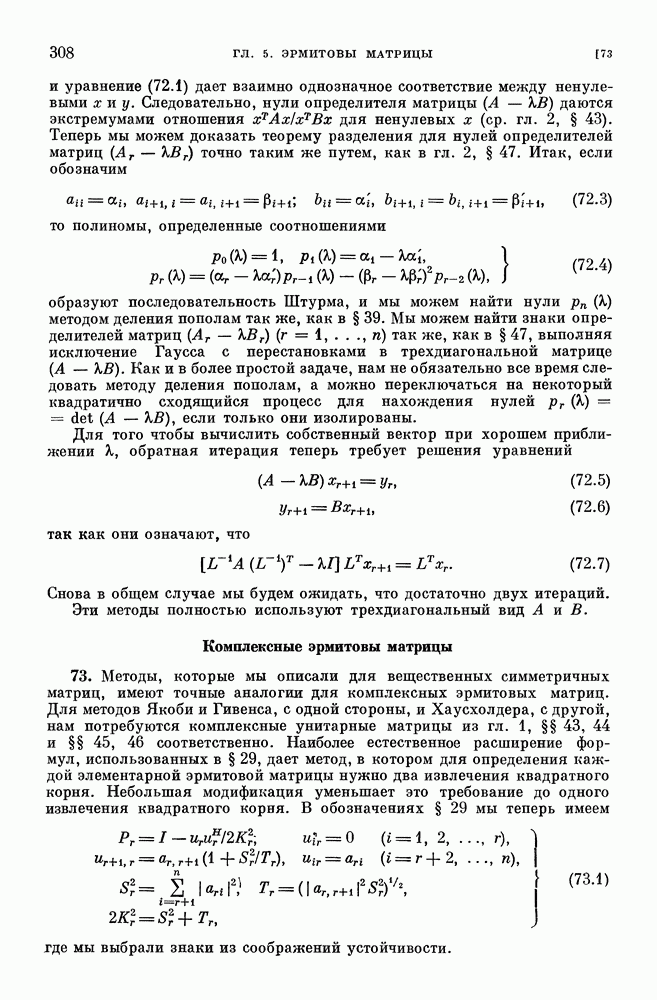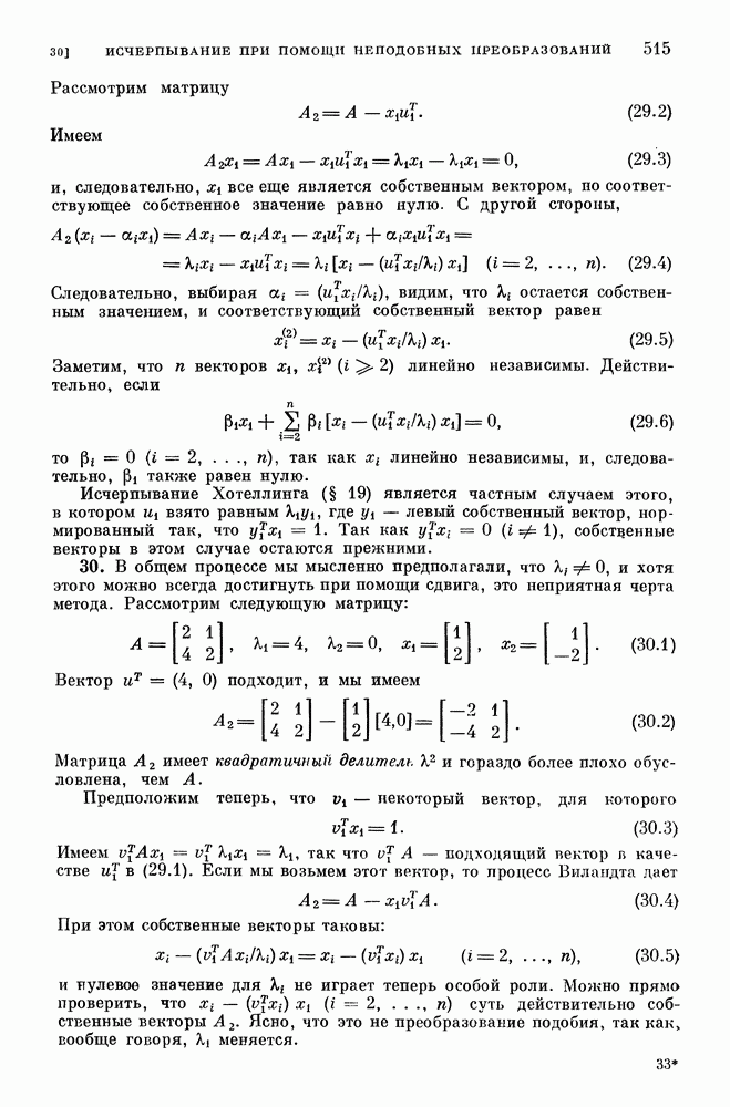. Используя начальный вектор (23.7), мы получили наиболее точные коэффициенты с 15 правильными двоичными знаками, а остальные с 11. Все выведенные уравнения совершенно бесполезны для определения собственных значений (см. гл. 7, § 6.)