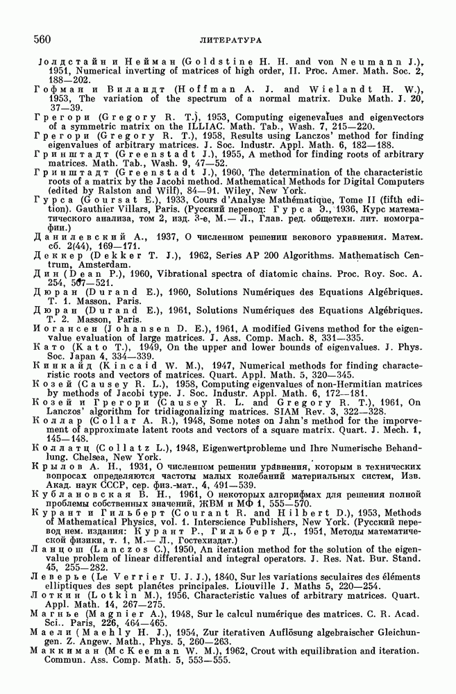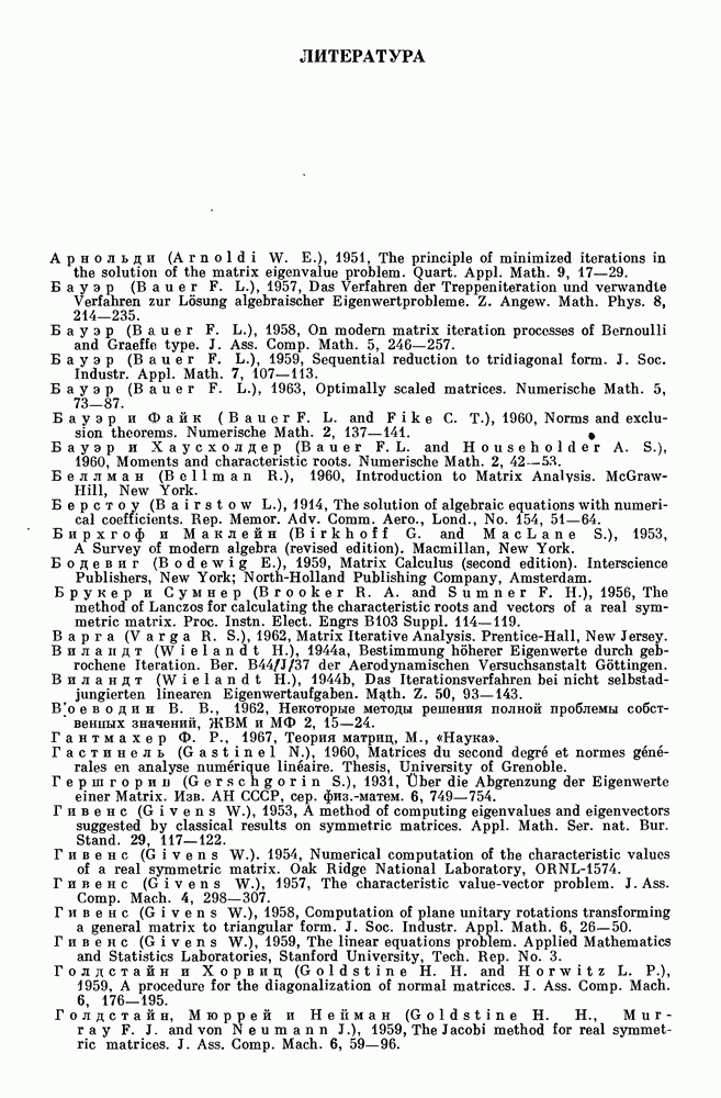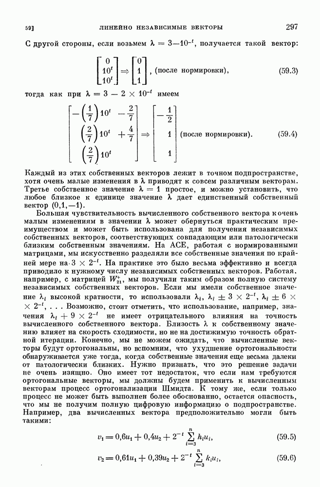 даже если все время используется плавающая запятая с двойной точностью.) Для того чтобы вызвать наступление линейной зависимости, я так же пытался несколько раз предварительно умножать исходный вектор на А, чтобы начальный вектор имел малые составляющие по собственным векторам, соответствующим меньшим собственным значениям.