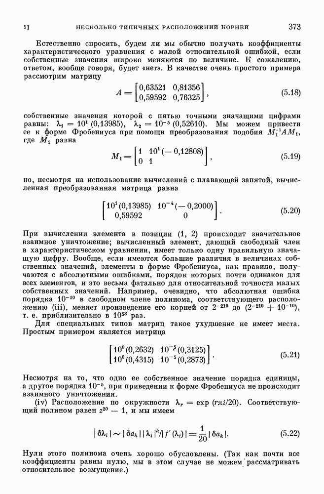 характеристическое уравнение имело 13 правильных двоичных знаков в наиболее точных коэффициентах и 10 в остальных. Мы могли ожидать такую неточность, так как число обусловленности С порядка