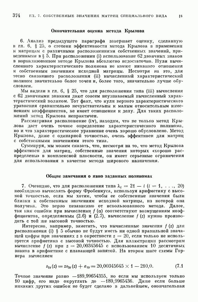 коэффициенты вычисленного характеристического полинома имели по крайней мере 30 правильных двоичных знаков, причем некоторые коэффициенты и значительно больше. Это эквивалентно определению собственных значений приблизительно с 20 двоичными знаками.