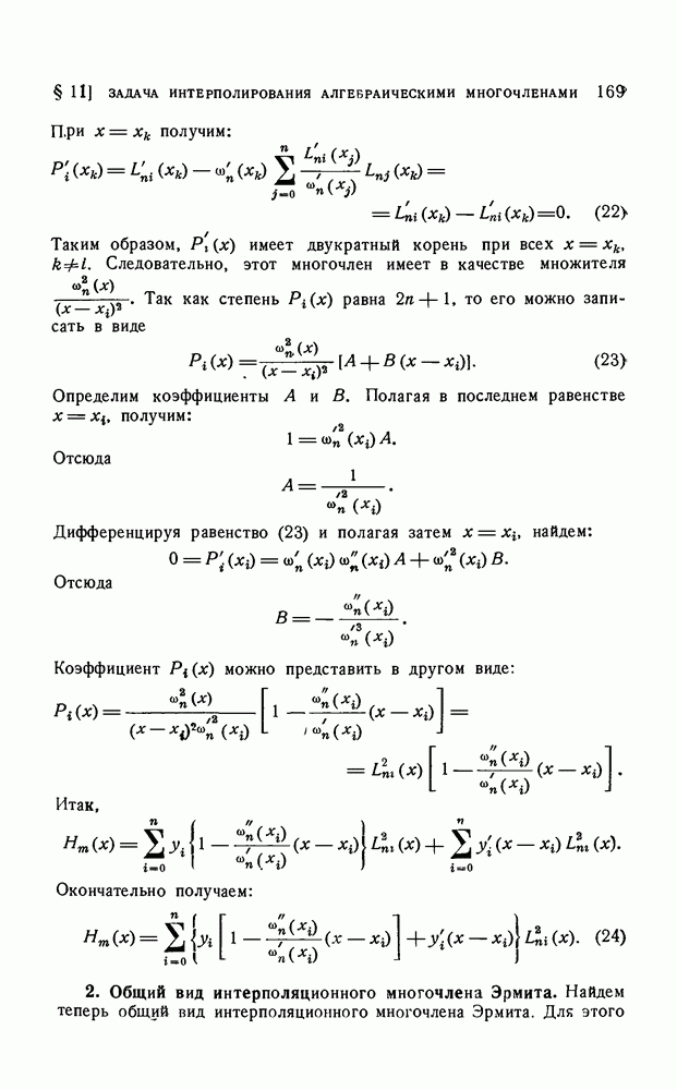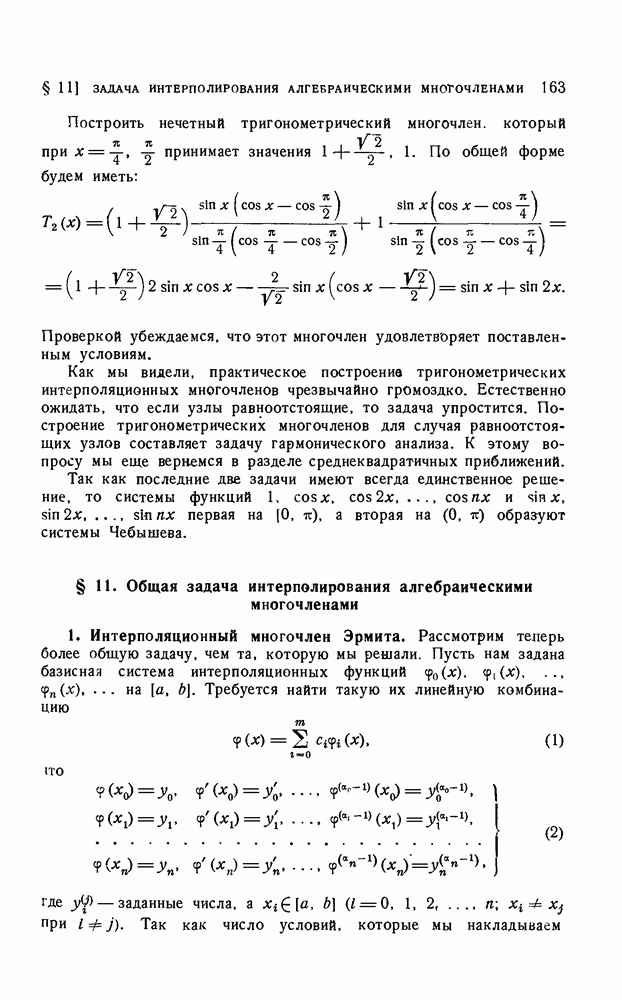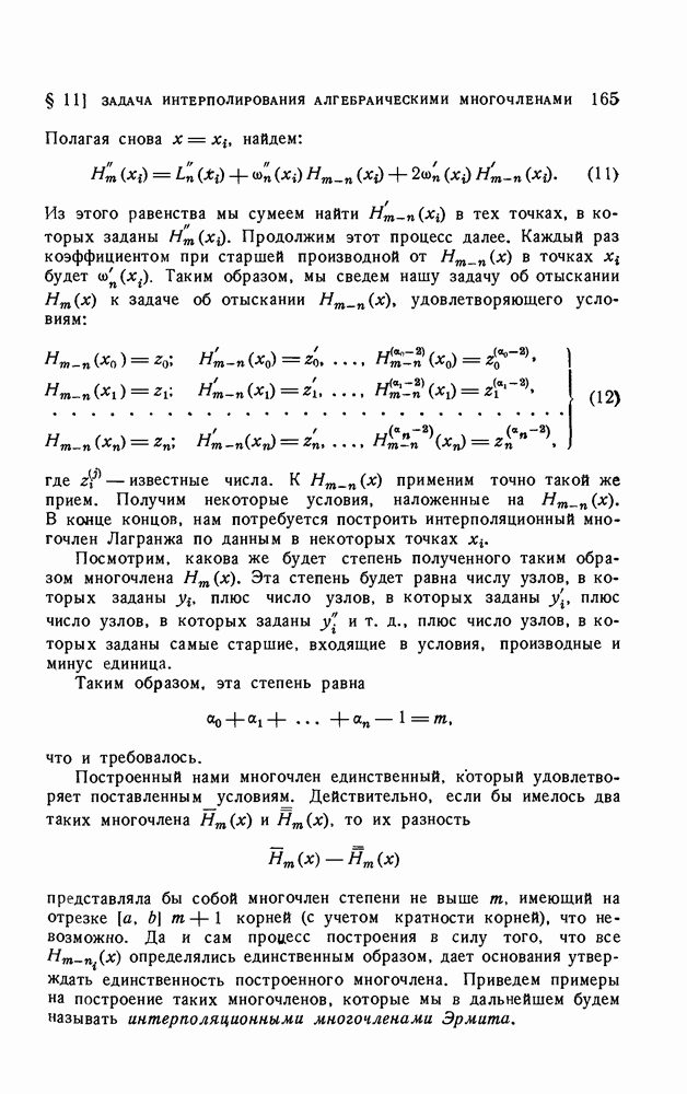 § 11. Общая задача интерполирования алгебраическими многочленами
