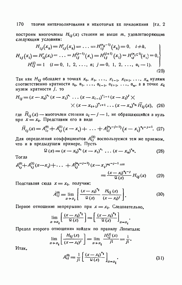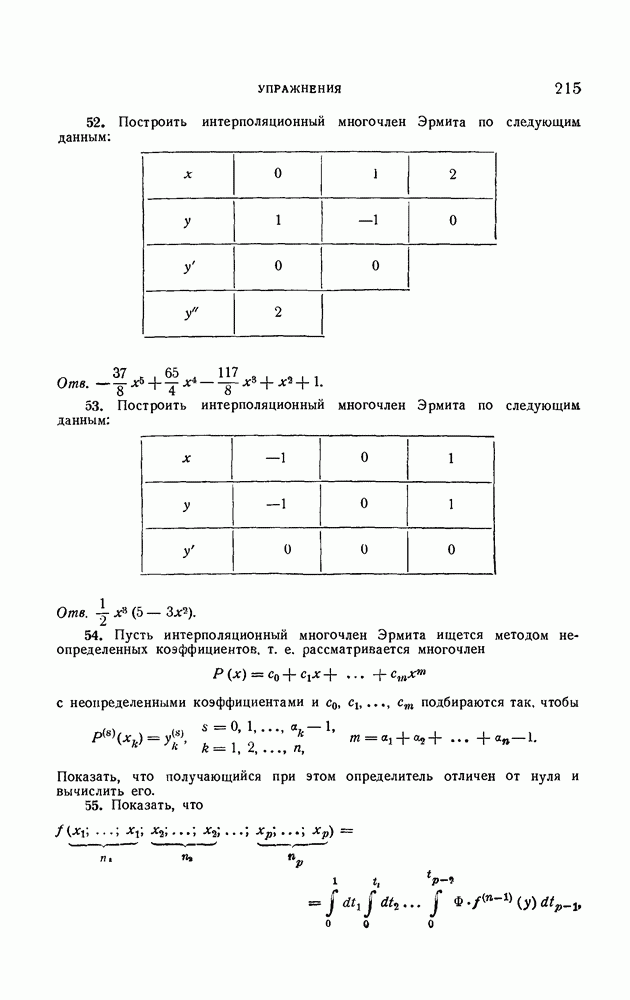 определялись единственным образом, дает основания утверждать единственность построенного многочлена. Приведем примеры на построение таких многочленов, которые мы в дальнейшем будем называть интерполяционными многочленами Эрмита.