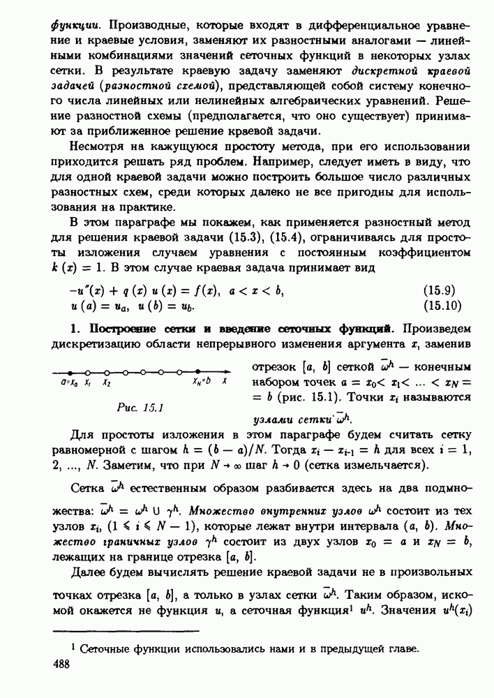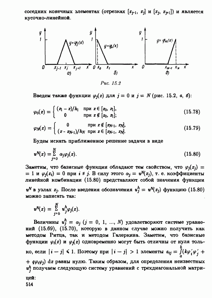 График такой базисной функции ("шапочки") изображен на рис. 15.2. Подчеркнем, что функция соседних конечных элементах (отрезках