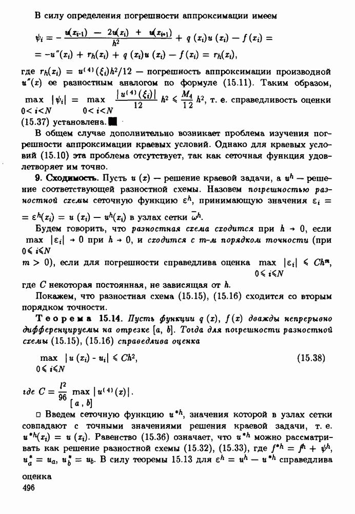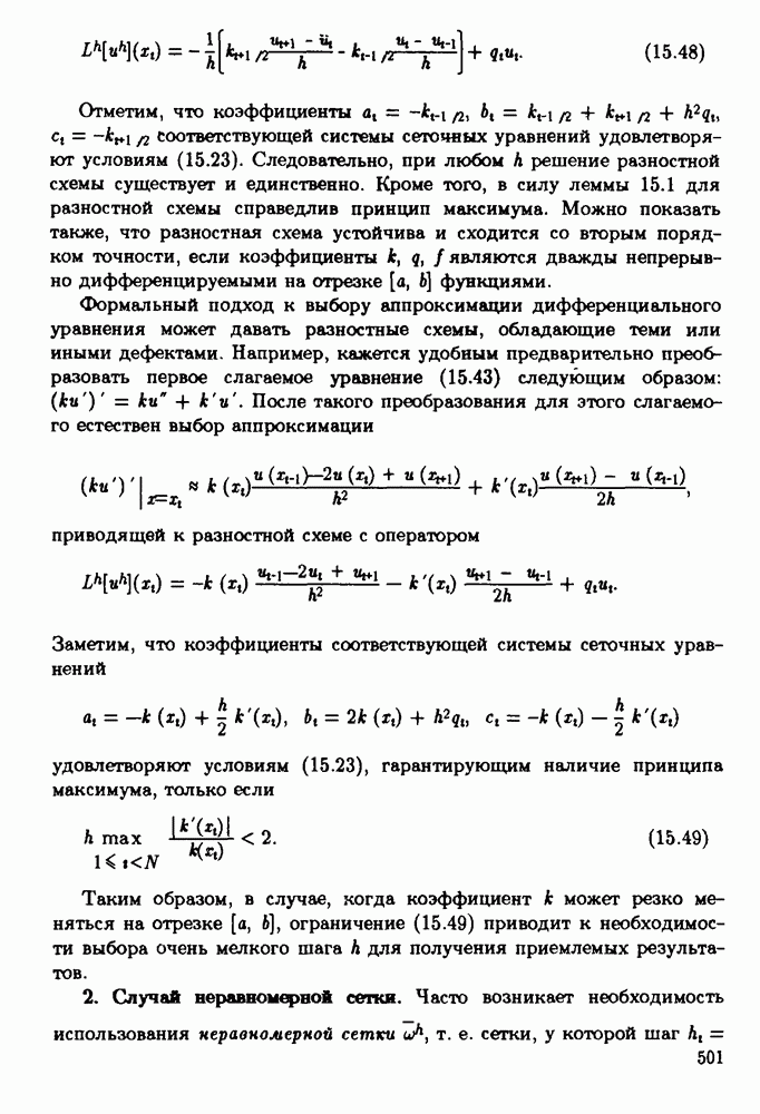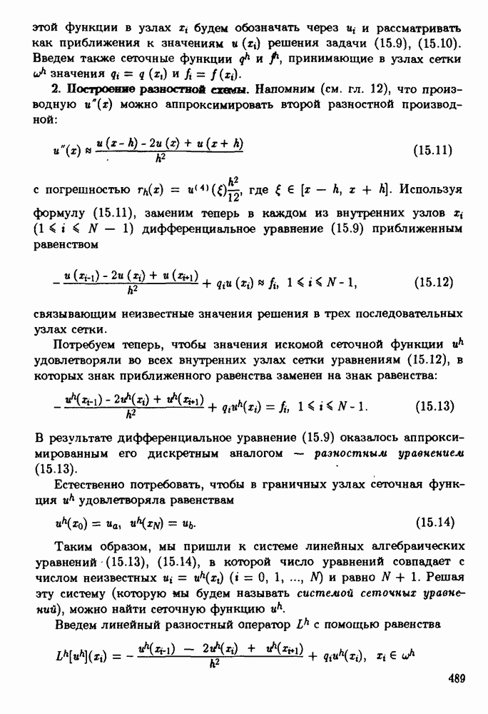 В такой форме записи она действительно оказывается похожа на разностную схему (15.55), (15.56). Замечание. При построении системы уравнений метода конечных элементов, как правило, возникает необходимость вычисления некоторых интегралов. Для проекционно-разностной схемы (15.87), (15.88) в случае, когда коэффициенты