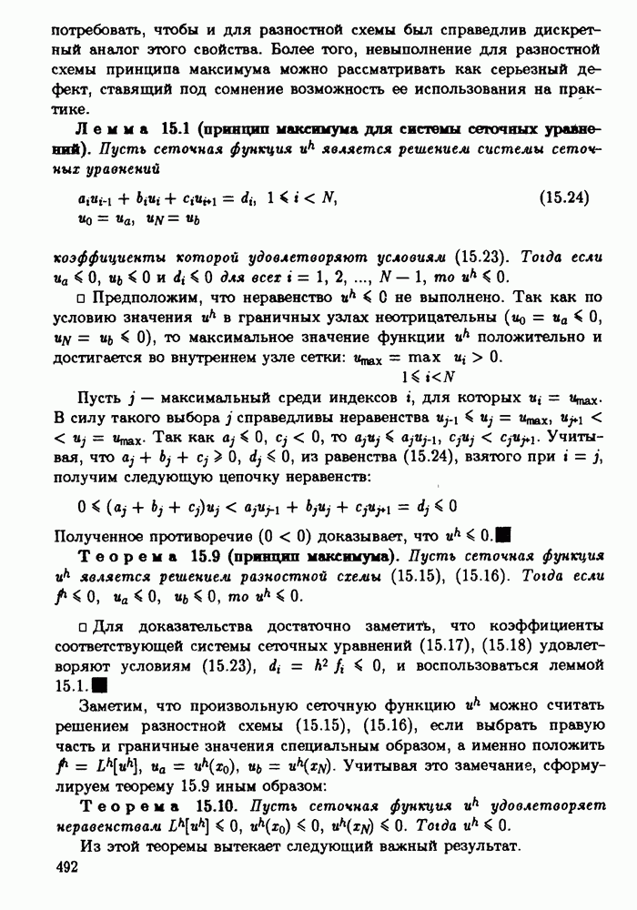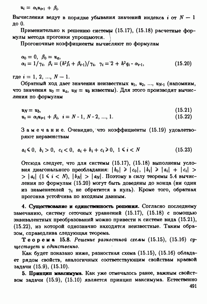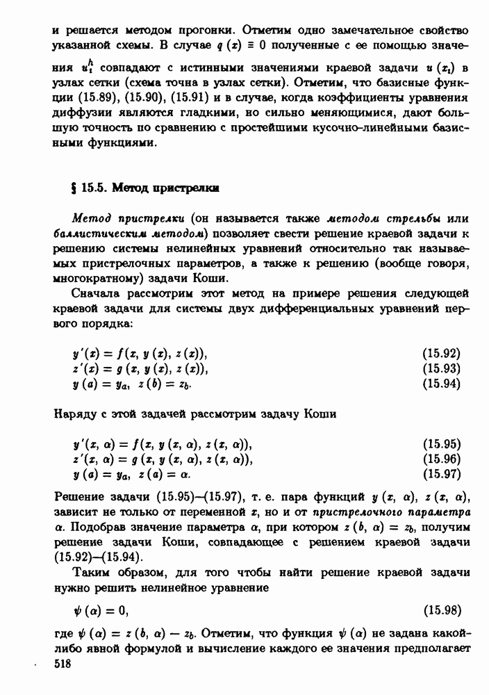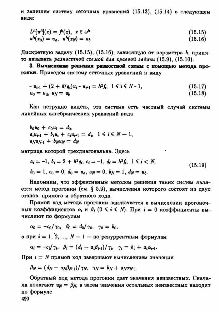 т. е. так же, как и в разностной схеме (15.55), (15.56). Эта проекционно-разностная схема имеет второй порядок точности и решается методом прогонки. Отметим одно замечательное свойство указанной схемы. В случае