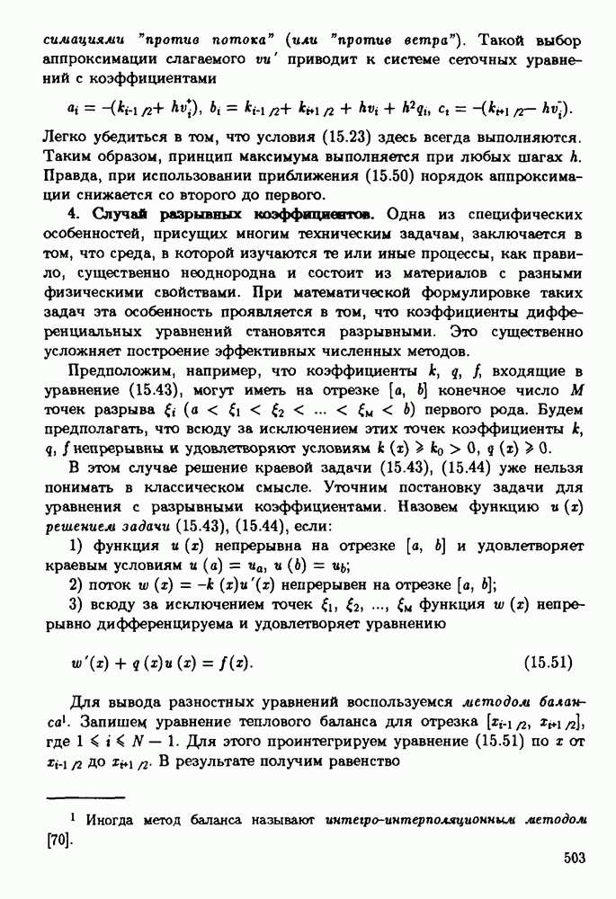 При этом второй порядок точности сохраняется. 7. Специальная проекционно-разностная схема.Предположим, что коэффициенты (15.79). Полученная таким образом проекционно-разностная схема сходится, однако по скорости сходимости она существенно уступает однородной разностной схеме (15-55), (15.56). Чтобы получить качественную проекционно-разностную схему для уравнения диффузии с разрывными коэффициентами, воспользуемся специальными базисными функциями Эти функции для