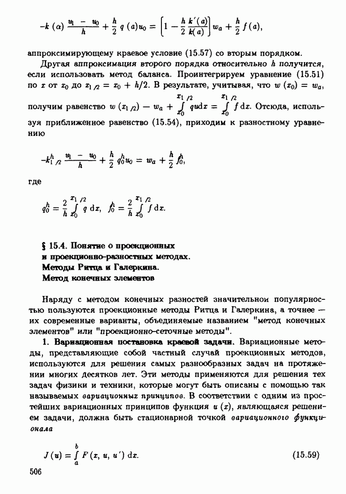 § 15.4. Понятие о проекционных и проекционно-разностных методах. Методы Ритца и Гадеркина. Метод конечных элементовНаряду с методом конечных разностей значительном популярностью пользуются проекционные методы Ритца и Галеркина, а точнее — их современные варианты, объединяемые названием "метод конечных элементов" или "проекционно-сеточные методы". 1. Вариационная постановка краевой задачи.Вариационные методы, представляющие собой частный случай проекционных методов, используются для решения самых разнообразных задач на протяжении многих Десятков лет. Эти методы применяются для решения тех задач физики и техники, которые могут быть описаны с помощью так называемых вариационных принципов. В соответствии с одним из простейших вариационных принципов функция и