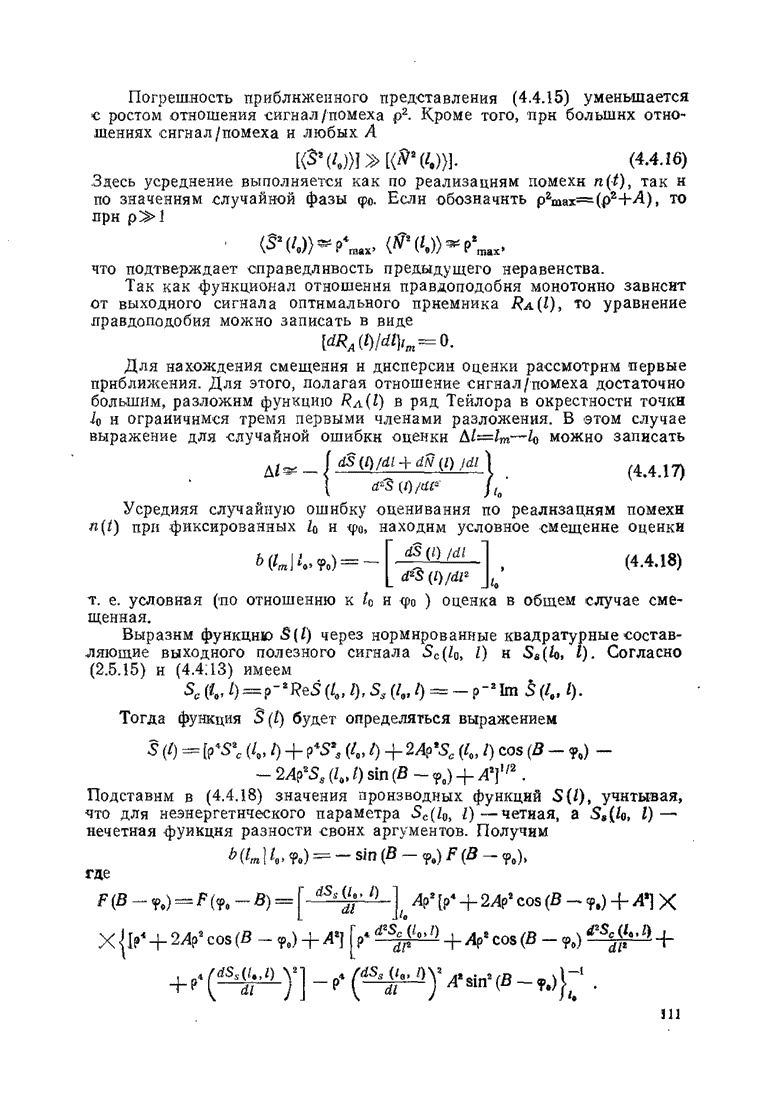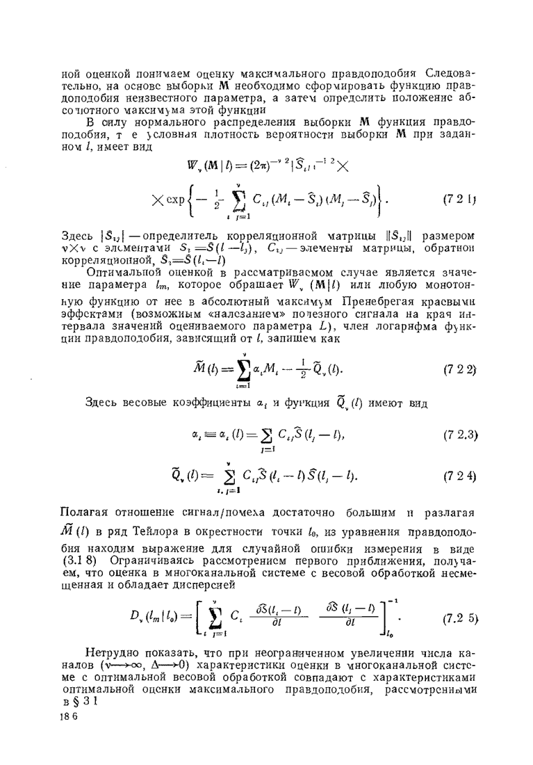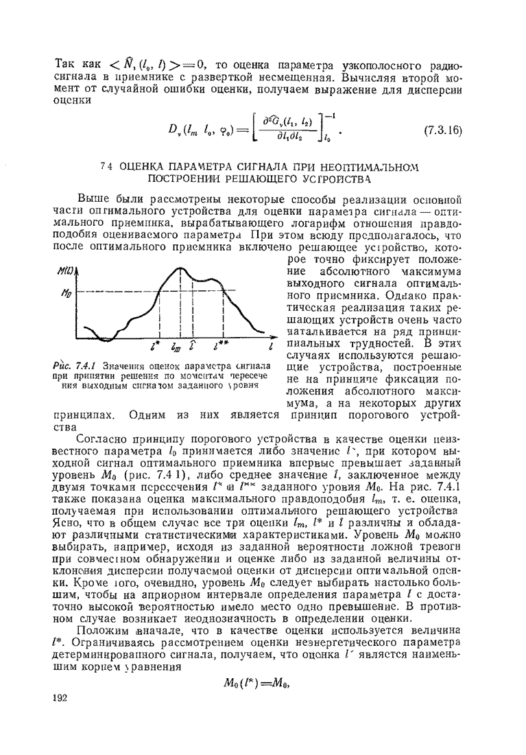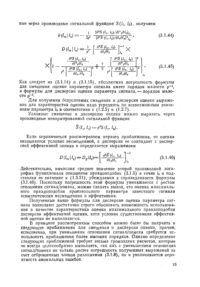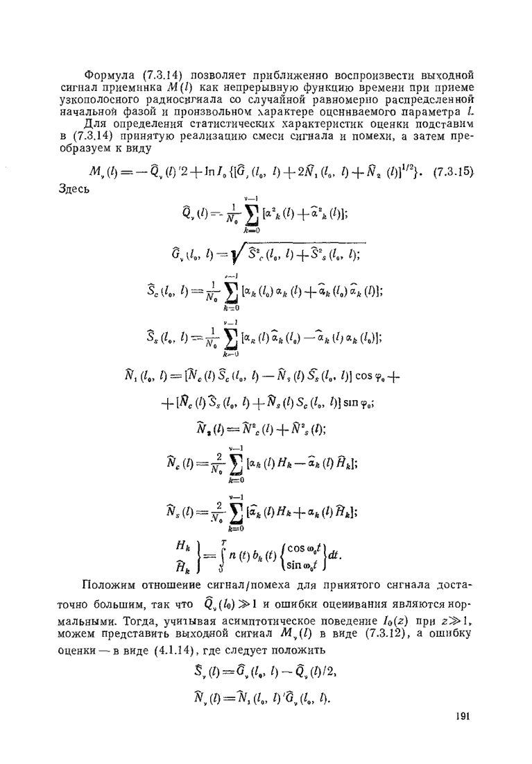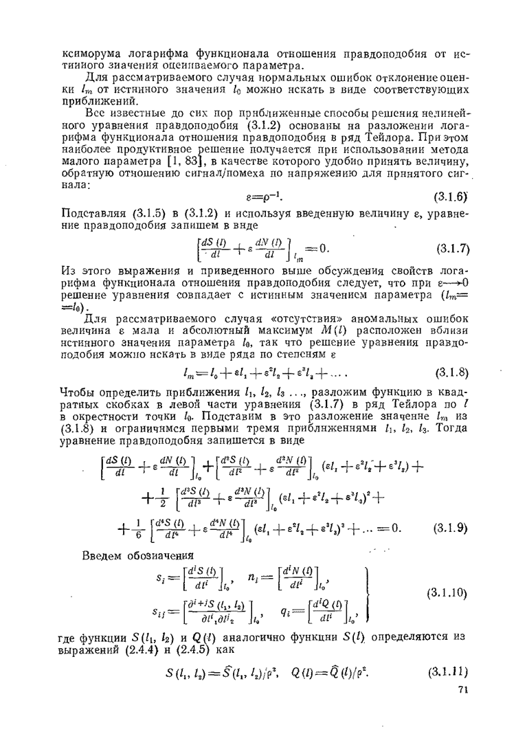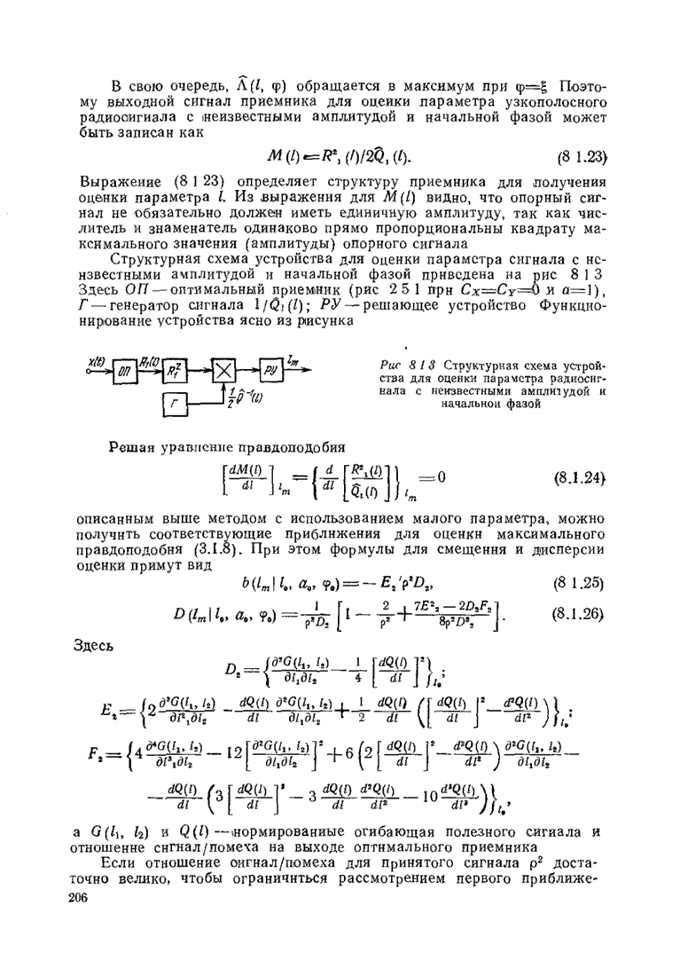 в том числе в окрестности оценки максимального правдоподобия, можно аппроксимировать полиномом с конечным числом членов. Это обстоятельство в свою очередь позволяет восстановить выходной сигнал как функцию параметра I на основе измерения значений выходного эффекта приемника и его производных в некоторой фиксированной точке