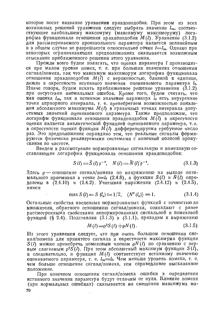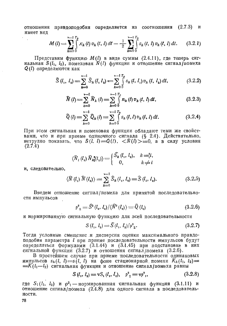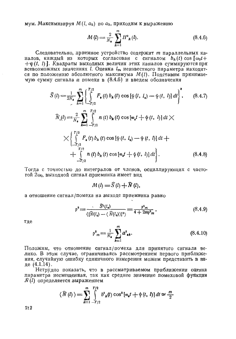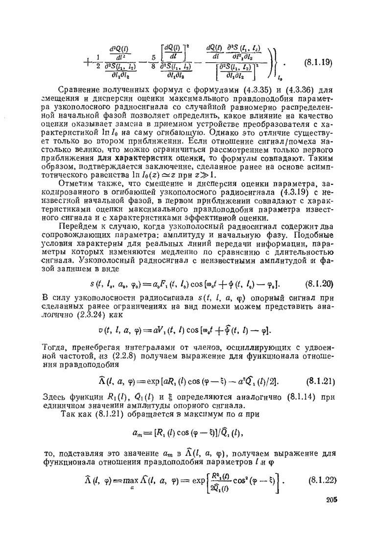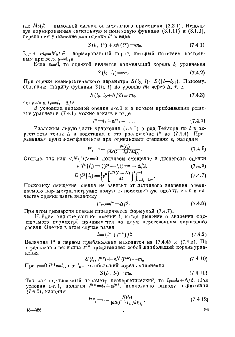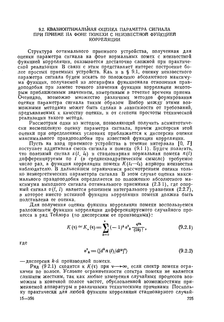 в том числе в окрестности оценки максимального правдоподобия, можно аппроксимировать полиномом с конечным числом членов. Это обстоятельство в свою очередь позволяет восстановить выходной сигнал как функцию параметра I на основе измерения значений выходного эффекта приемника и его производных в некоторой фиксированной точке
