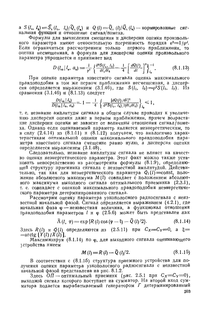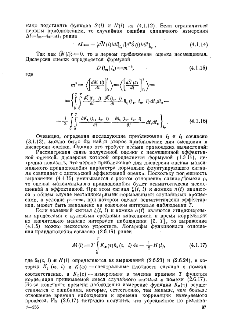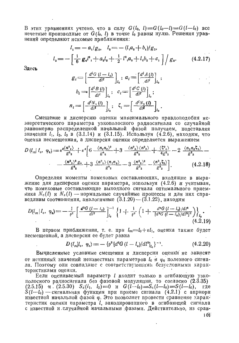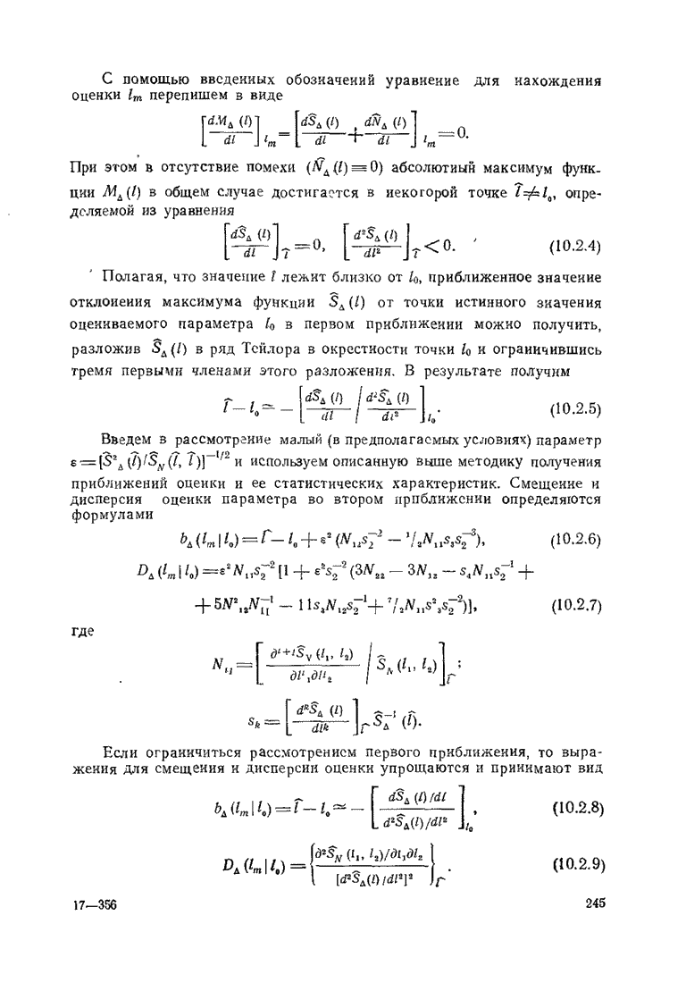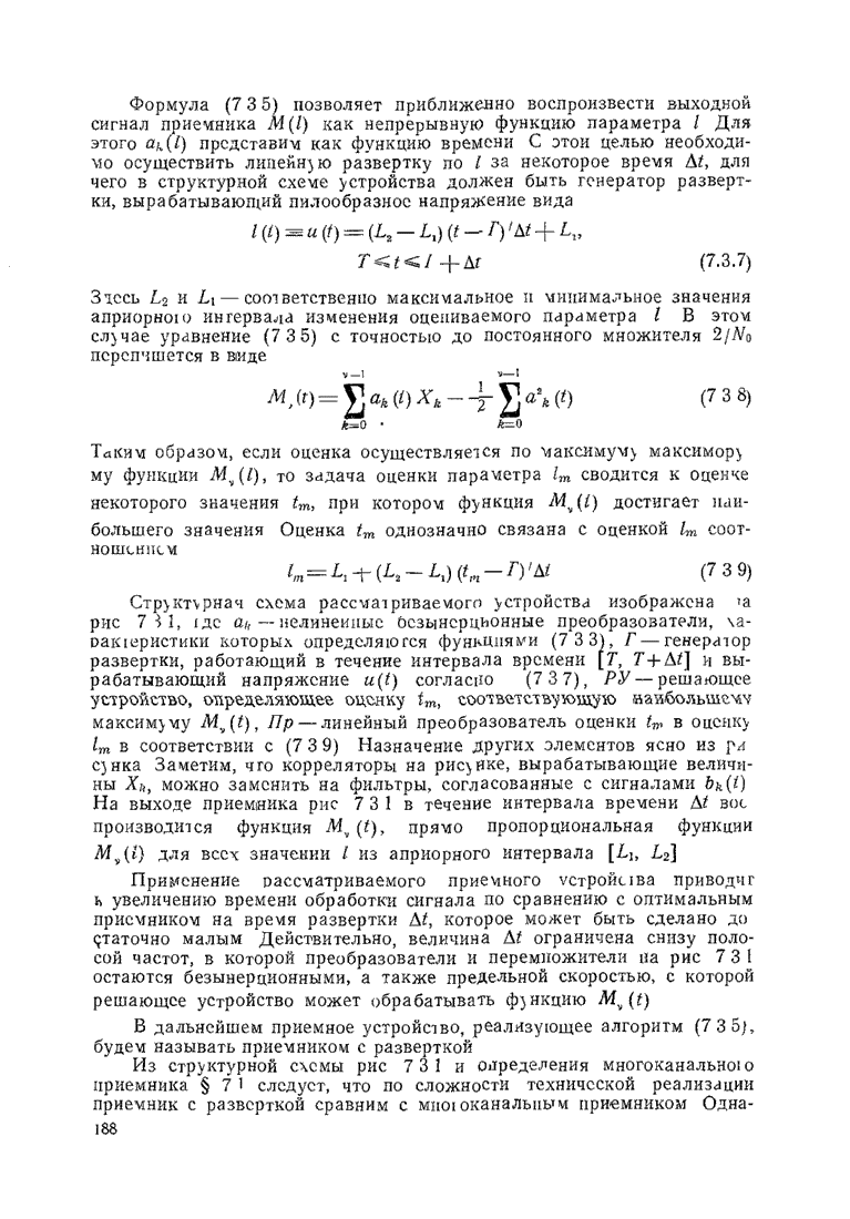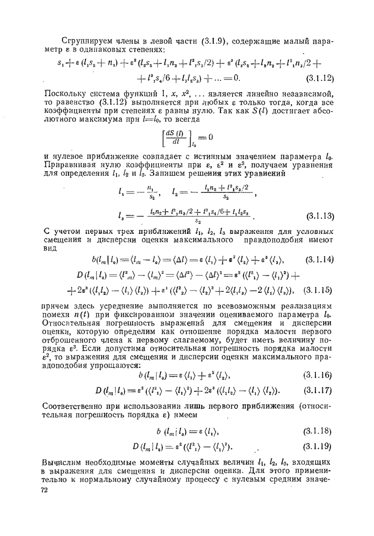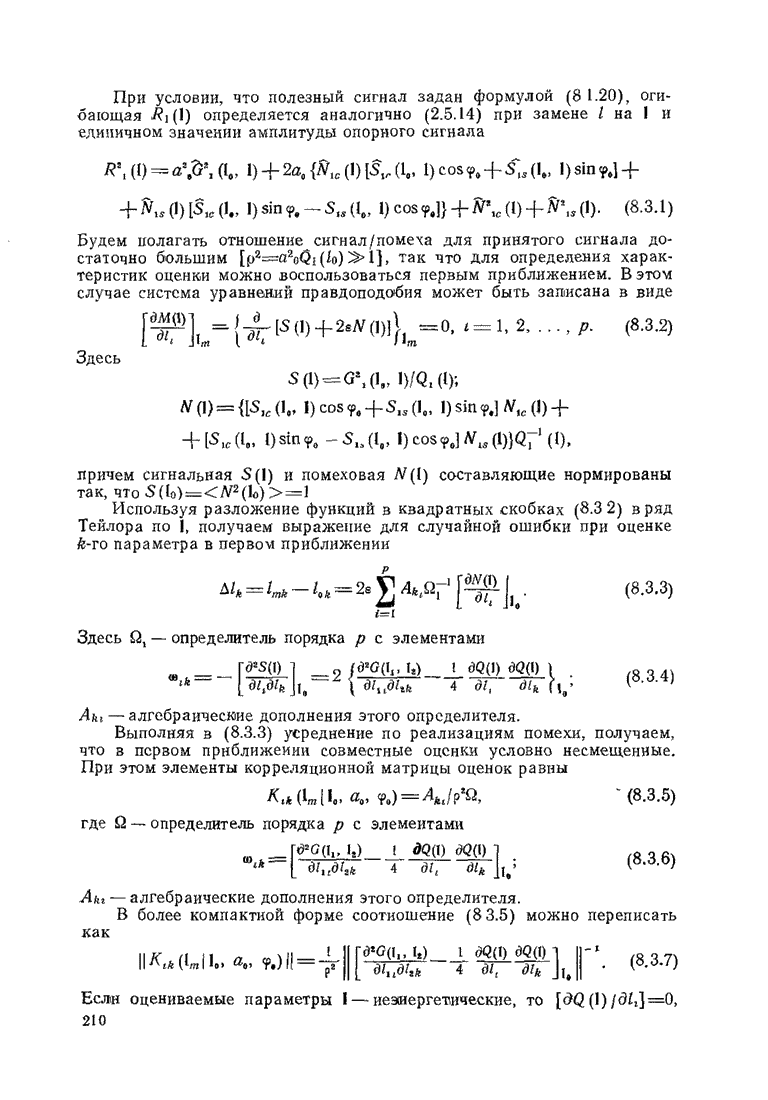 в том числе в окрестности оценки максимального правдоподобия, можно аппроксимировать полиномом с конечным числом членов. Это обстоятельство в свою очередь позволяет восстановить выходной сигнал как функцию параметра I на основе измерения значений выходного эффекта приемника и его производных в некоторой фиксированной точке