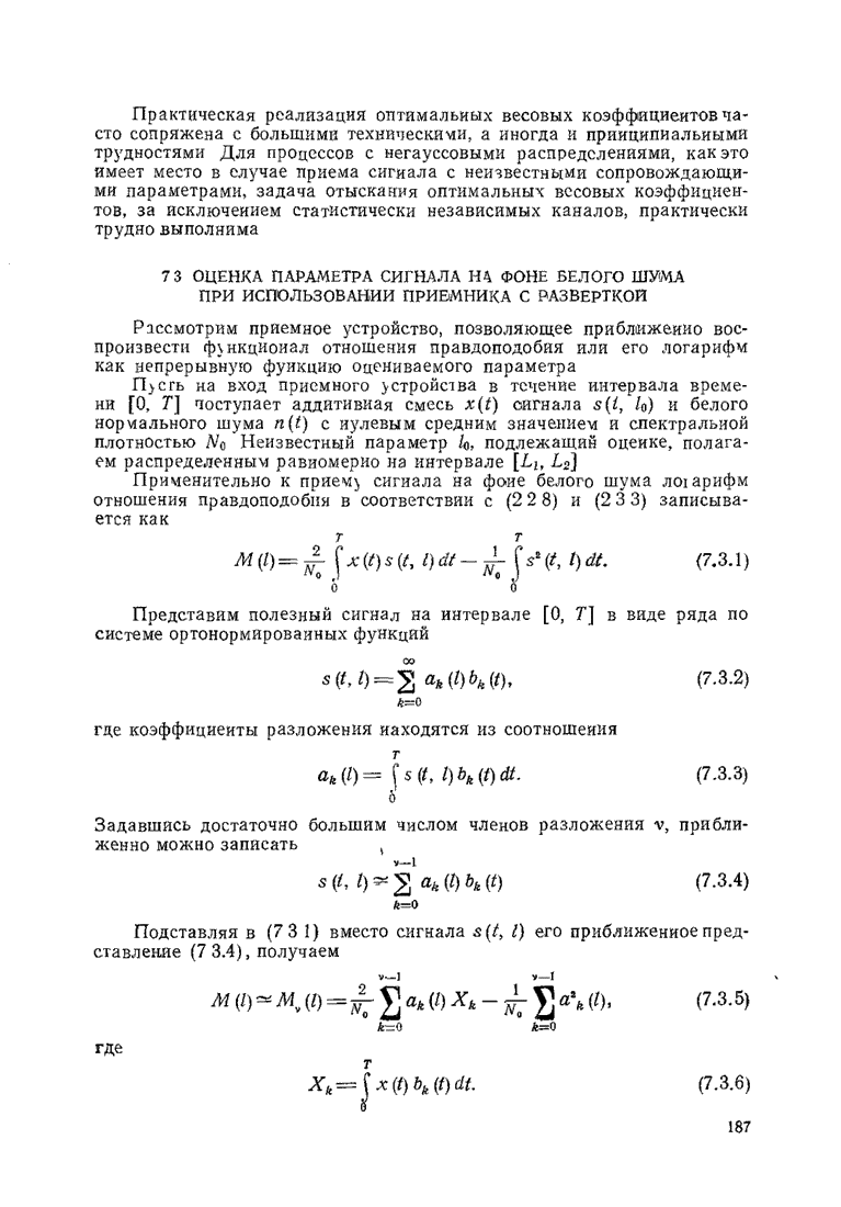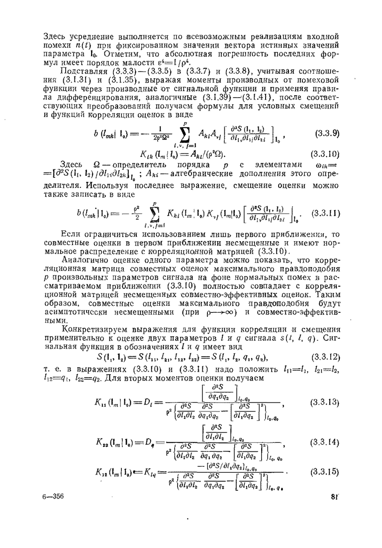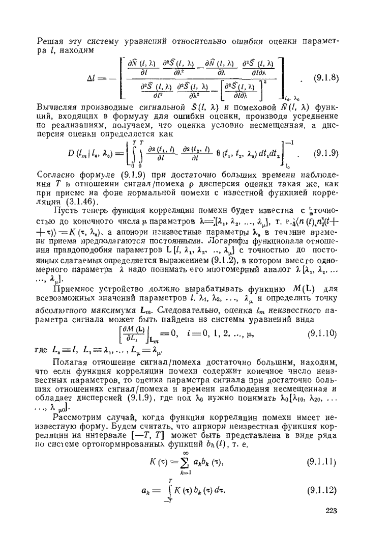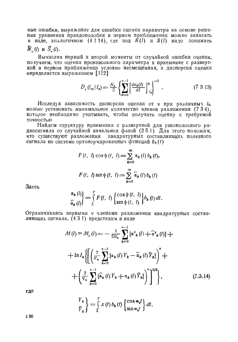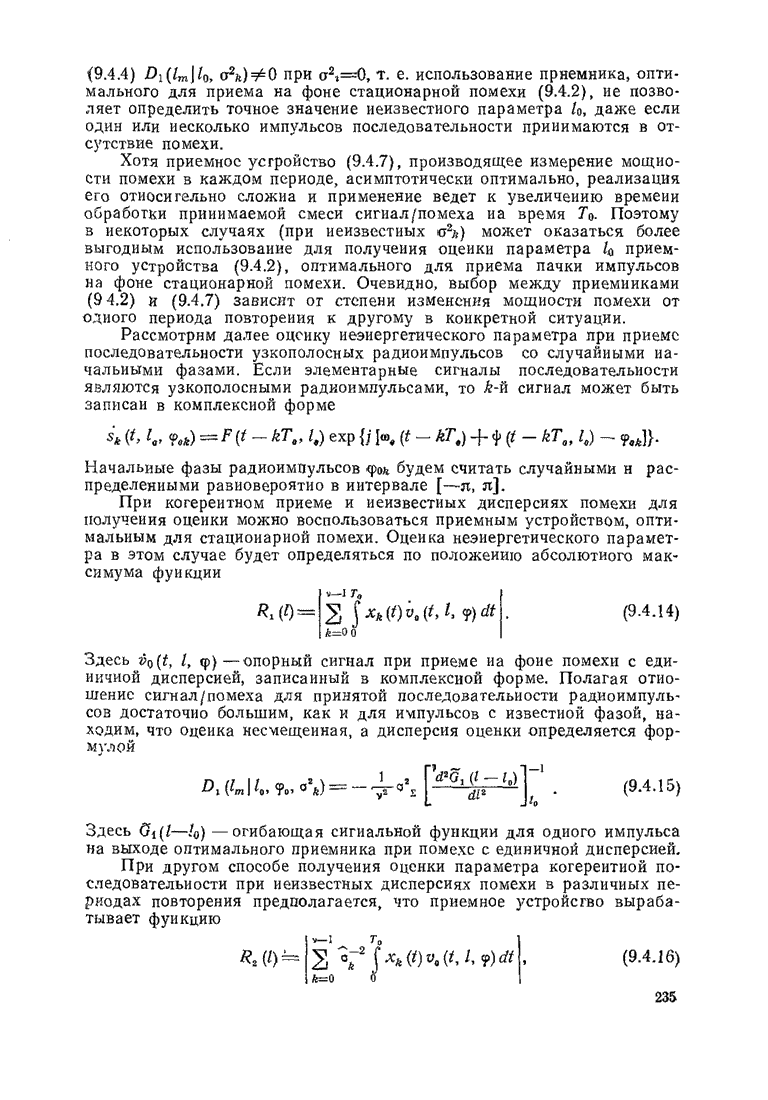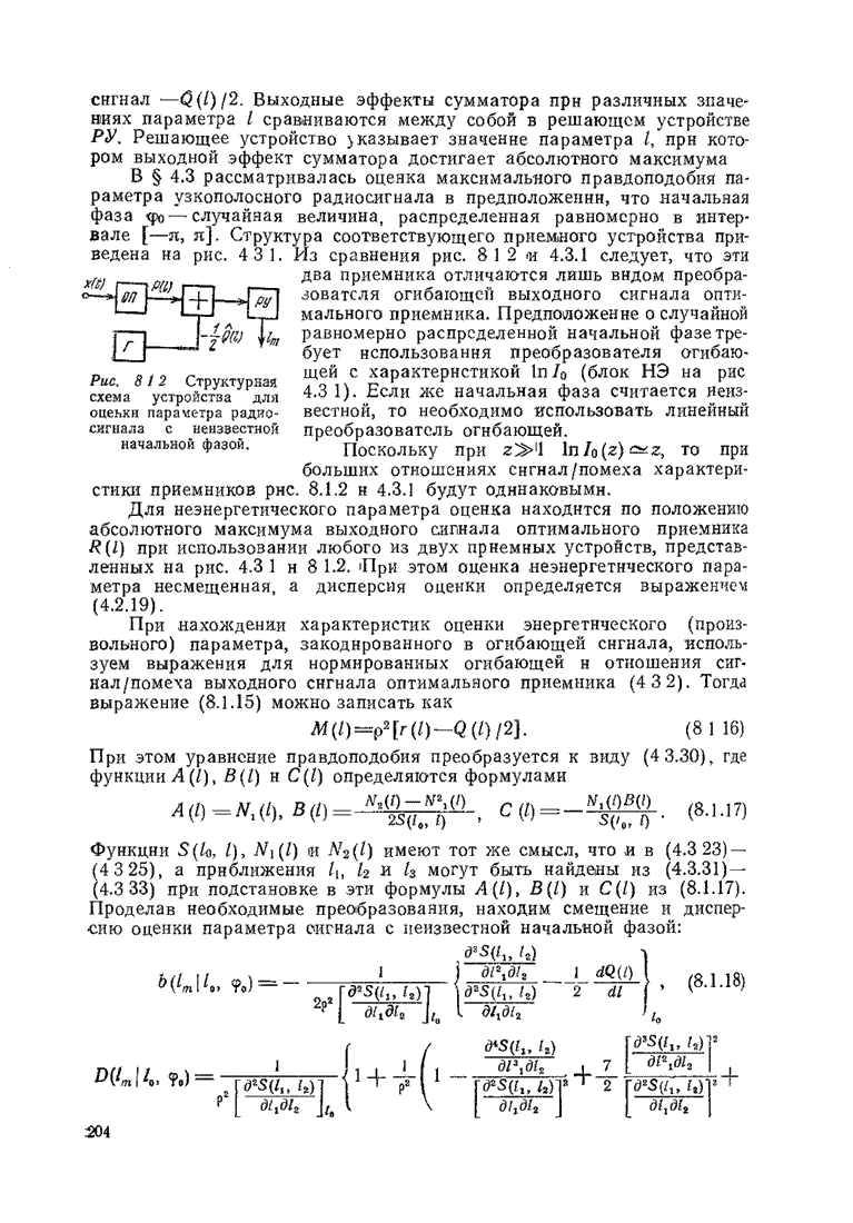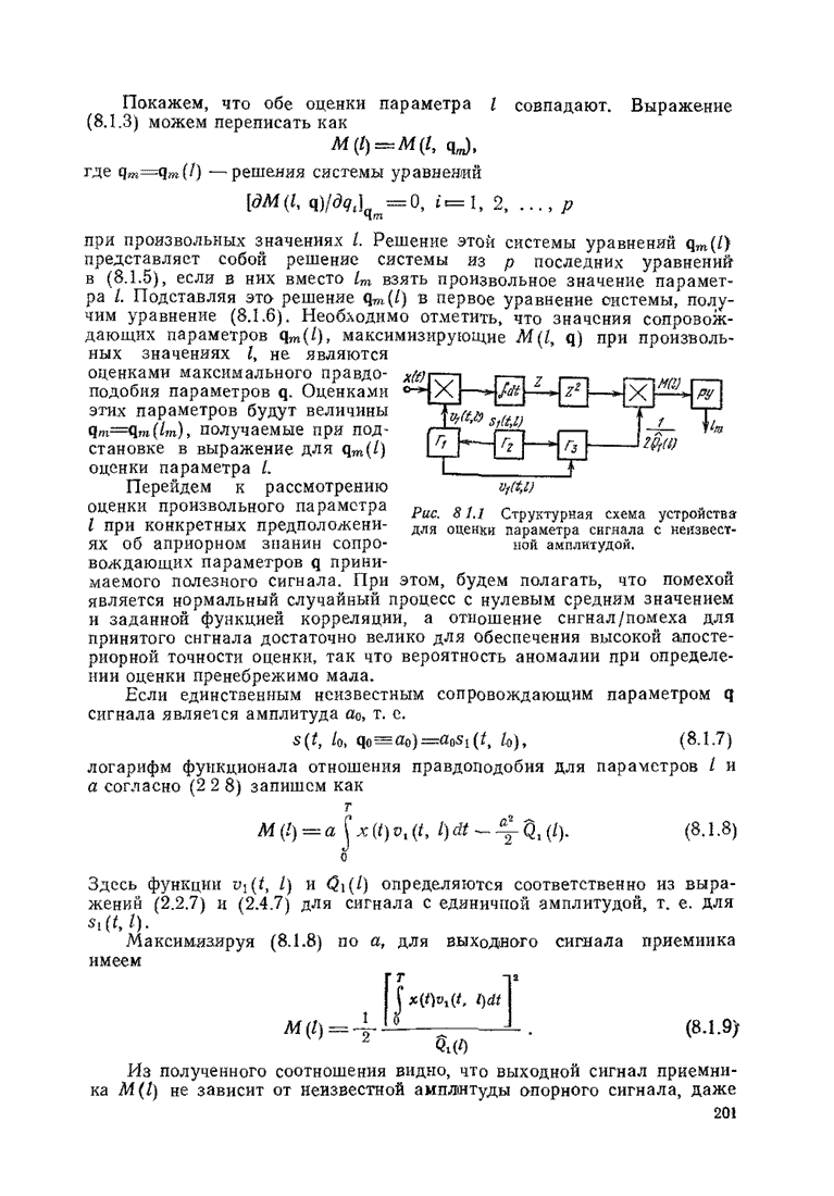 в том числе в окрестности оценки максимального правдоподобия, можно аппроксимировать полиномом с конечным числом членов. Это обстоятельство в свою очередь позволяет восстановить выходной сигнал как функцию параметра I на основе измерения значений выходного эффекта приемника и его производных в некоторой фиксированной точке