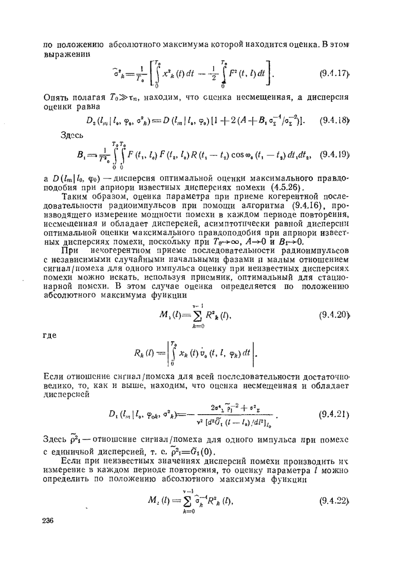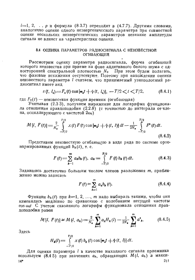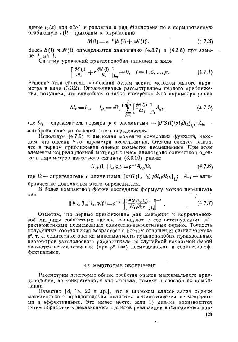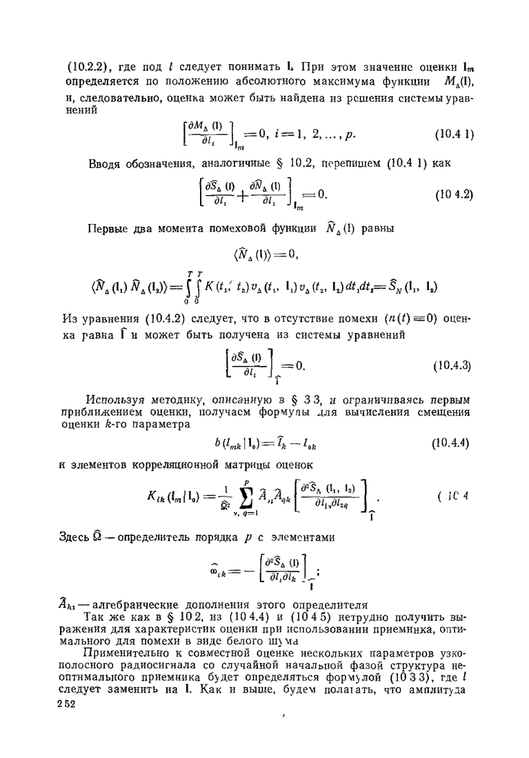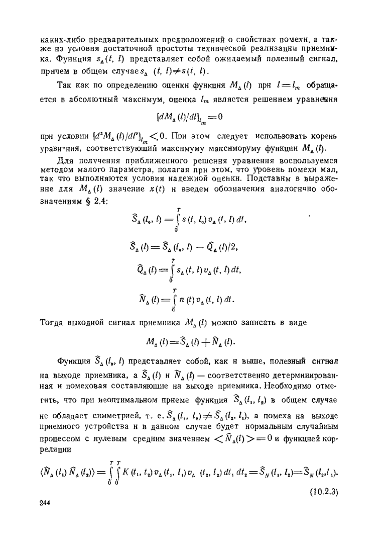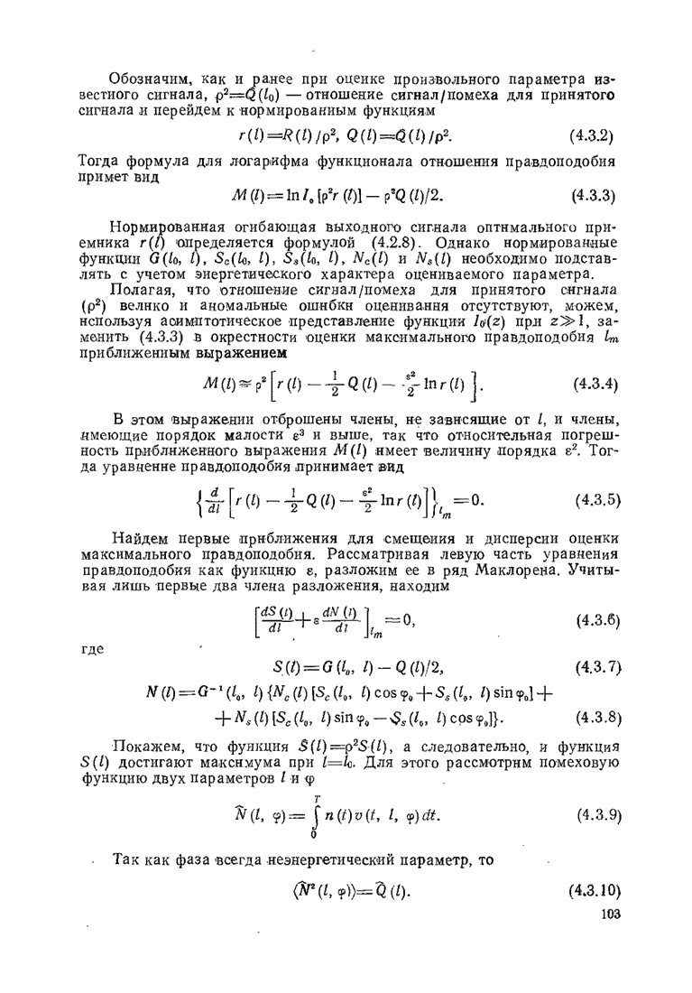 в том числе в окрестности оценки максимального правдоподобия, можно аппроксимировать полиномом с конечным числом членов. Это обстоятельство в свою очередь позволяет восстановить выходной сигнал как функцию параметра I на основе измерения значений выходного эффекта приемника и его производных в некоторой фиксированной точке