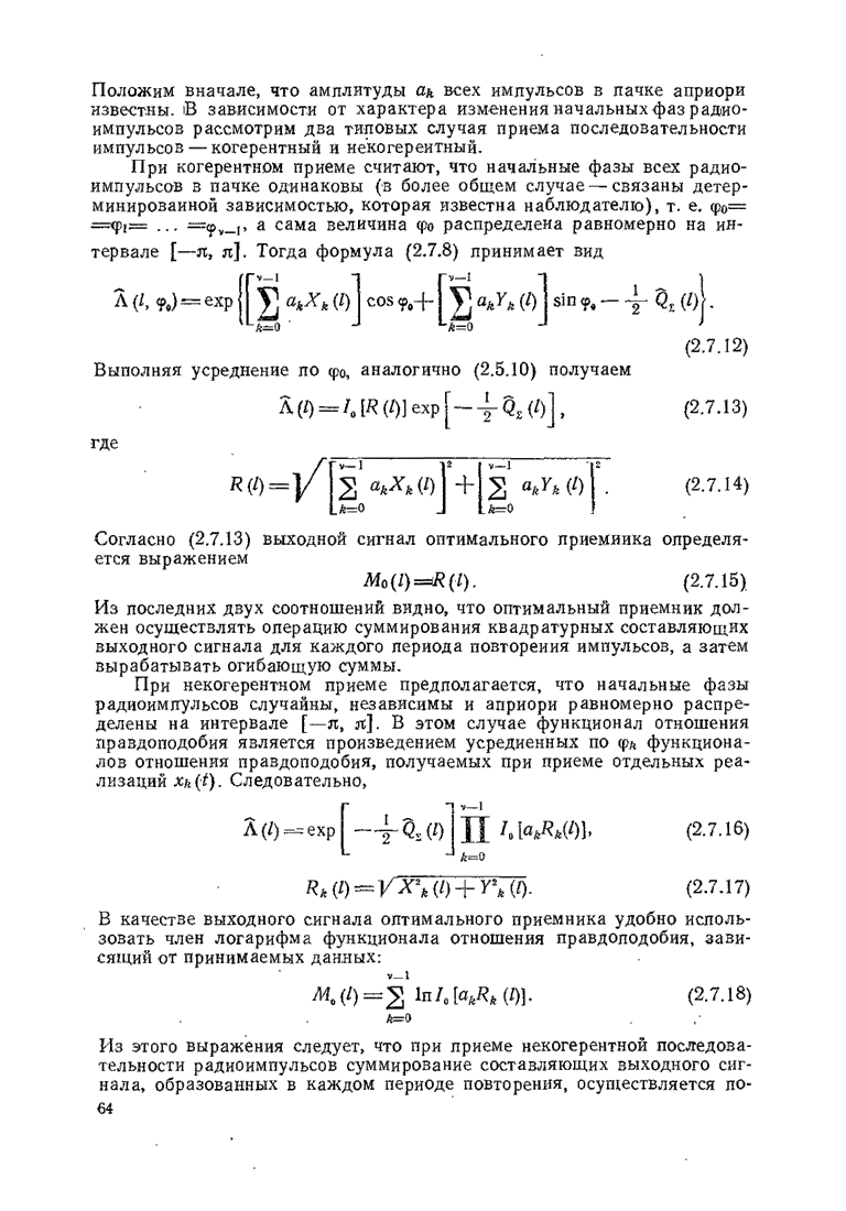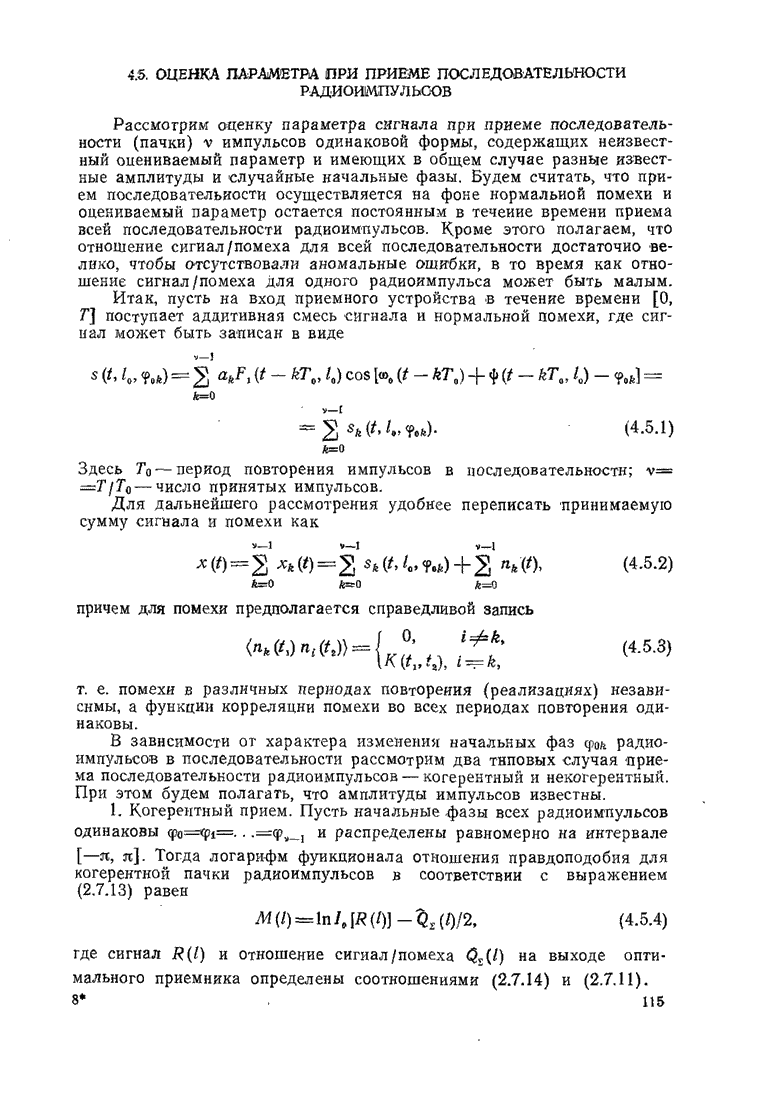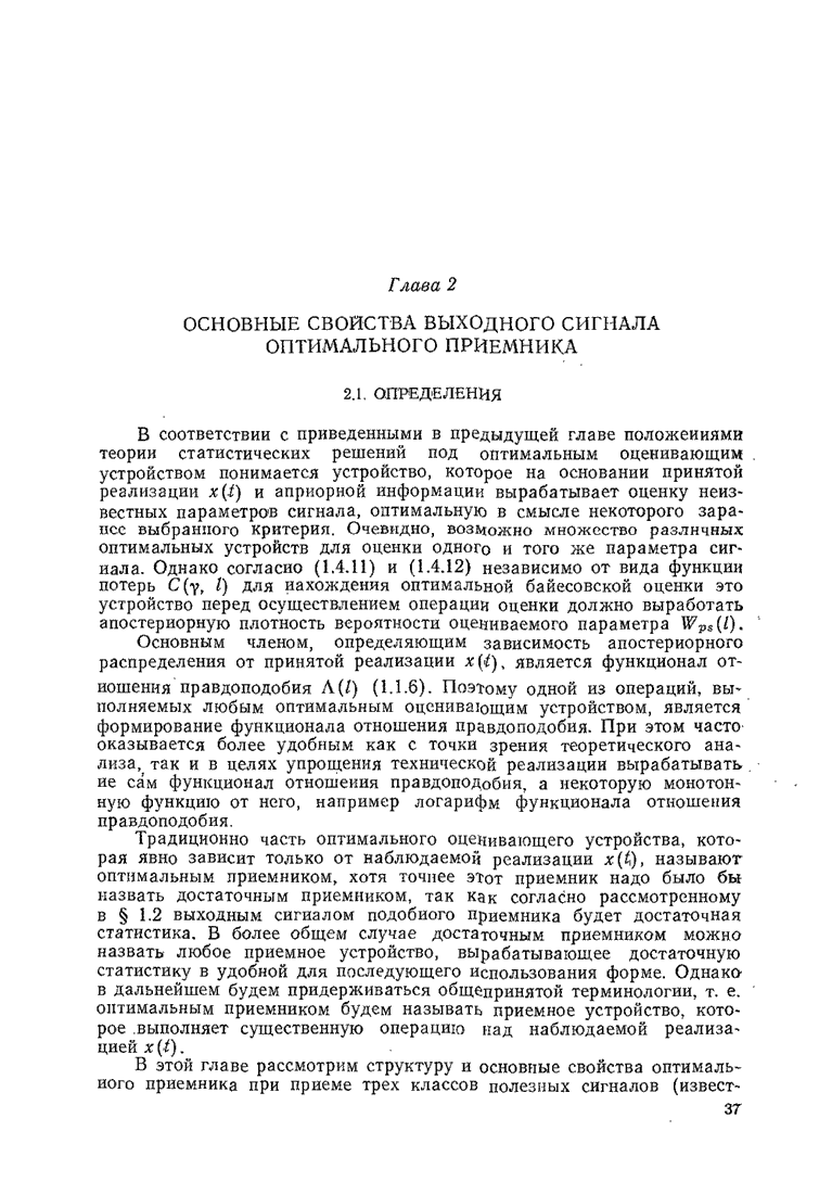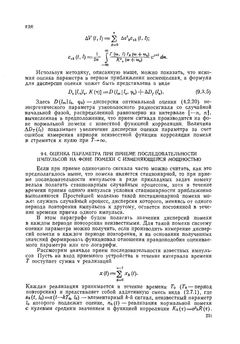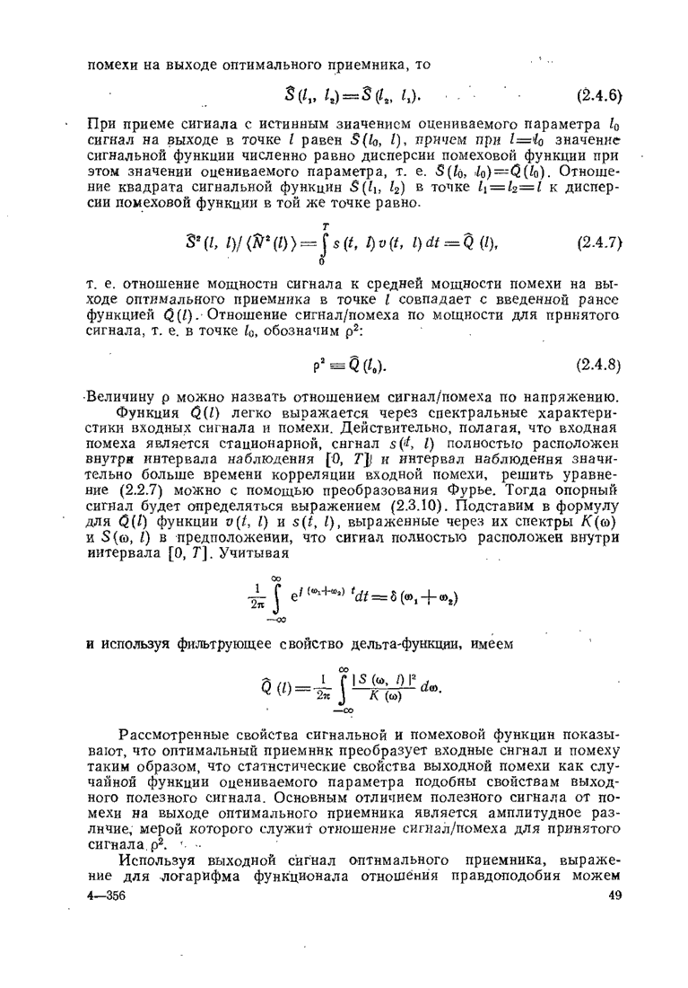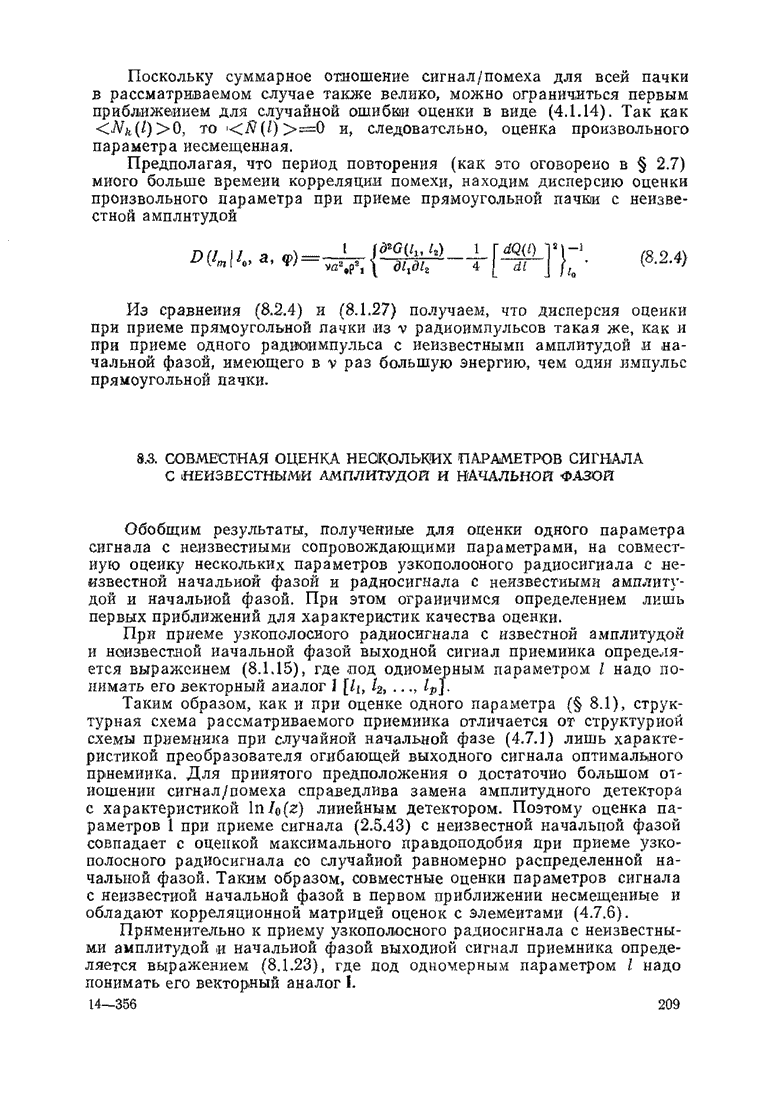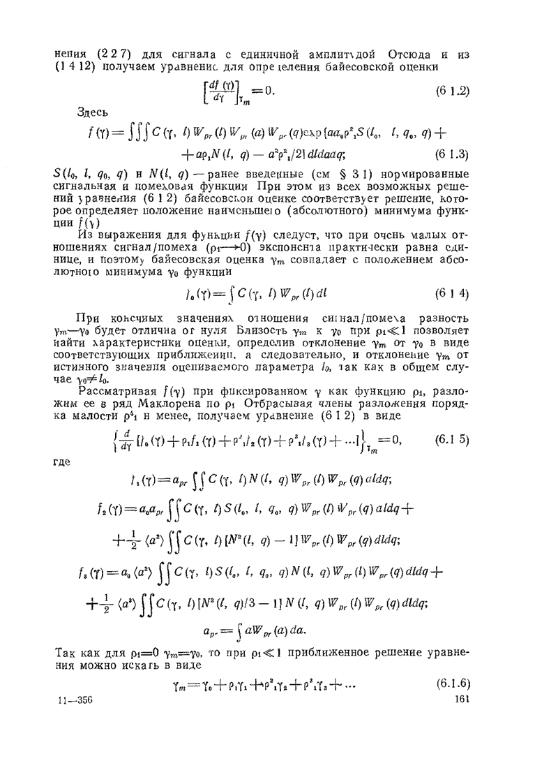 в том числе в окрестности оценки максимального правдоподобия, можно аппроксимировать полиномом с конечным числом членов. Это обстоятельство в свою очередь позволяет восстановить выходной сигнал как функцию параметра I на основе измерения значений выходного эффекта приемника и его производных в некоторой фиксированной точке