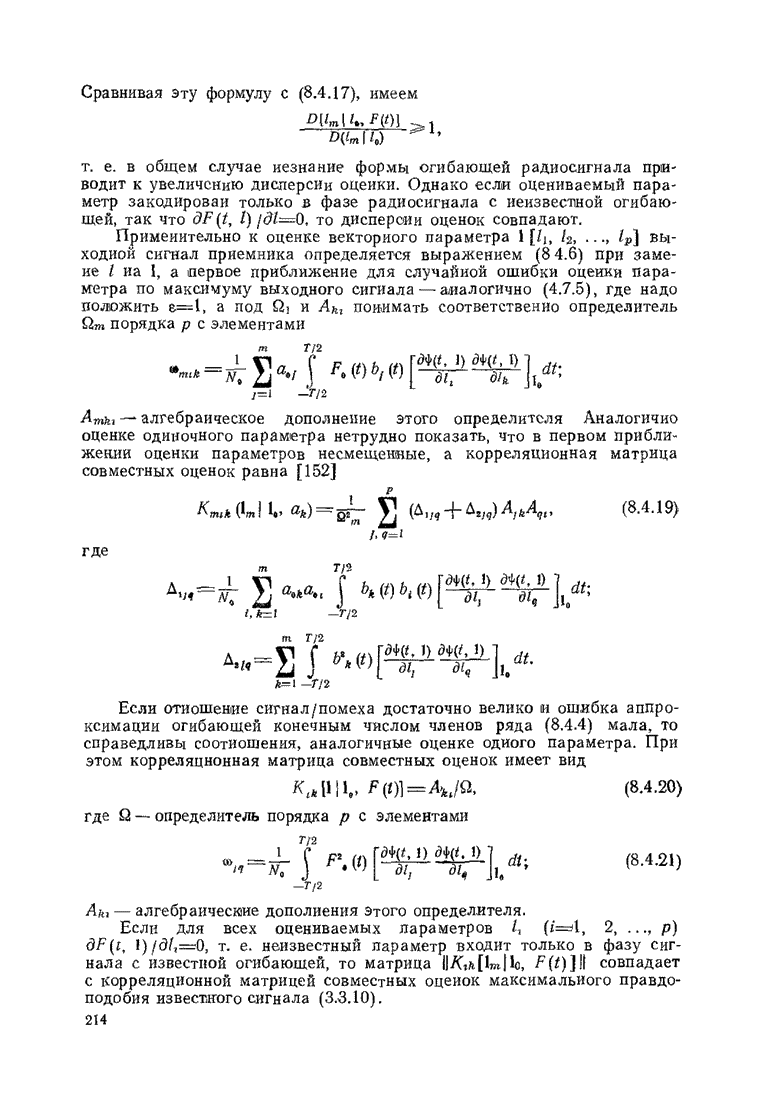 опорного сигнала. Следует отметить, что оценка с помощью дискриминатора возможна лишь тогда, когда область около истинного значения оцениваемого параметра выбрана и следует с высокой точностью указать значение параметра внутри этой области. Иначе можно сказать, что дискриминаторы применимы лишь, в пределах области нормальных ошибок.