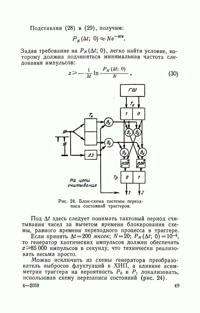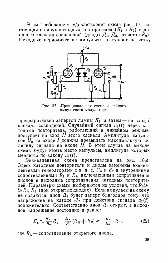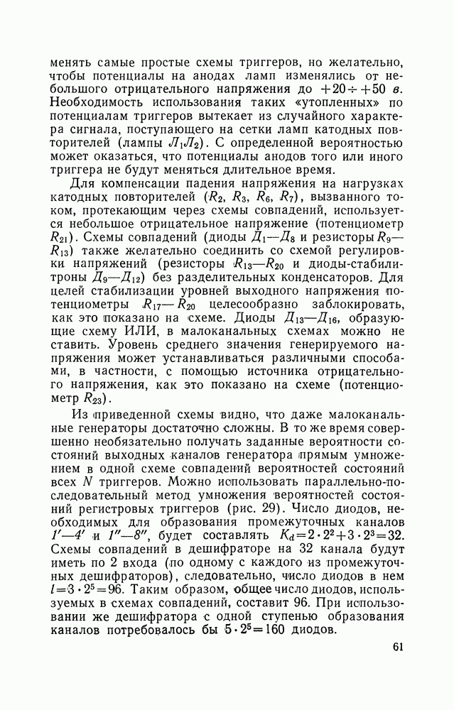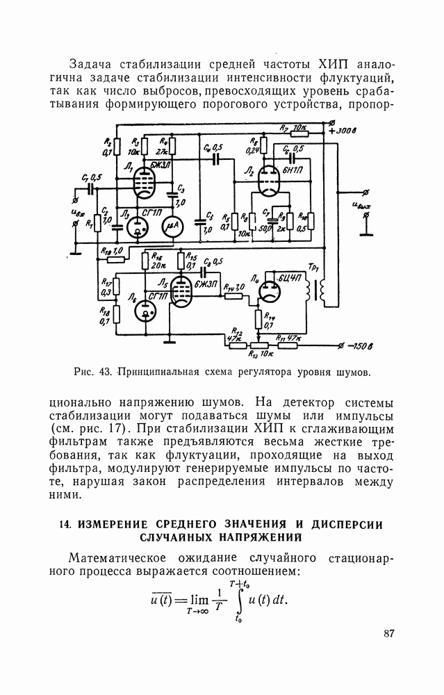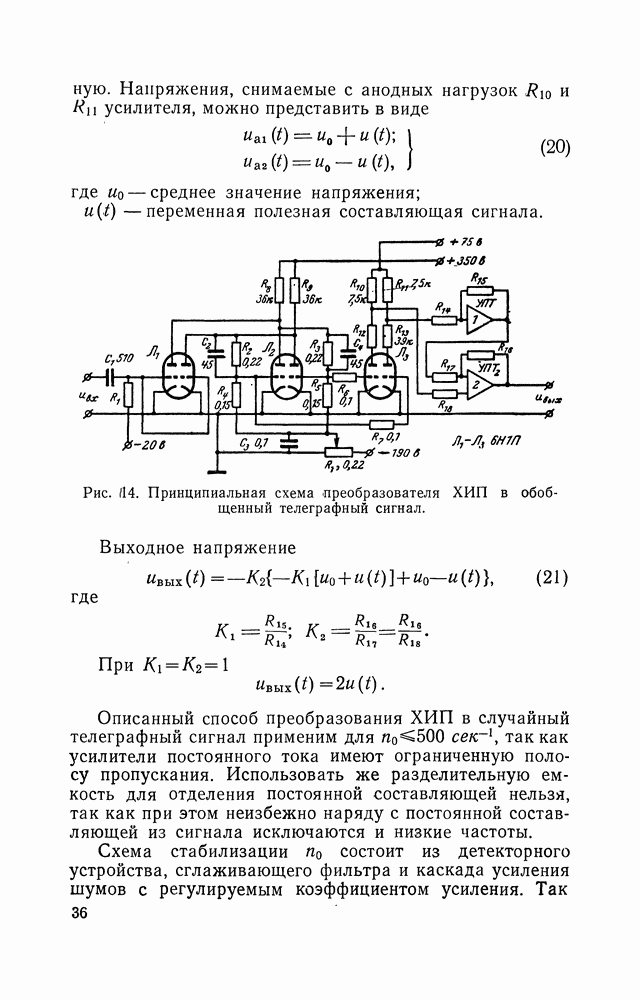 Рис. 49. Принципиальная схема триггера Шмитта. В момент, когда напряжение на сетке лампы Это состояние длится до тех пор, пока напряжение Образующаяся «а выходе вычитающего устройства функцией времени, поэтому усредняющее устройствб должно иметь постоянную времени